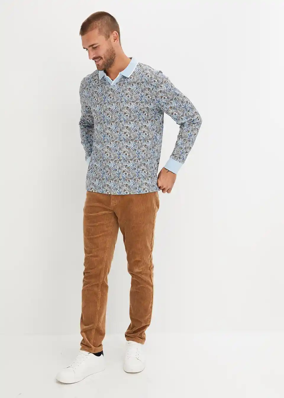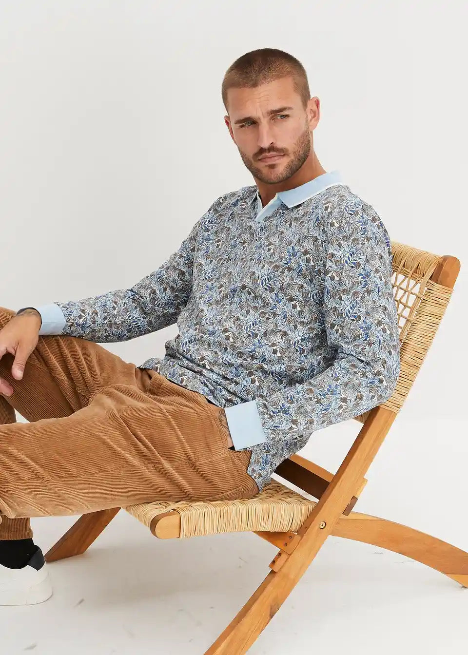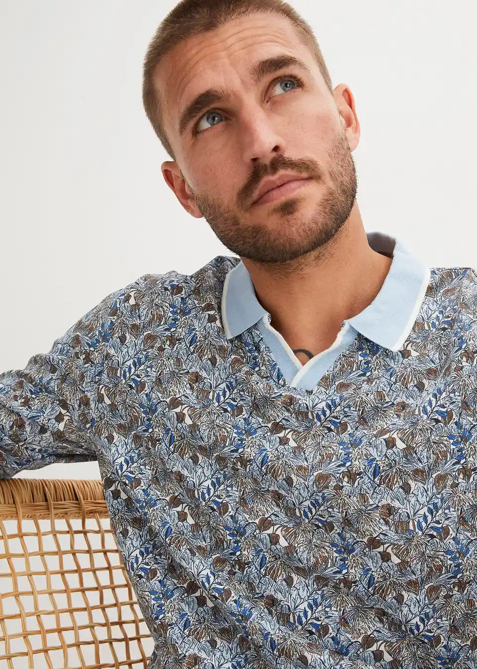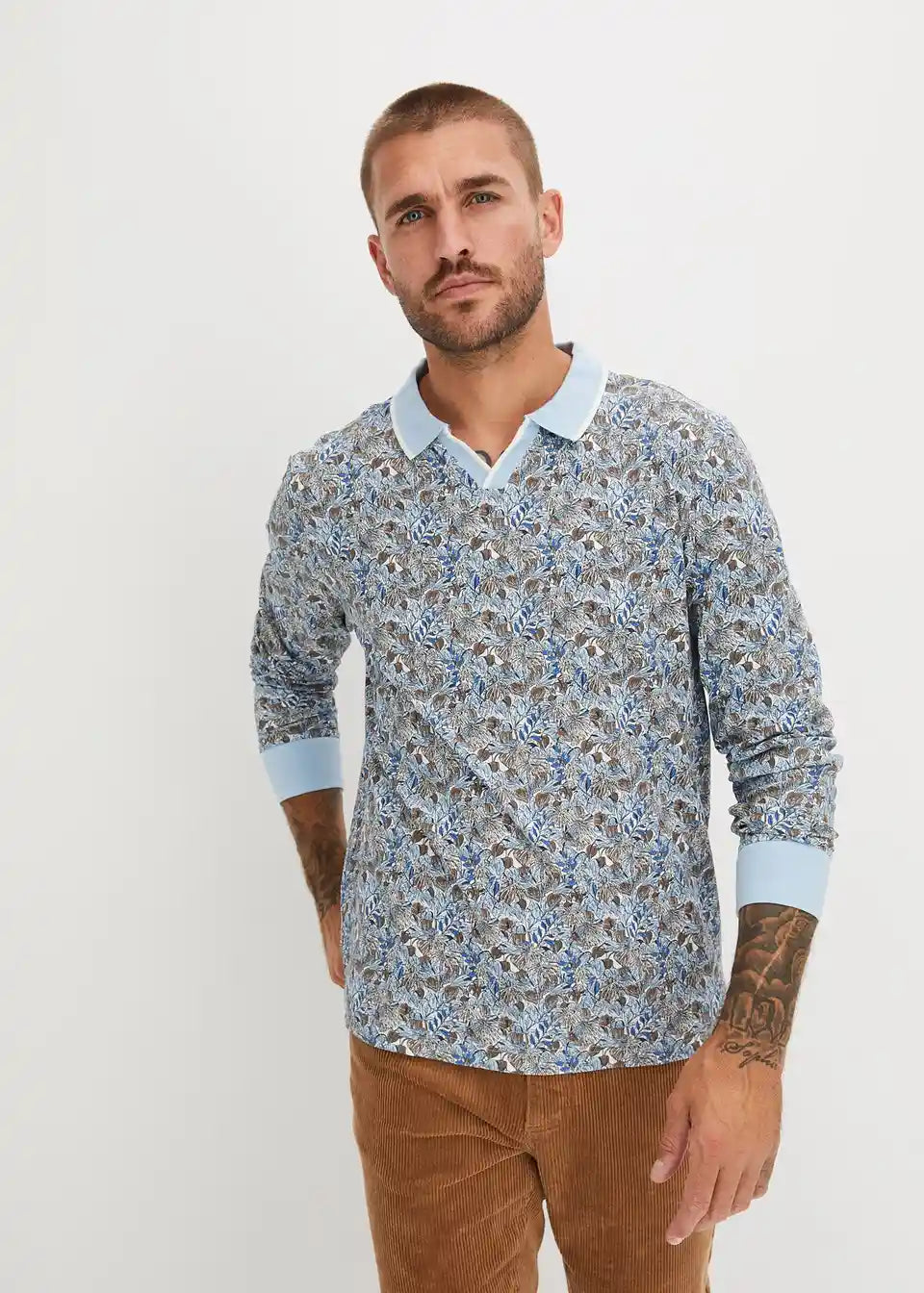 Moderno tiskana polo majica s dugim rukavima u piké uzorku