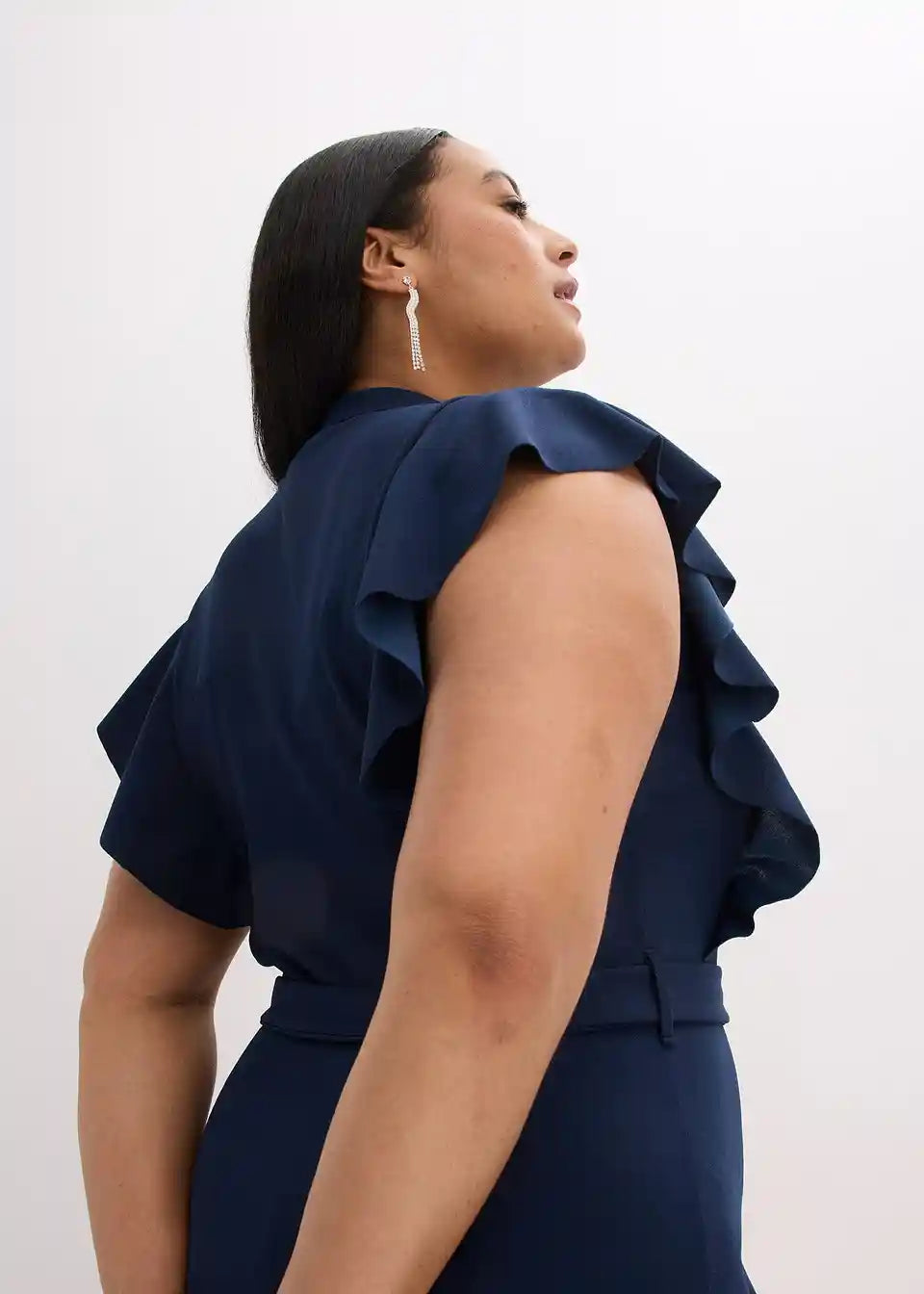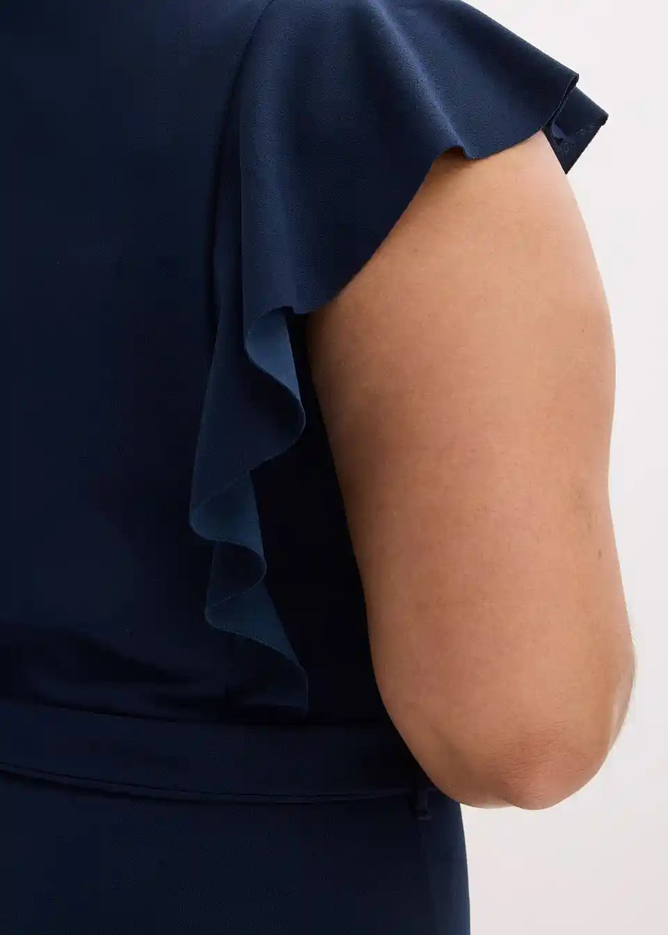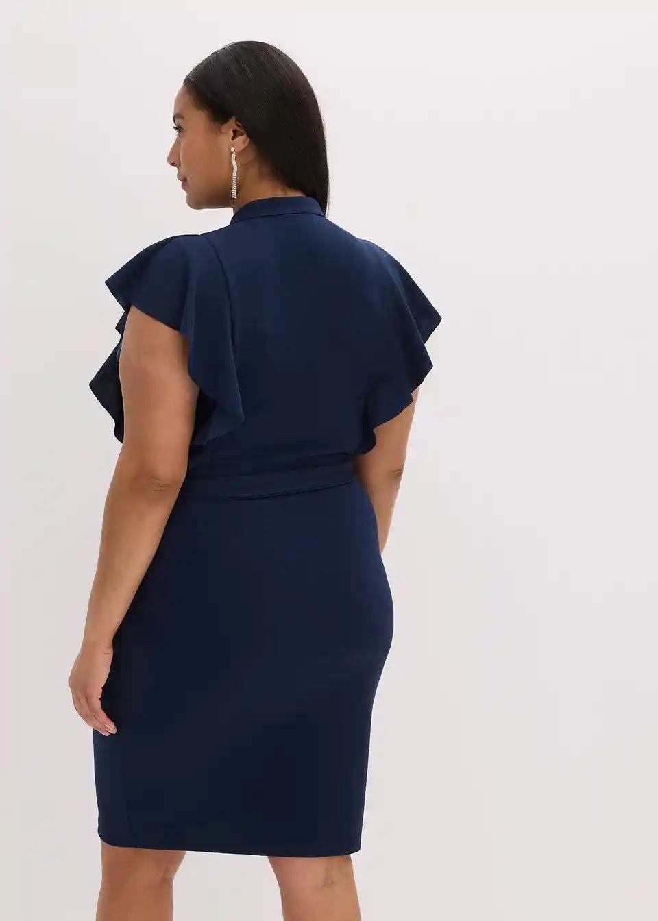Moderno i ženstveno: Etuikleid s volan rukavima i uspravnim ovratnikom te ukrasnom kopčom na izrezu