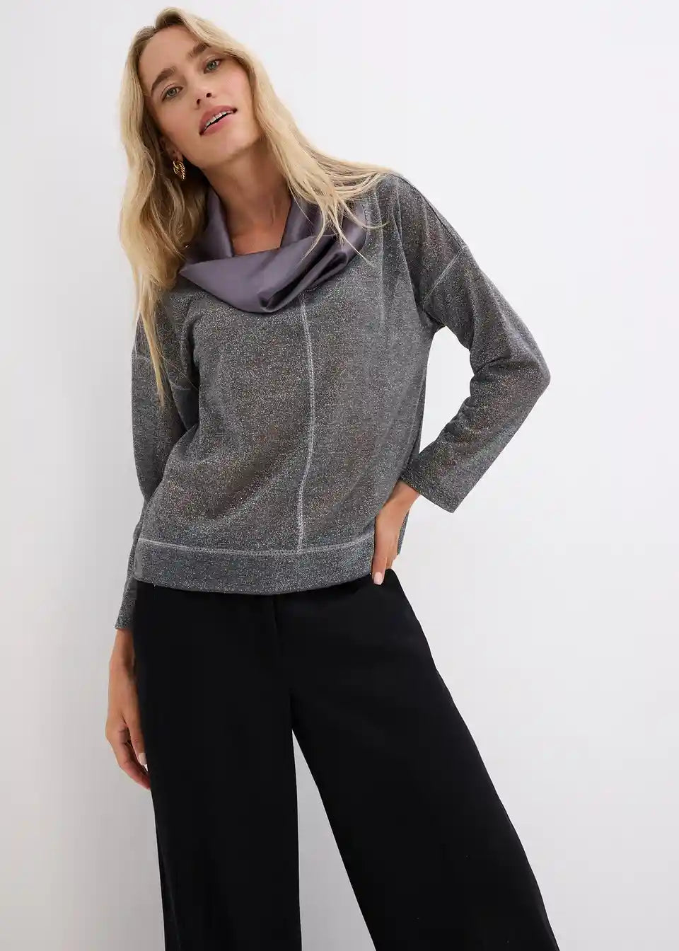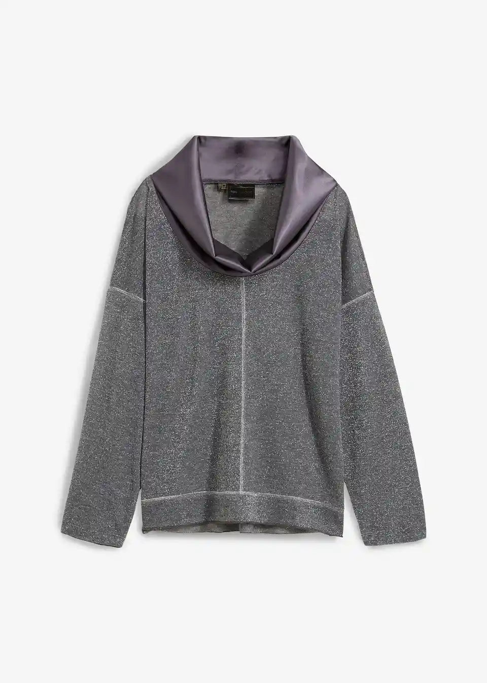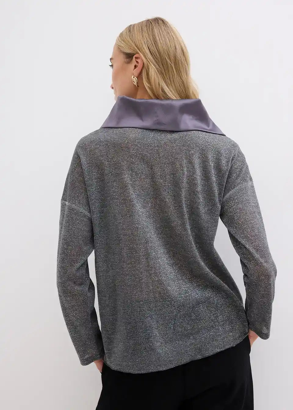 Udobno i Elegantno: Majica s dugim rukavima s nitima sjaja i elegantnim sjajnim ovratnikom od satena