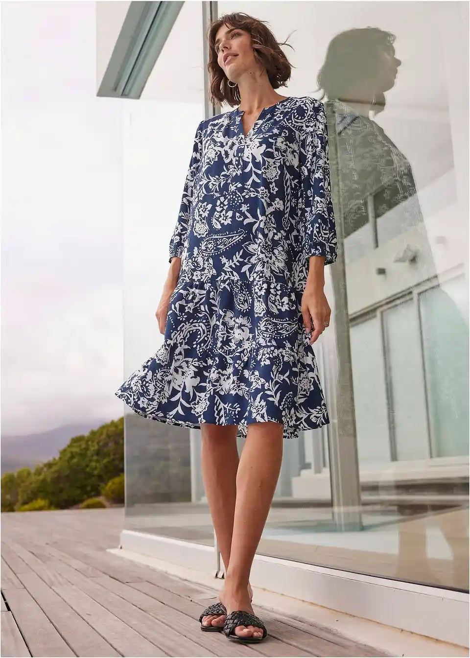 Proljetna haljina s printom i volanom