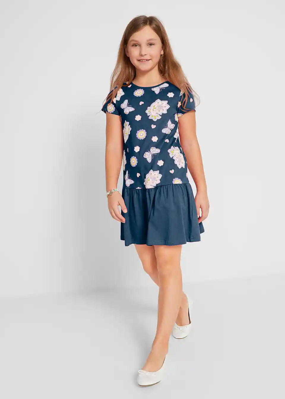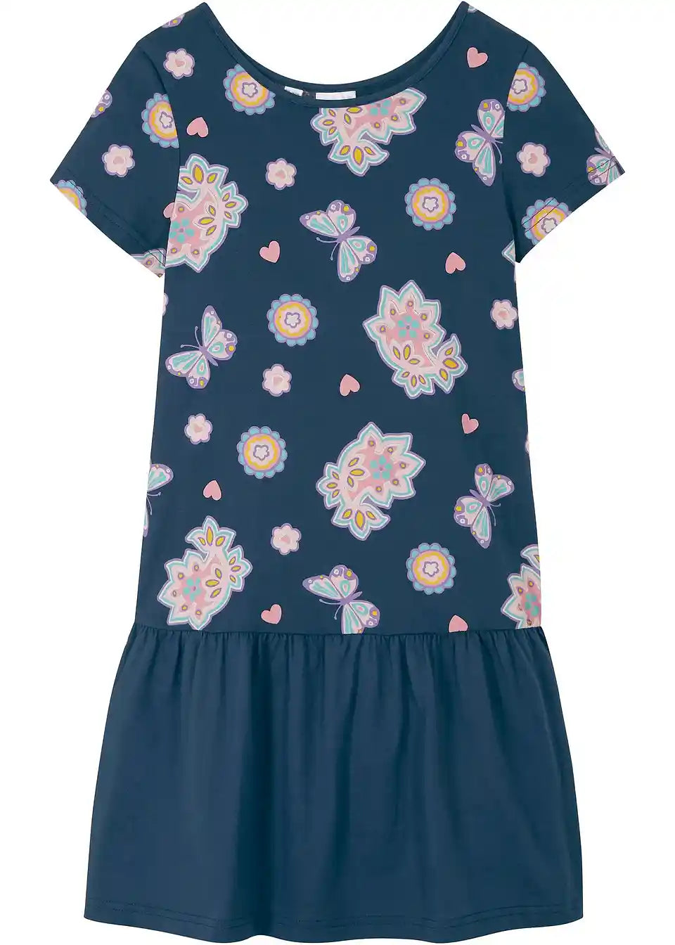 Ova prekrasna haljina s kratkim rukavima posebno oduševljava svojim cvjetnim printom i suknjom u kontrastnoj boji. Mekana organska pamuka osigurava ugodan osjećaj nošenja.
