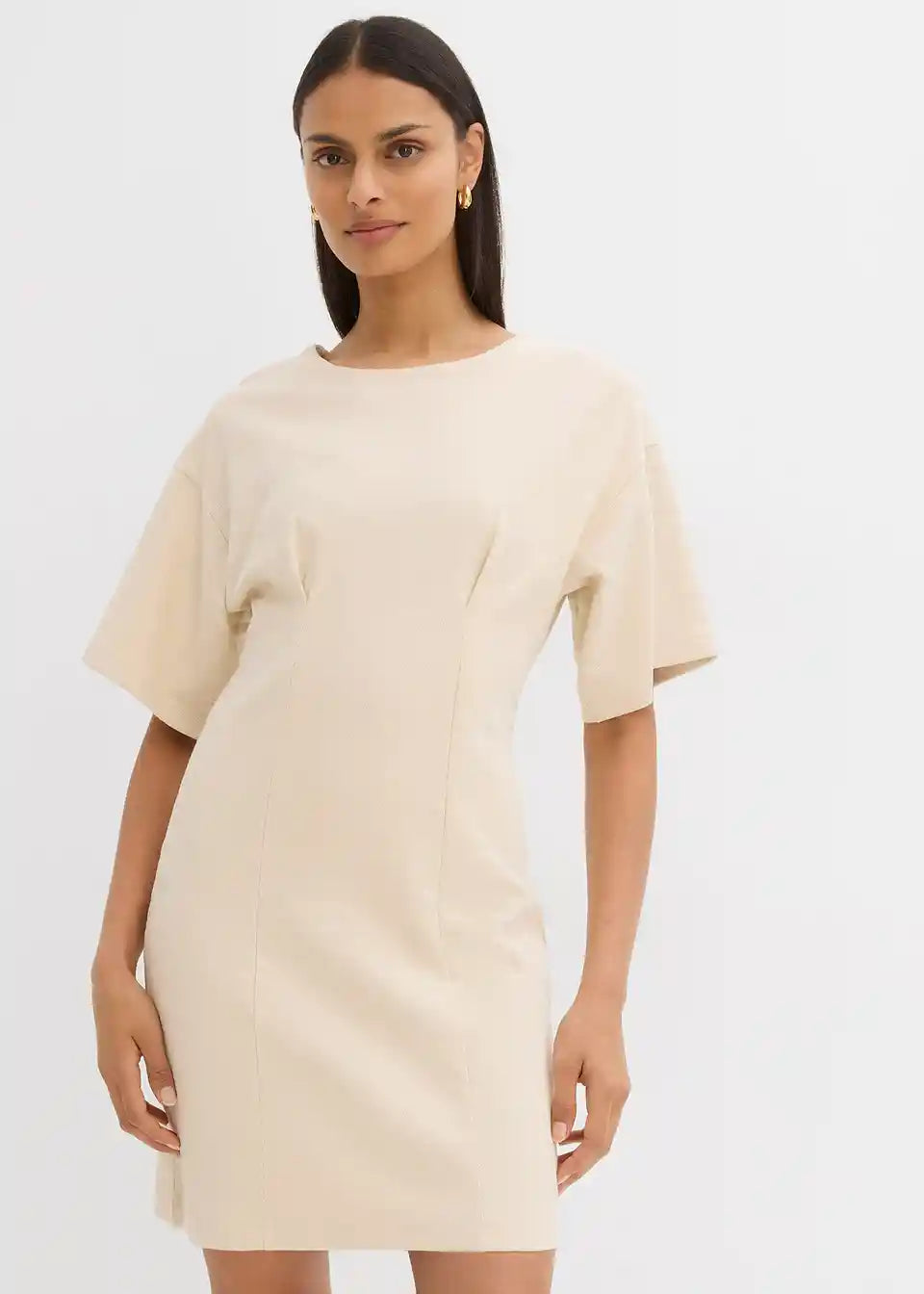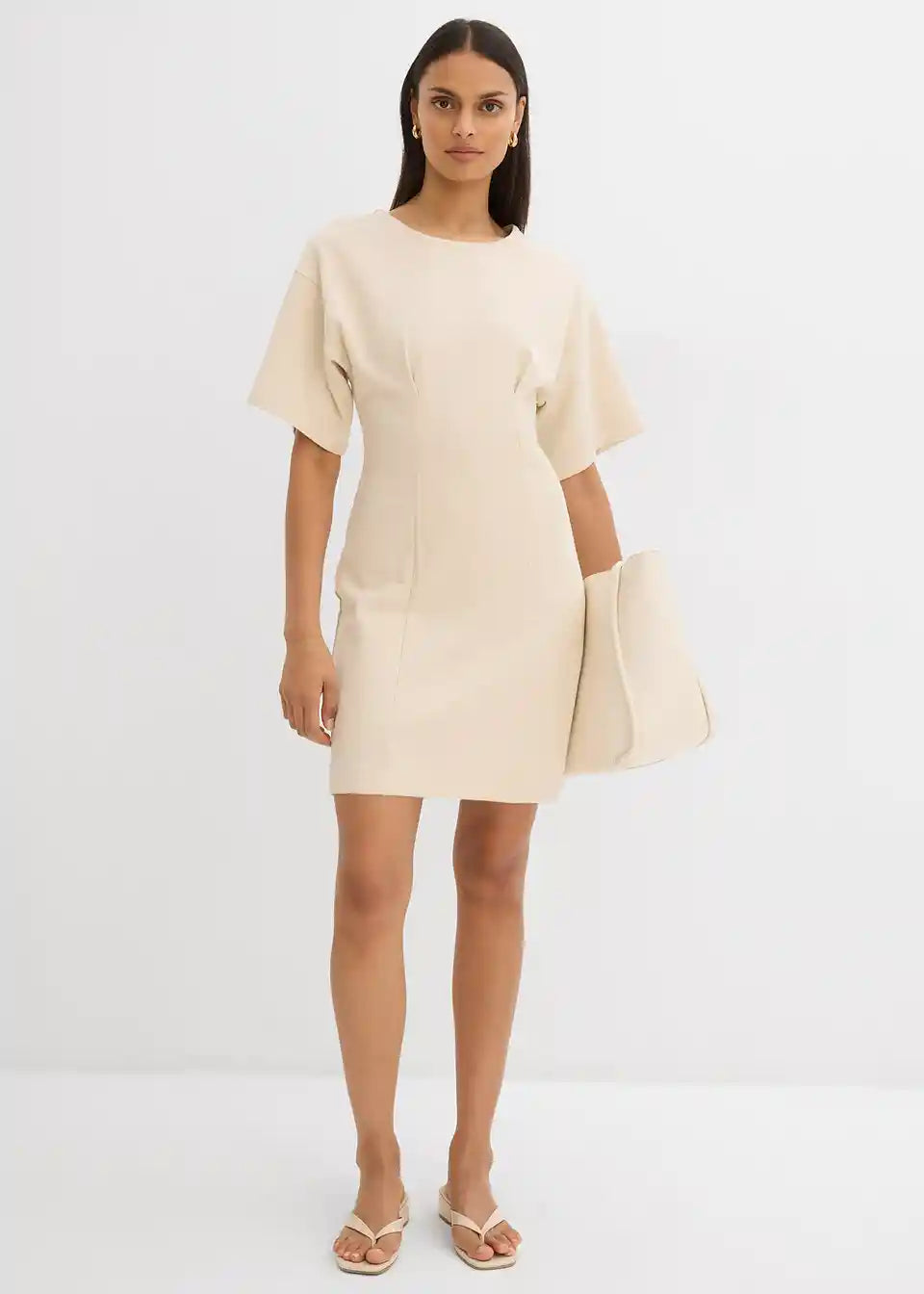 Uska mini haljina s kratkim širokim rukavima i naborima sprijeda