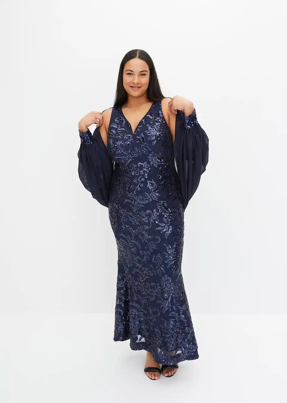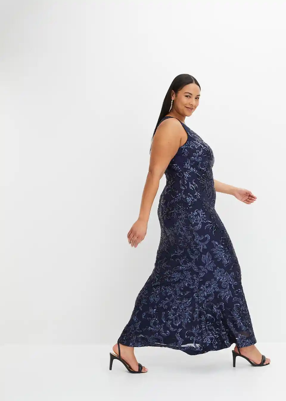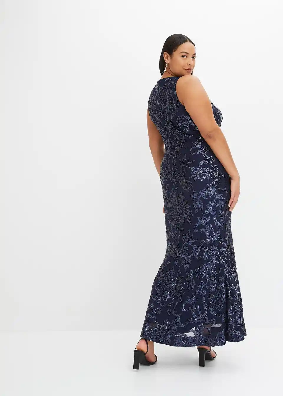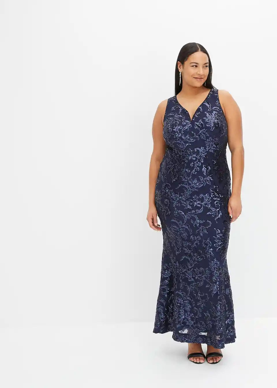 Ekstravagantna večernja haljina u Mermaid obliku s uzorkom šljokica i dubokim dekolteom