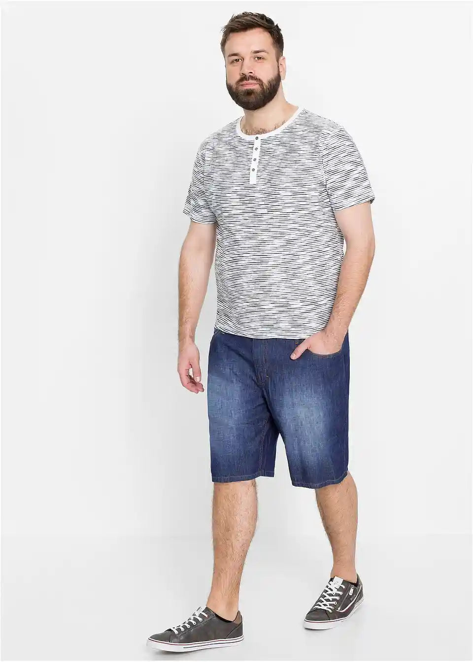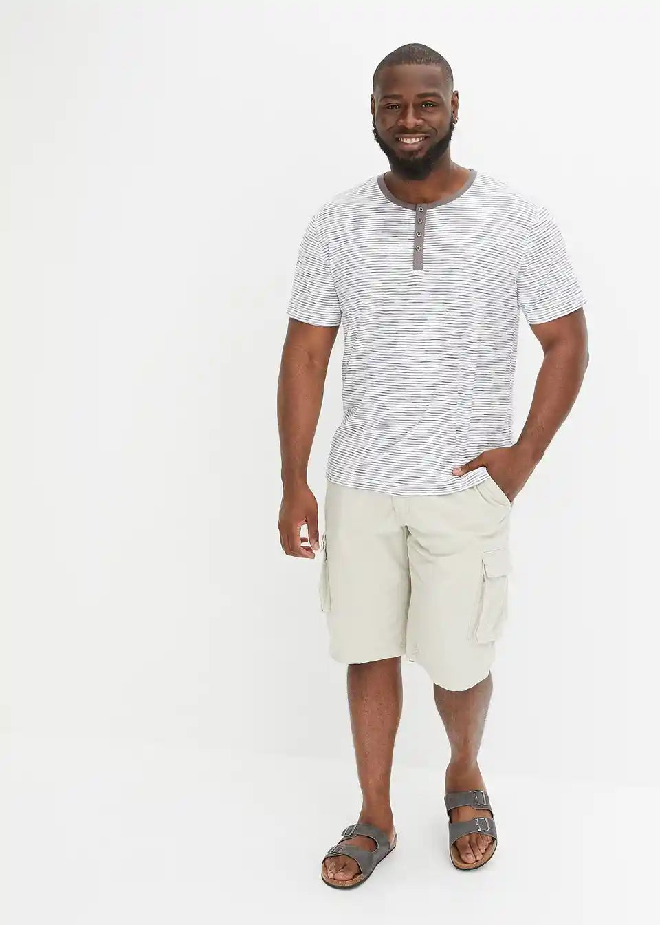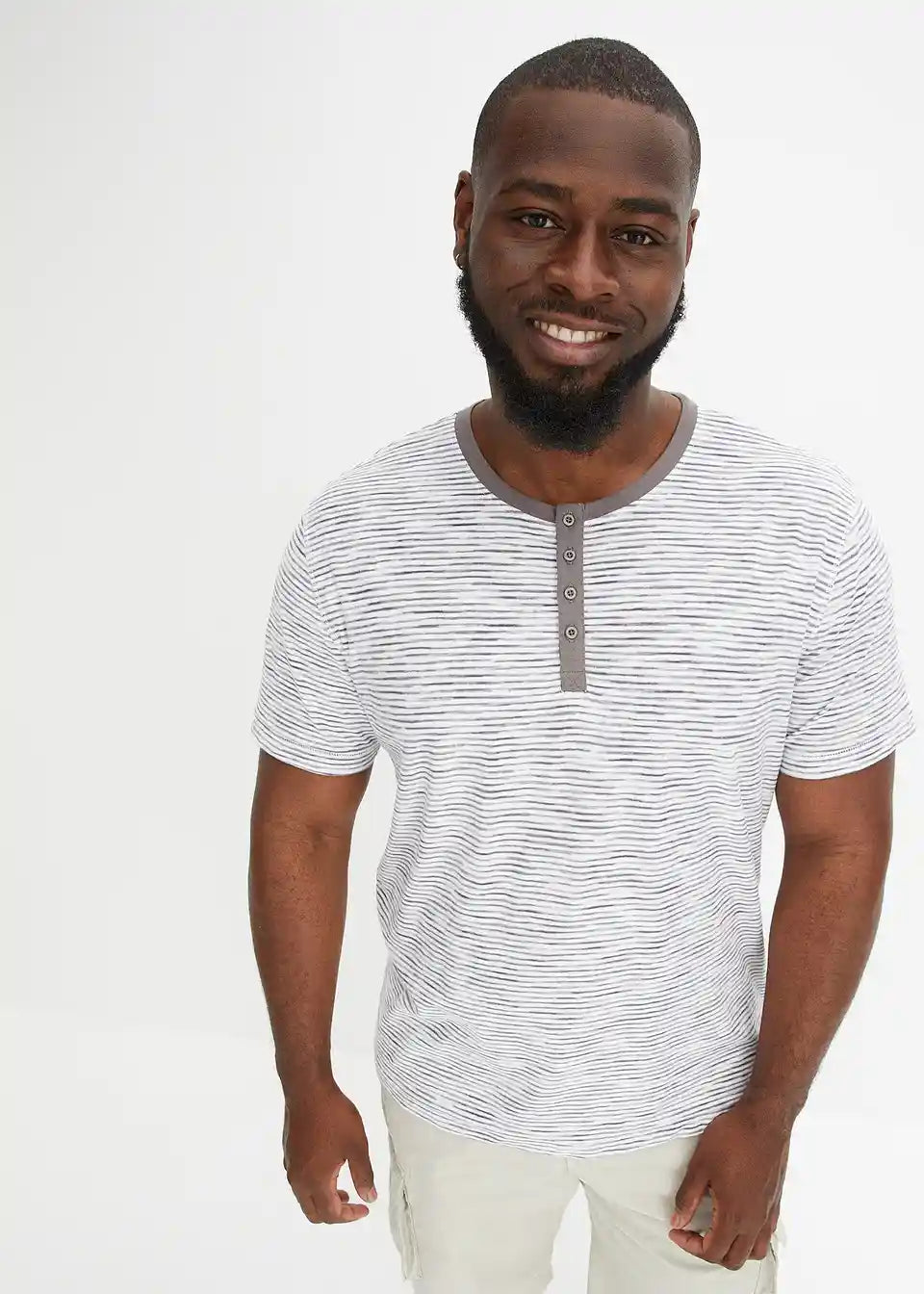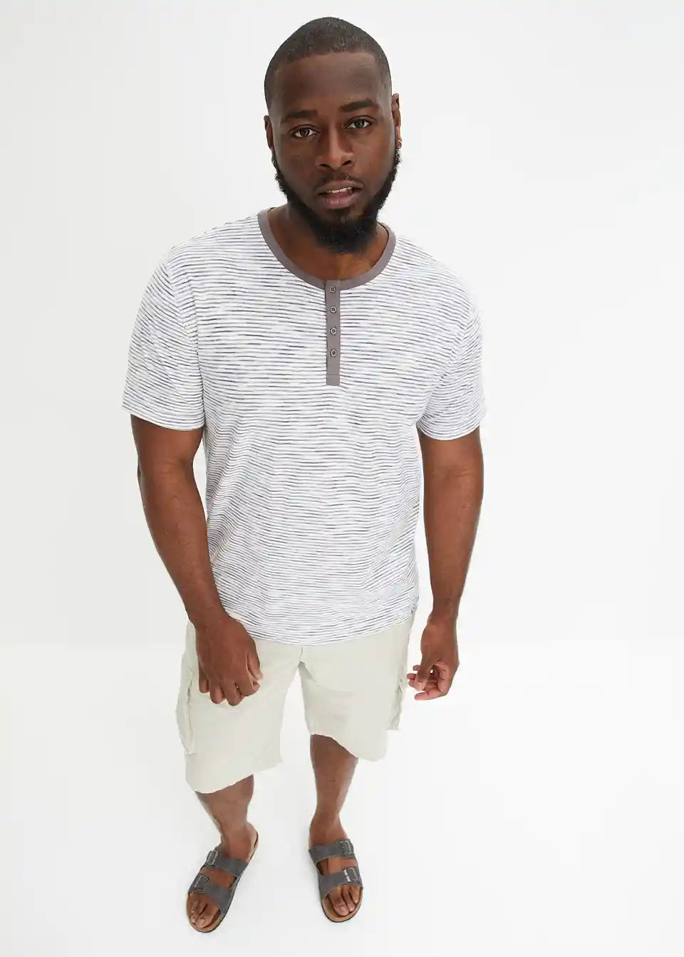 Majica s okruglim izrezom s gumbima i kratkim rukavima od pamuka