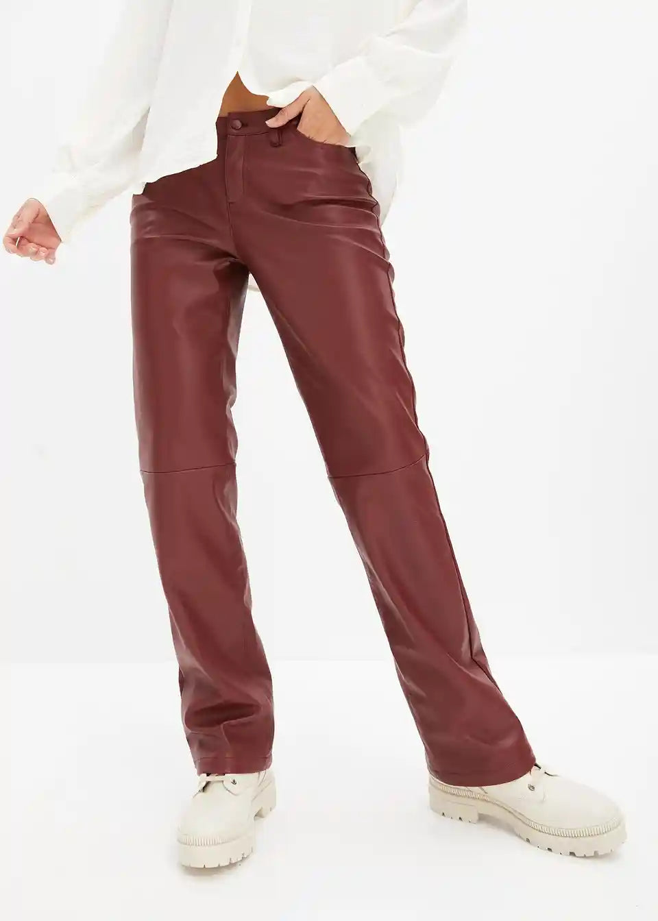 Hlače od imitacije kože sa srednje visokim strukom