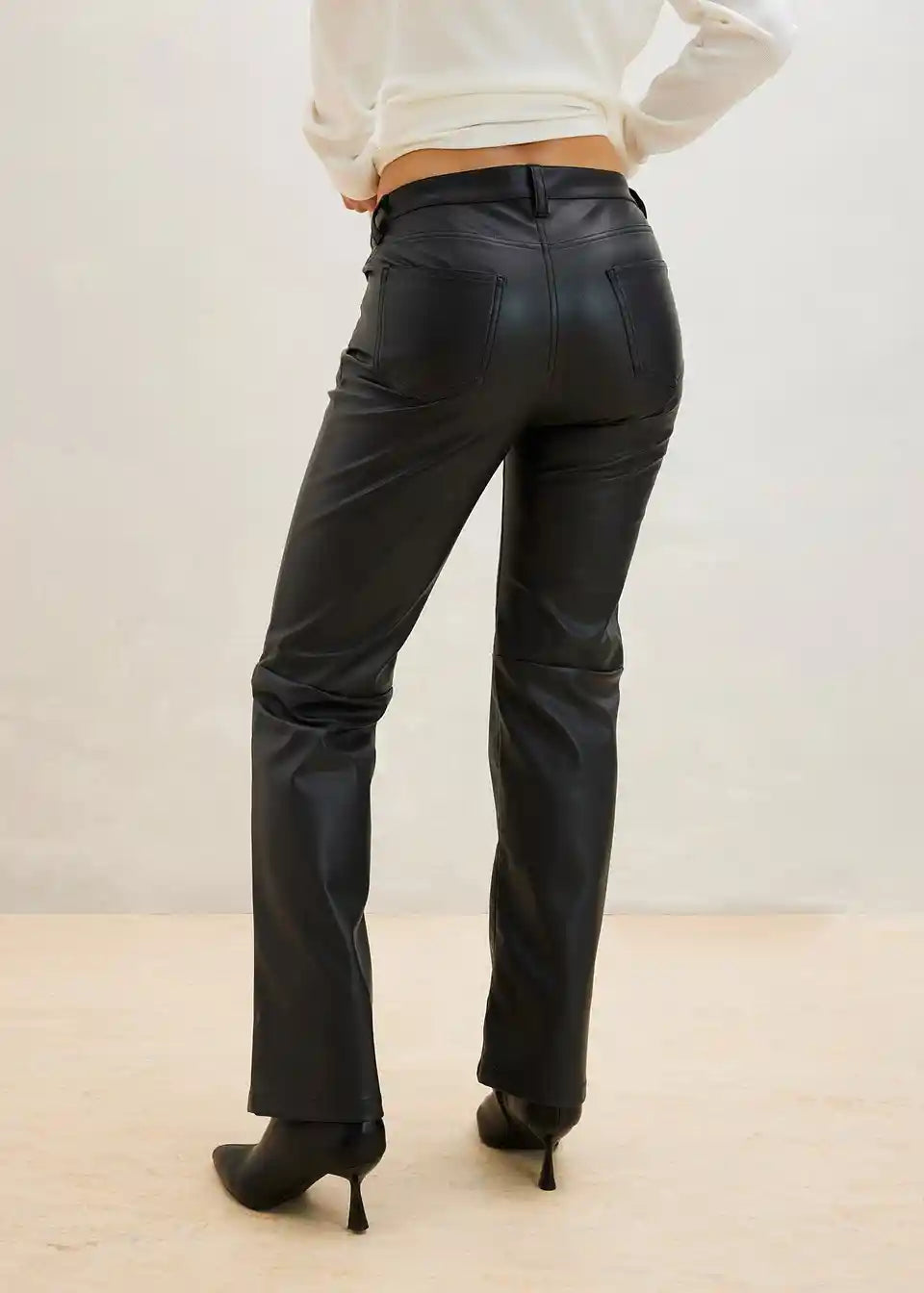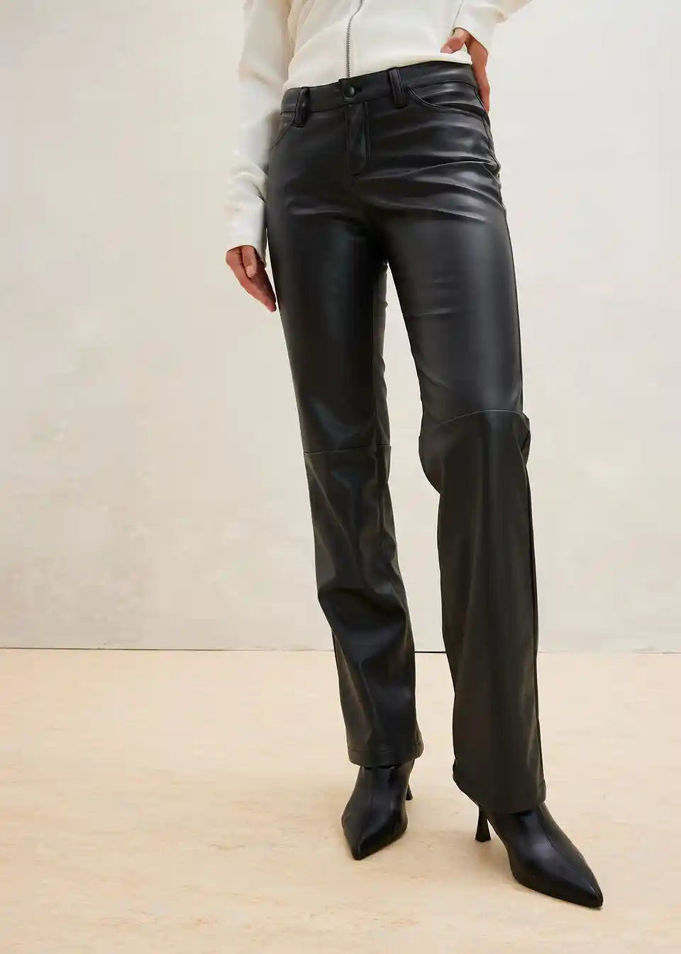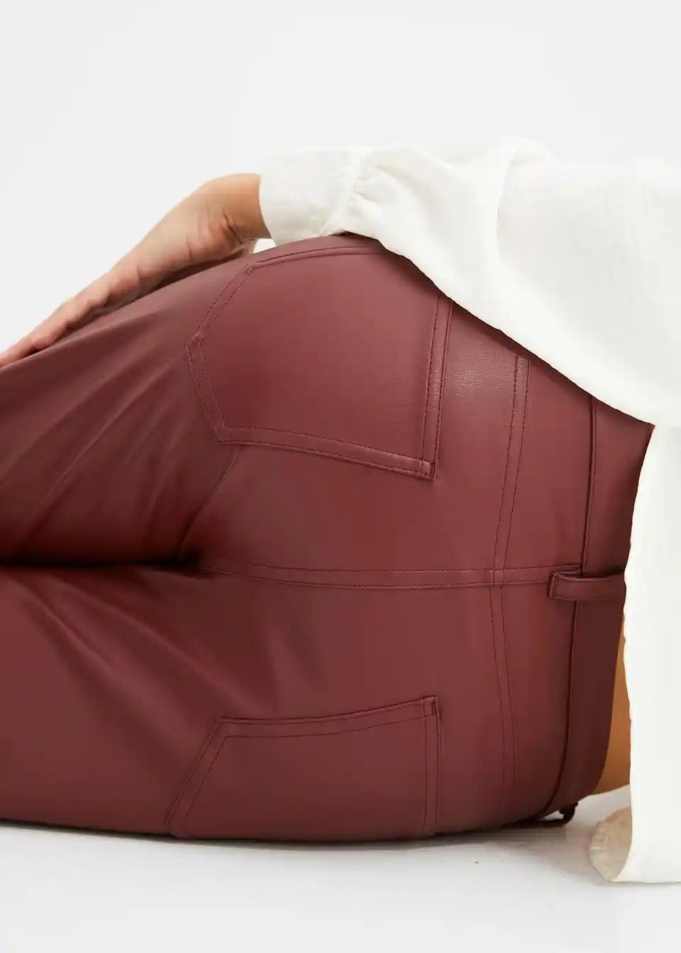 Hlače od imitacije kože s srednje visokom strukom i ukrasnim šavovima
