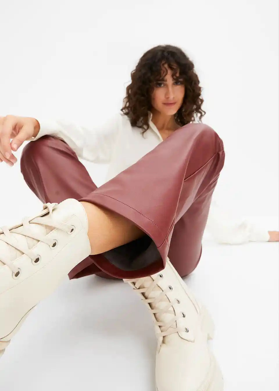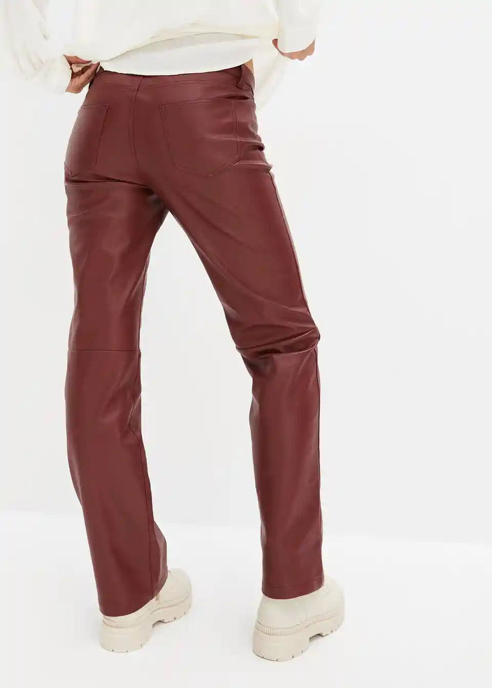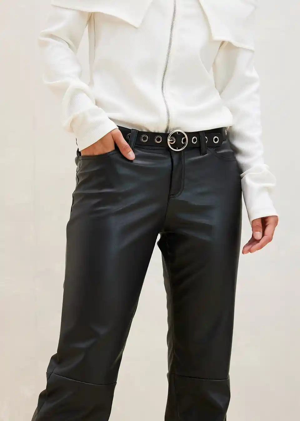 Hlače od imitacije kože s srednje visokom strukom i ukrasnim šavovima