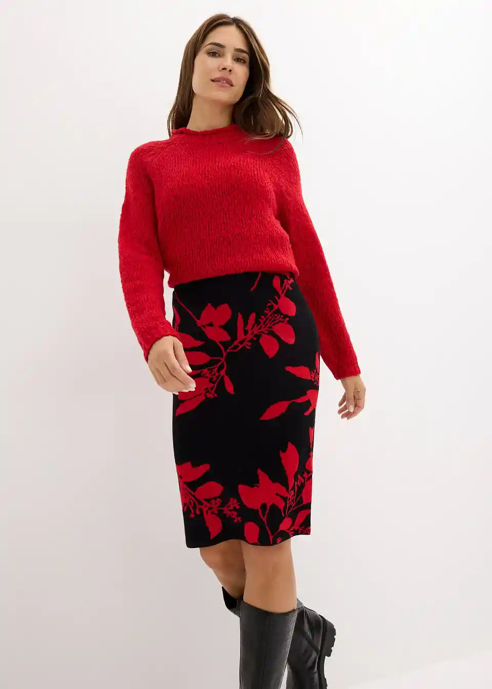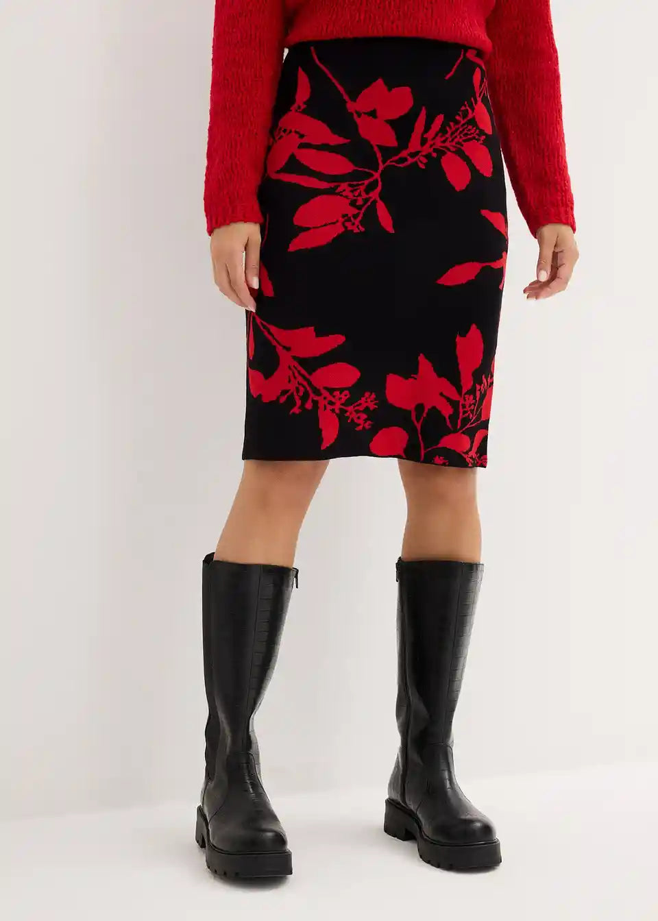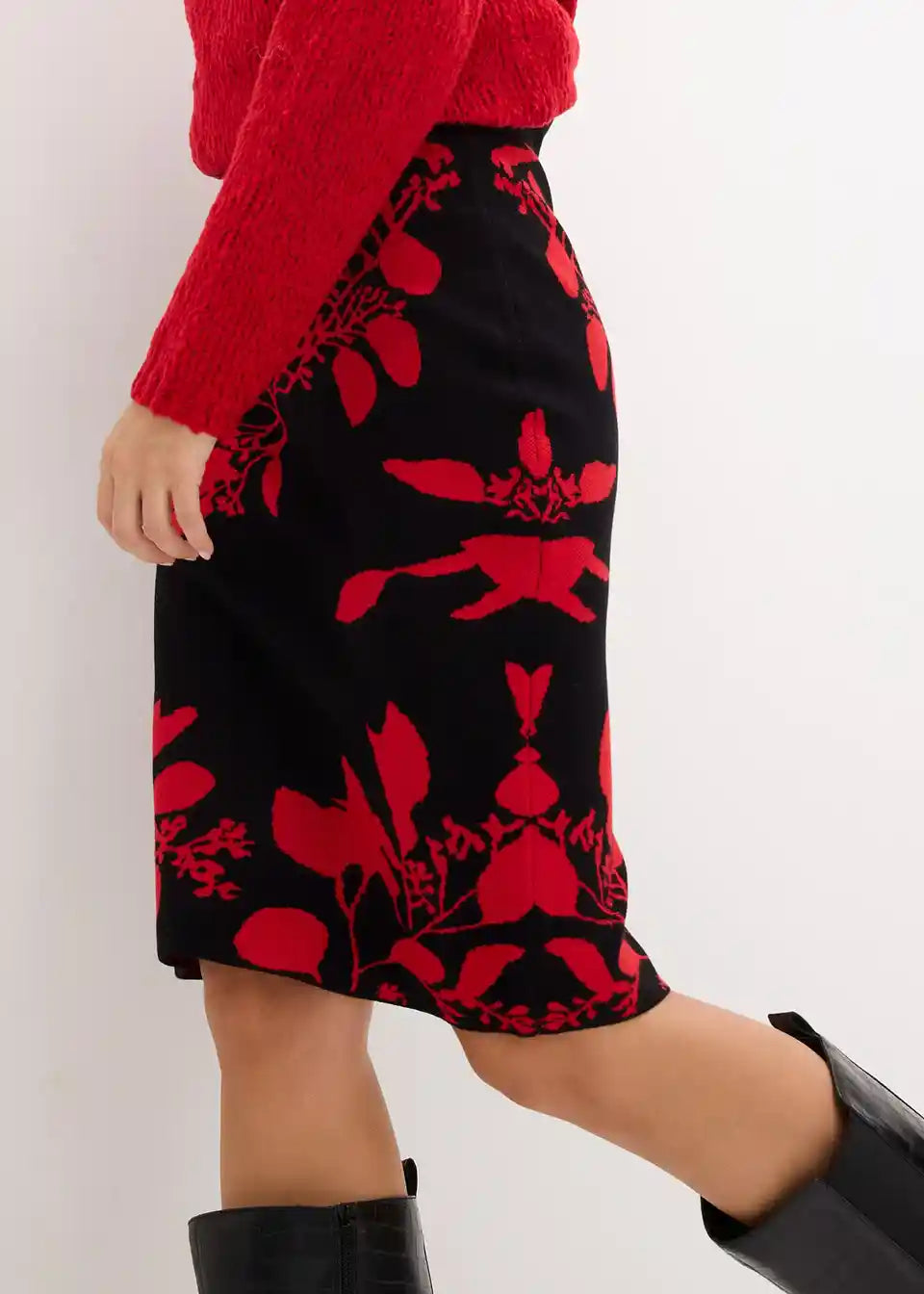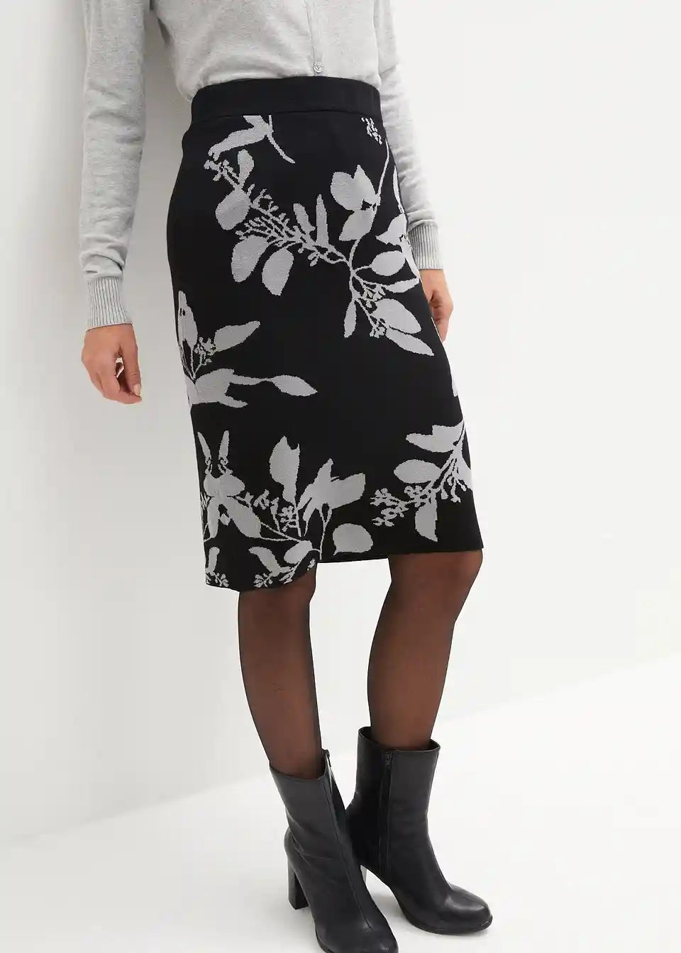 Klasična Jacquard pletena suknja s cvjetnim printom