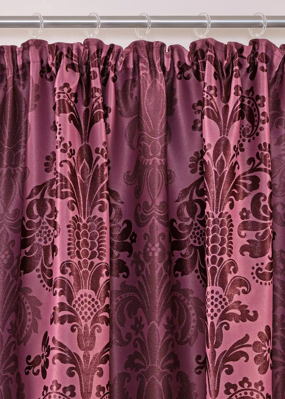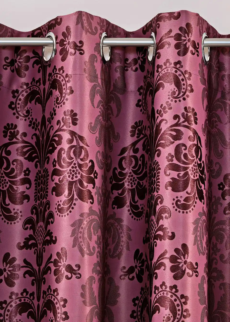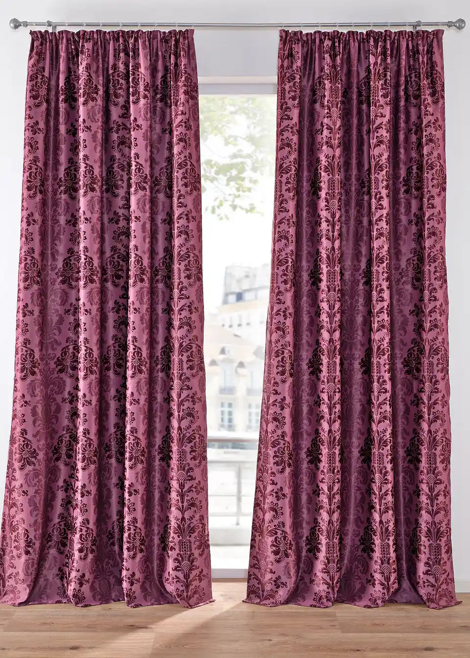 Ova zatamnjujuća zavjesa zahvaljujući svom teškom materijalu ima svojstva uštede energije: topli sunčevi zraci ili hladni propuh mogu se blokirati. Elegantni dizajn s ornamentima nalazi se s prednje i stražnje strane, jer je zavjesa izrađena visokokvalitetnom Jacquard tehnikom. Dvostruka širina (270 cm) obrađena je središnjim šavom.
