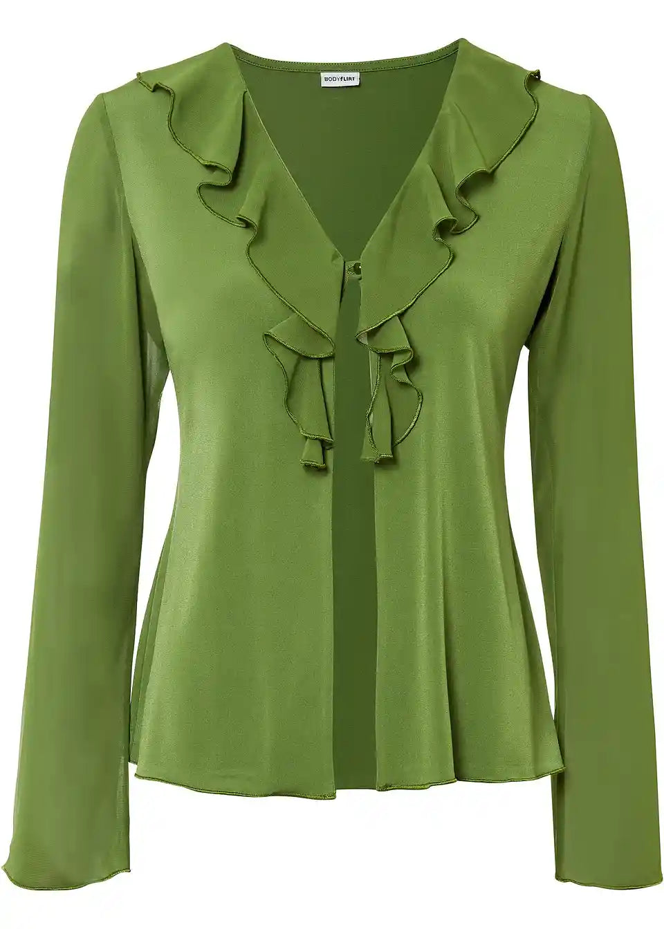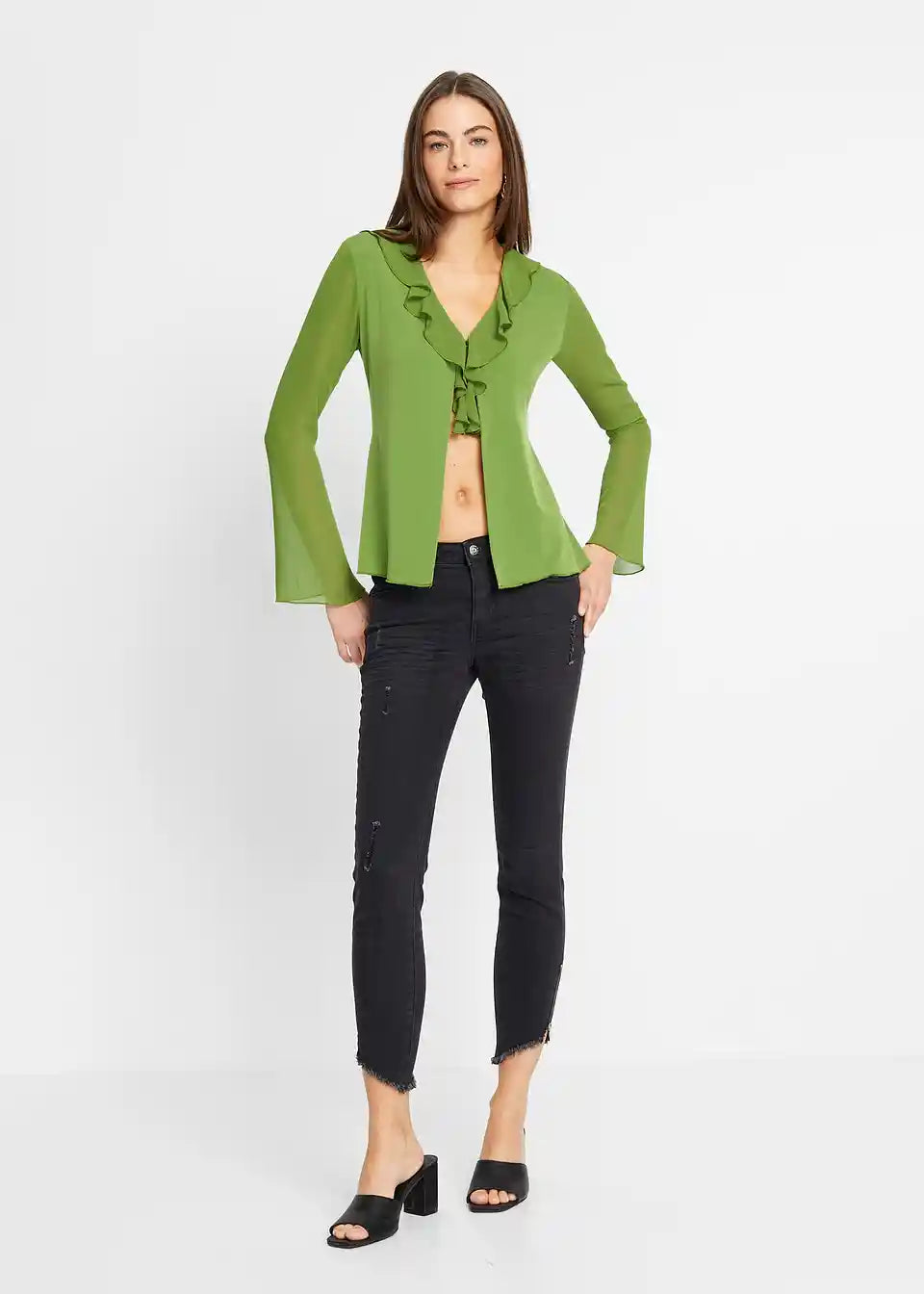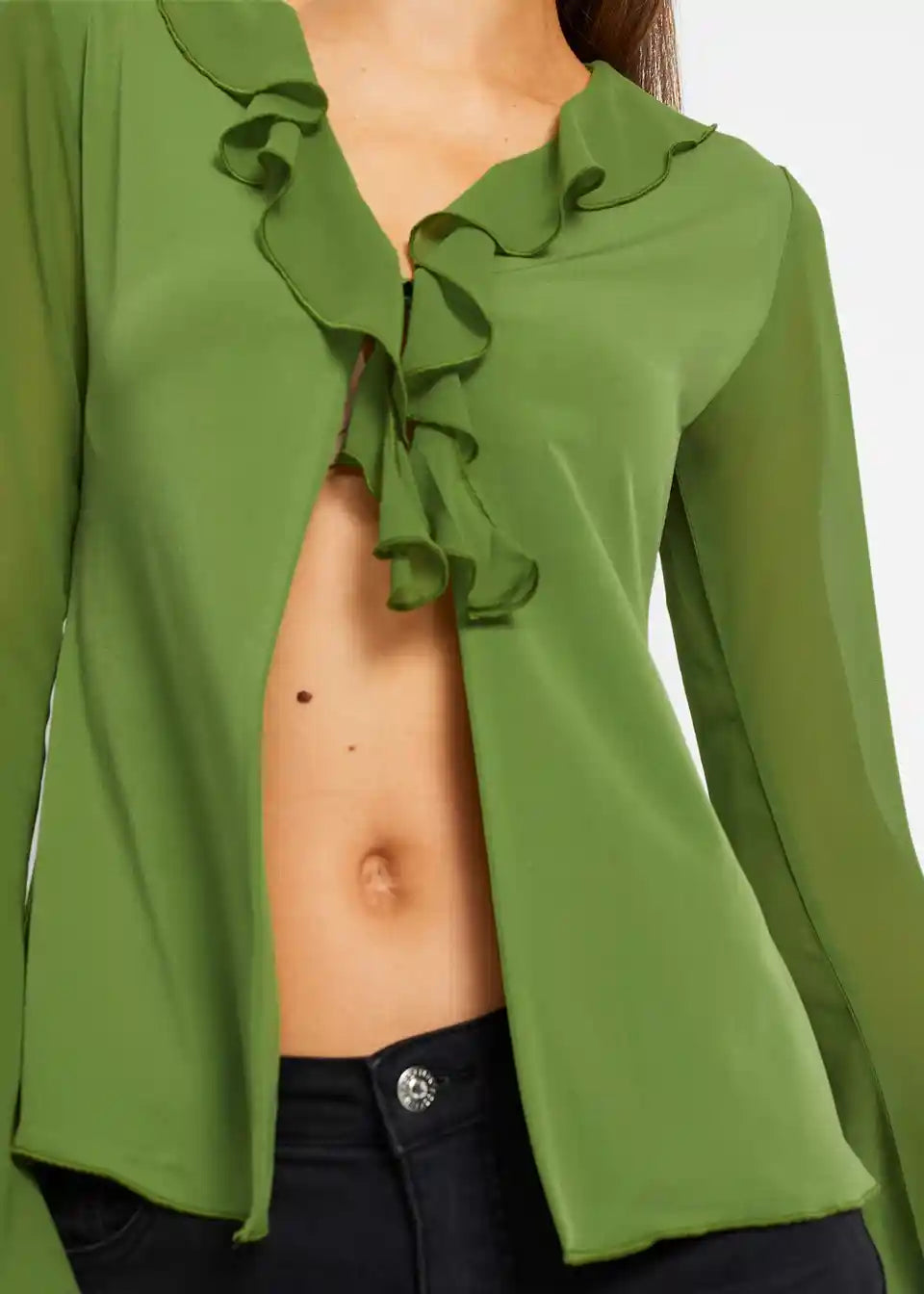 Moderna bluza s kopčanjem na gumbe i volančićima