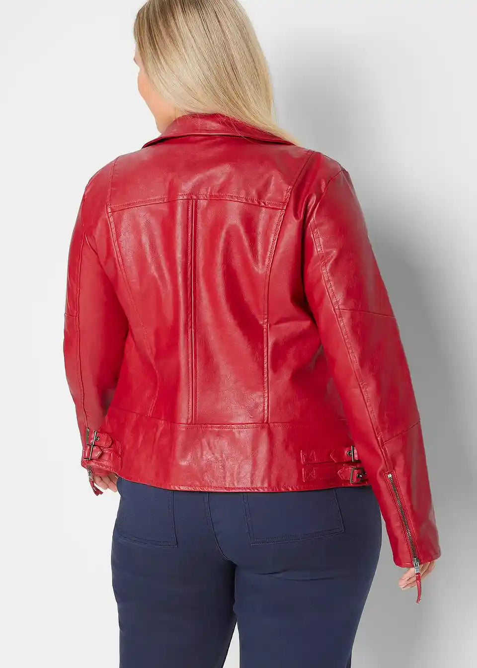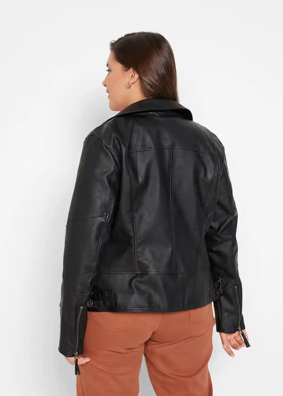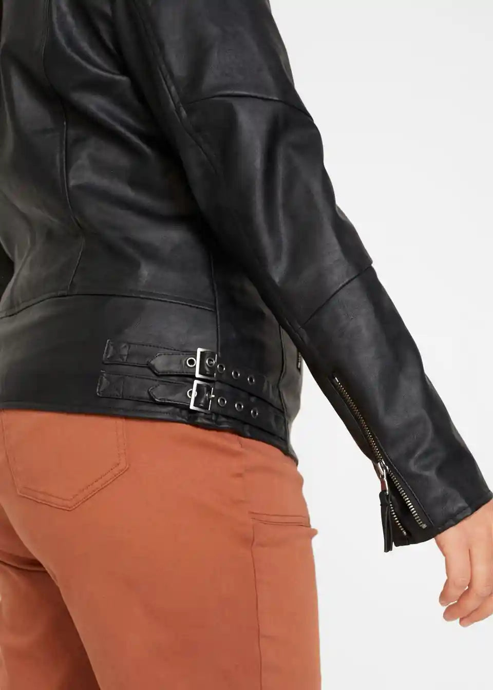 Svestrana jakna od umjetne kože u biker stilu s kopčama u području bokova