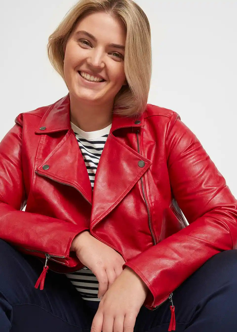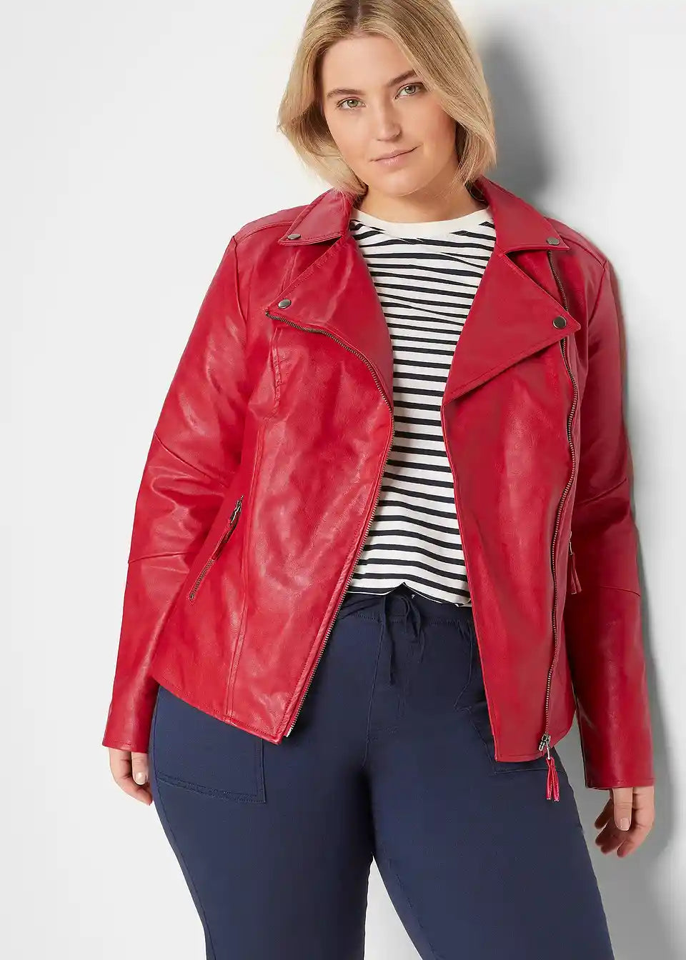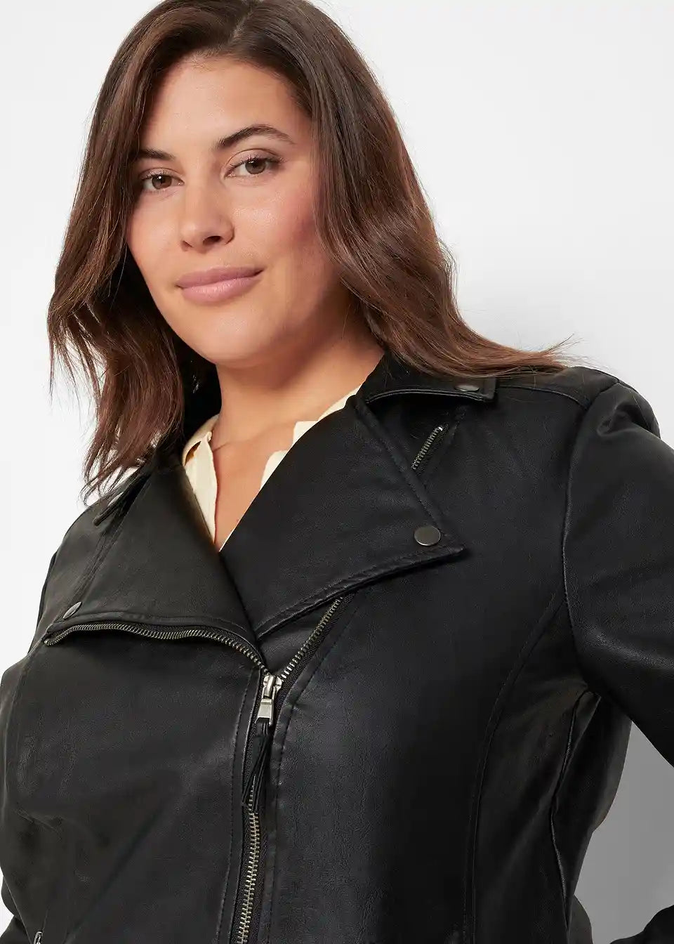 Svestrana jakna od umjetne kože u biker stilu s kopčama u području bokova