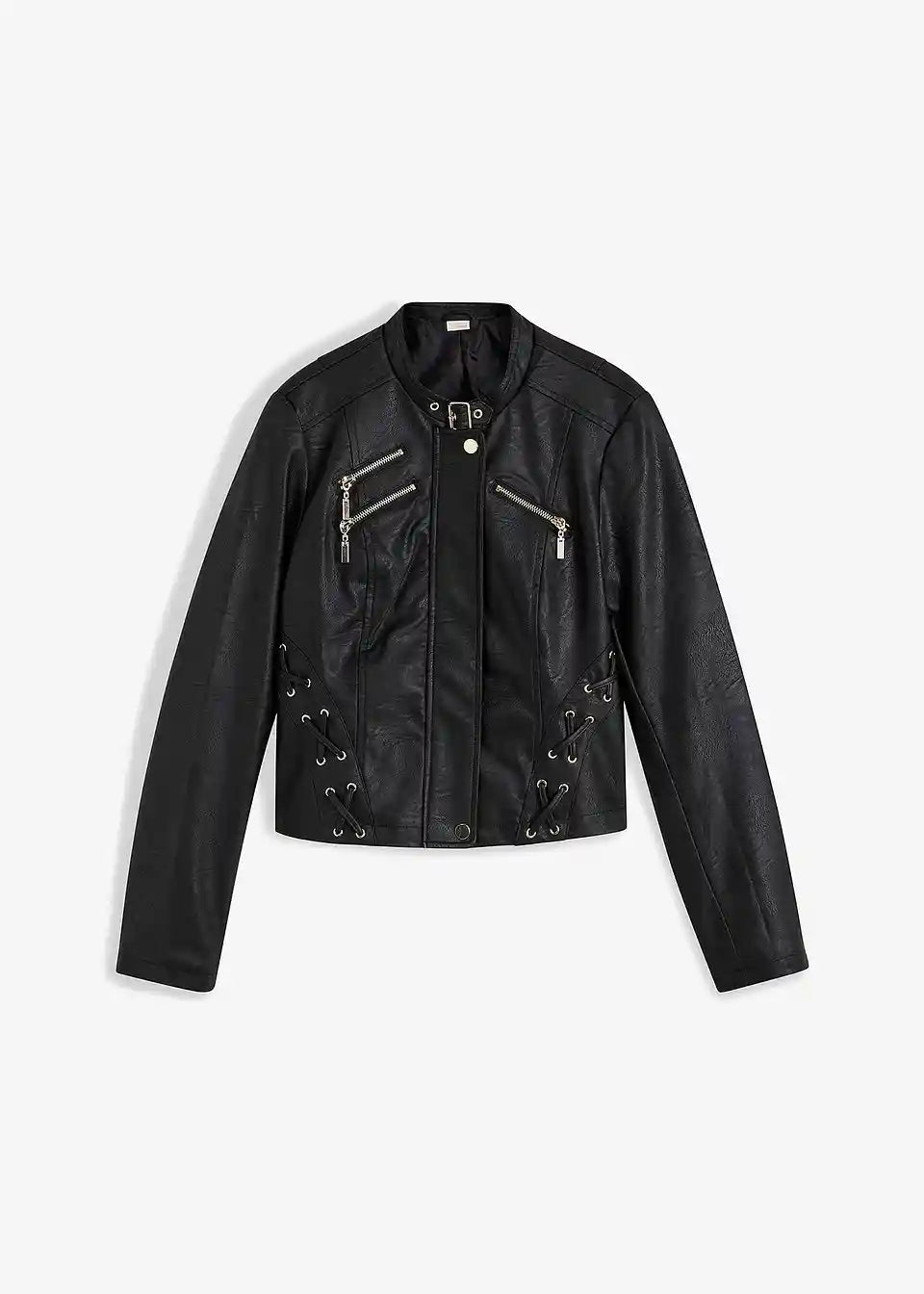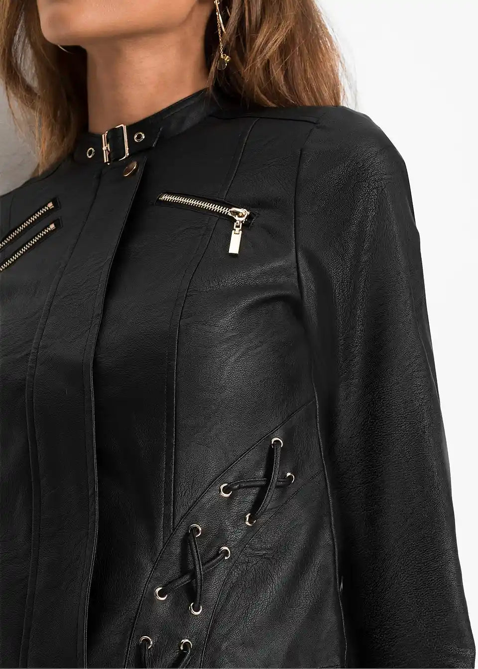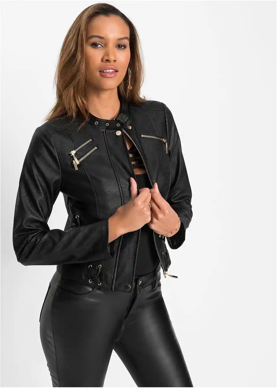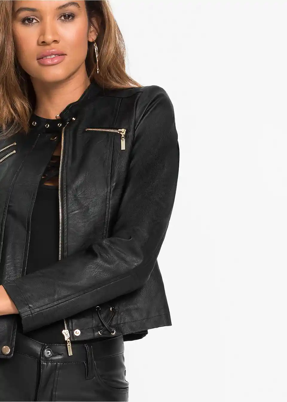 Skraćena jakna od umjetne kože sa svojim stilskim dizajnom privlači pažnju i daje outfitu cool izgled. Dužina u veličini 38 cca 55 cm.
