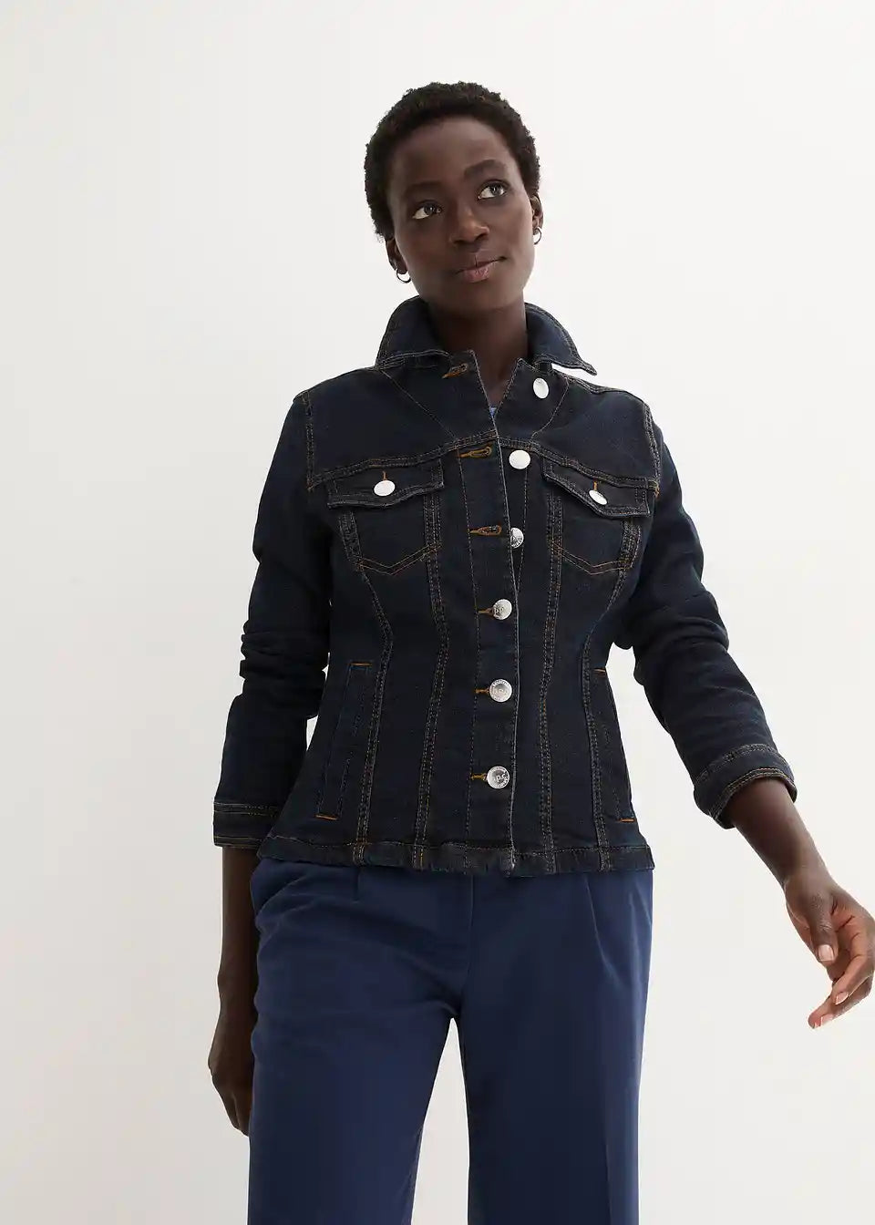 lepršav kroj, u stilu jeans jakne s bočnim džepovima, kopčanjem na gumbe i karakterističnim šavovima, duljina od cca 57 cm (vel. 36) do cca 70 cm (vel. 52), perivo u perilici,