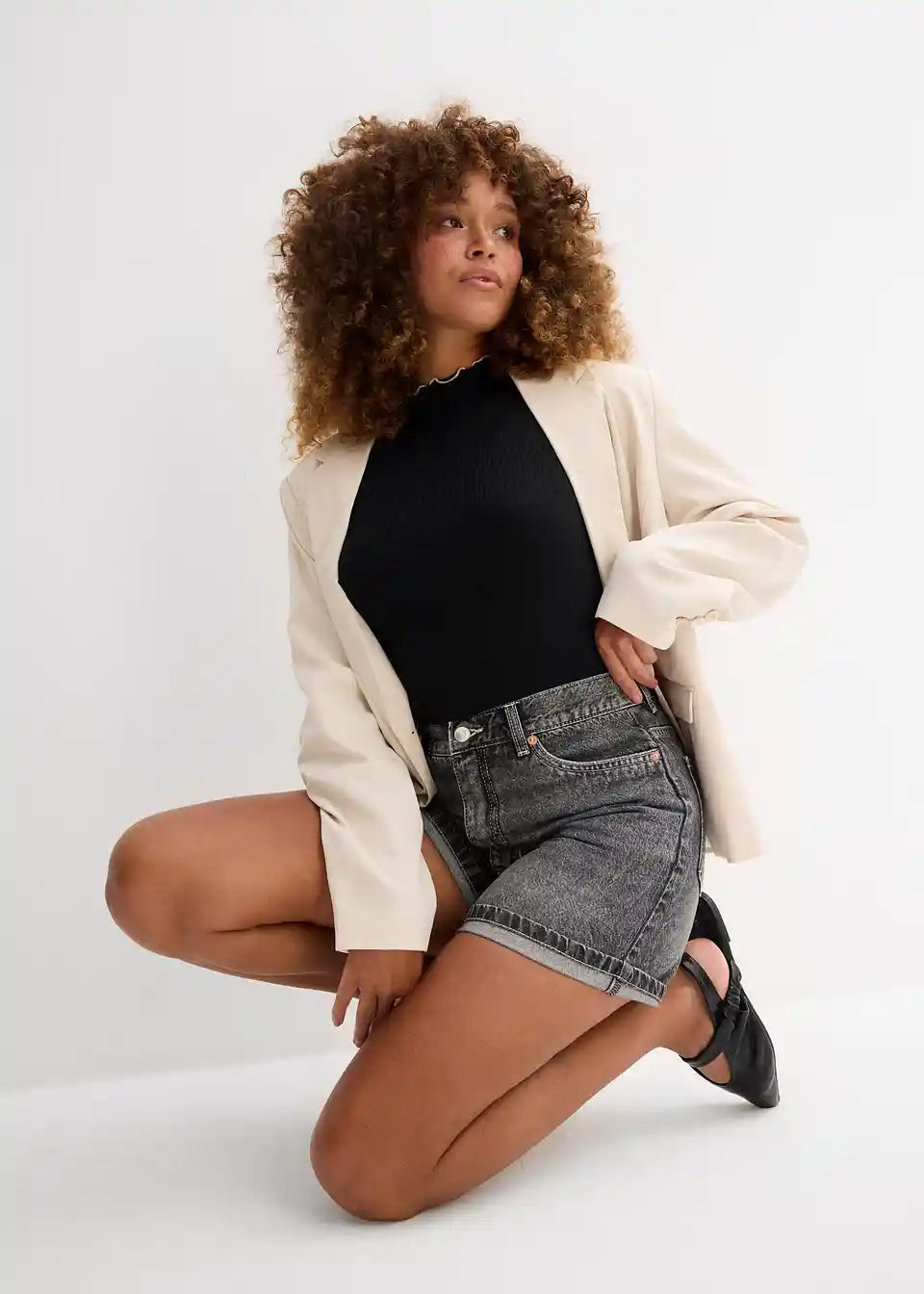 Kratke traperice s visokim strukom od stretcha s malim udjelom elastana