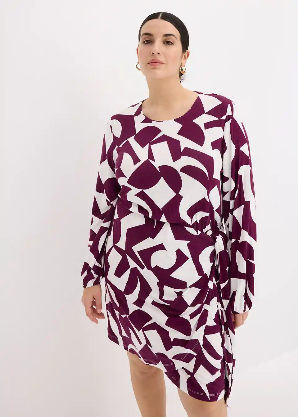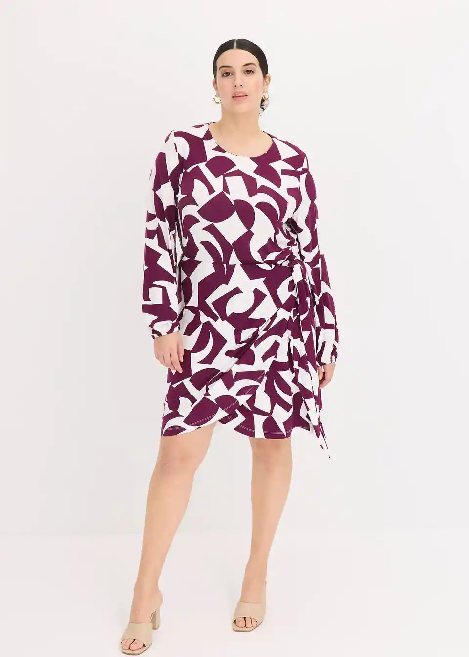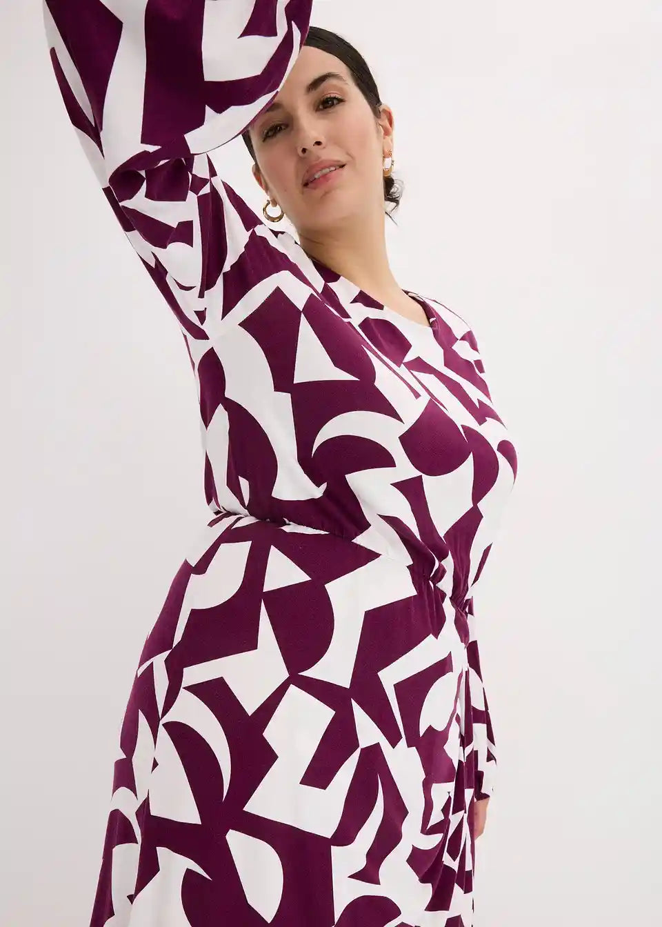 moderna jersey haljina s printom i izgledom preklopa.