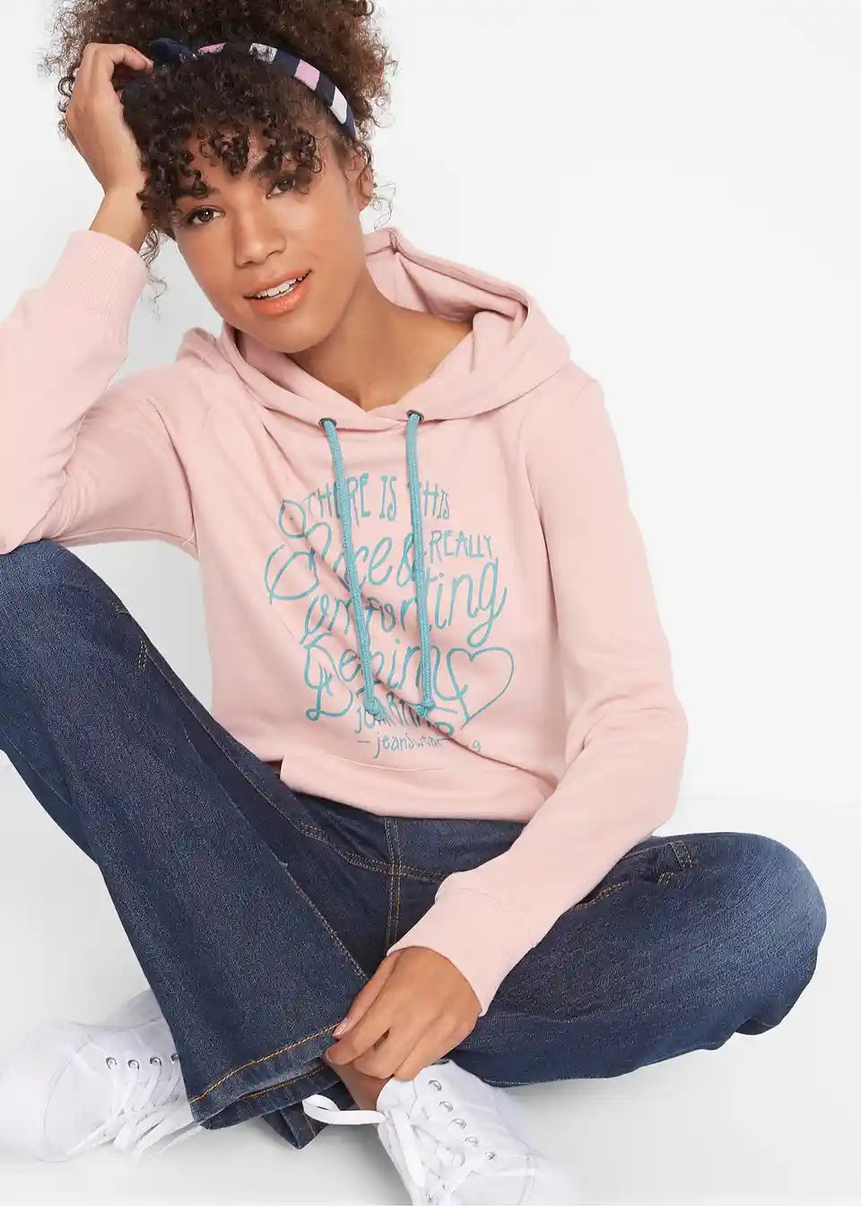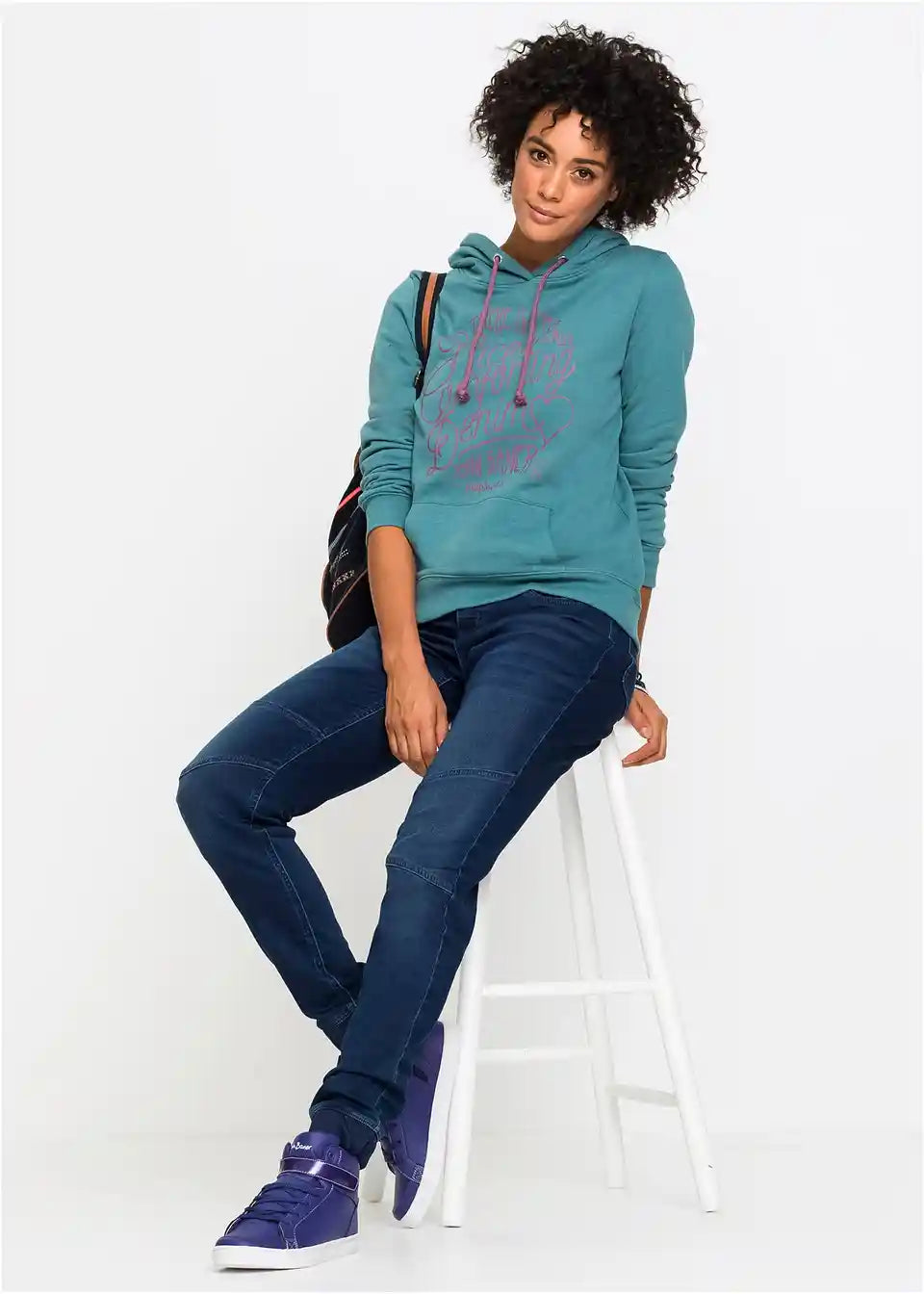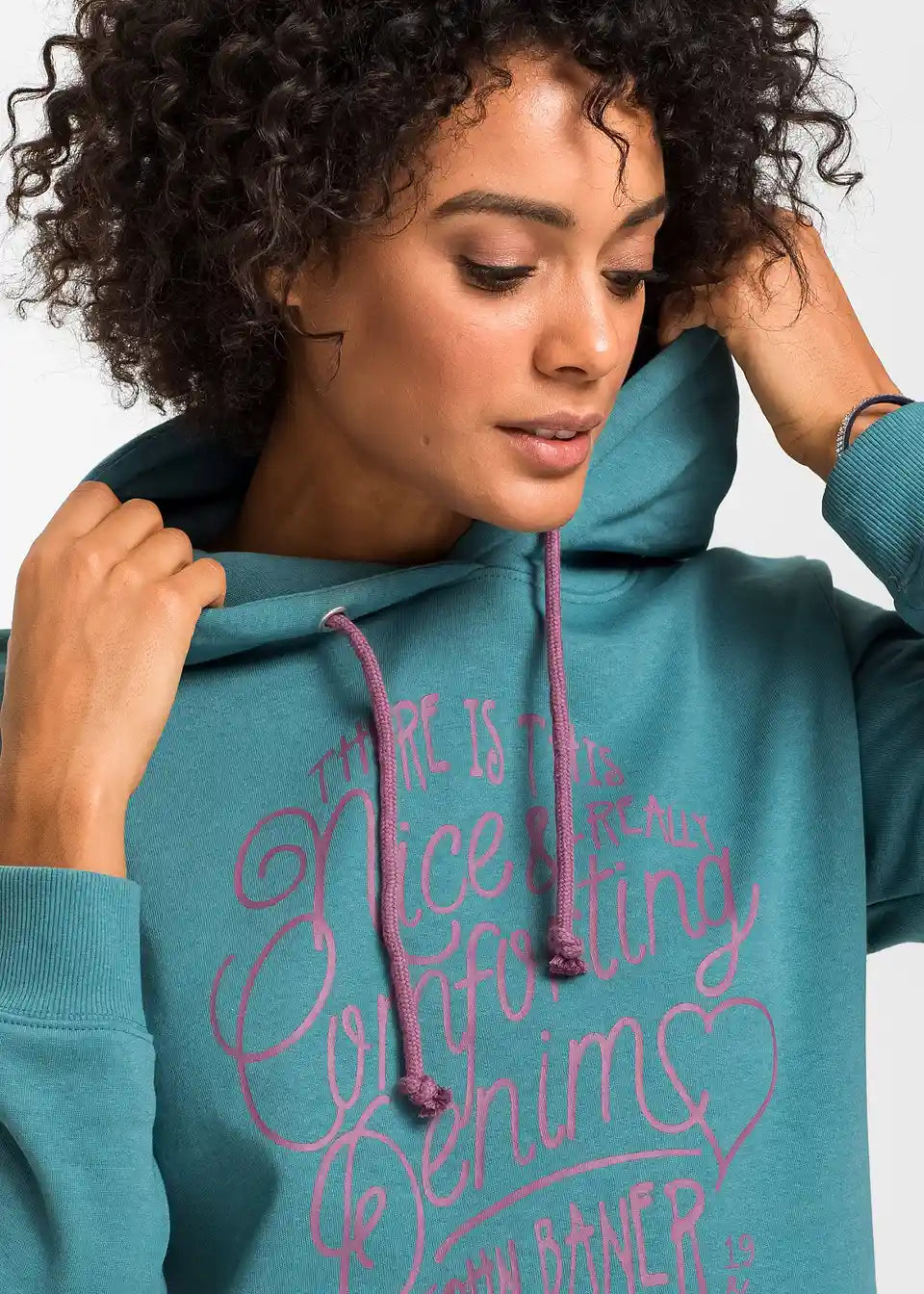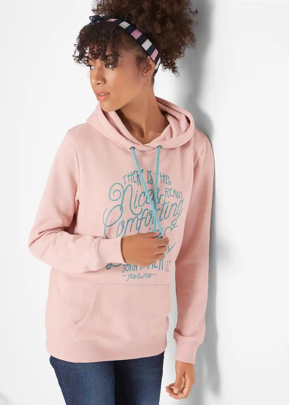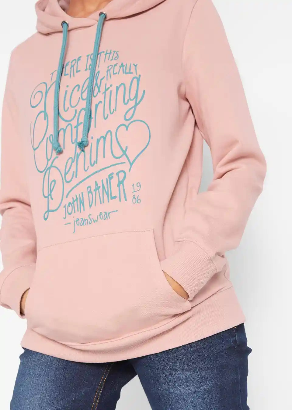Omiljeni komad za žene koje vole sportski stil – ovaj duks s kapuljačom s printom. Upadljiv natpis u kontrastnoj boji i veliki klokan džep sprijeda daju majici Johna Banera opušten izgled. Kapuljača se može prilagoditi u širini pomoću vezice.