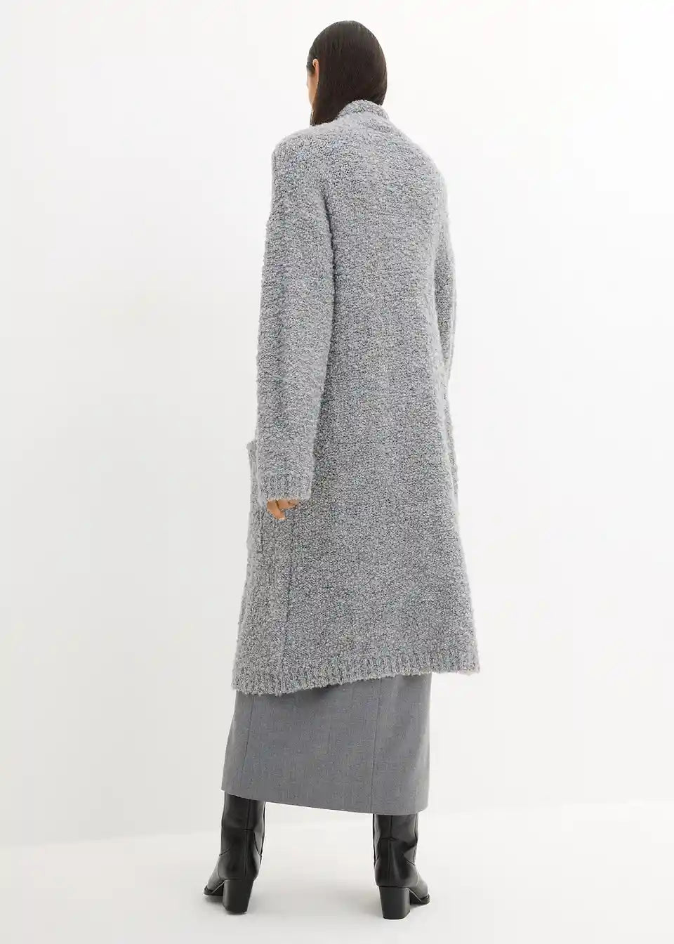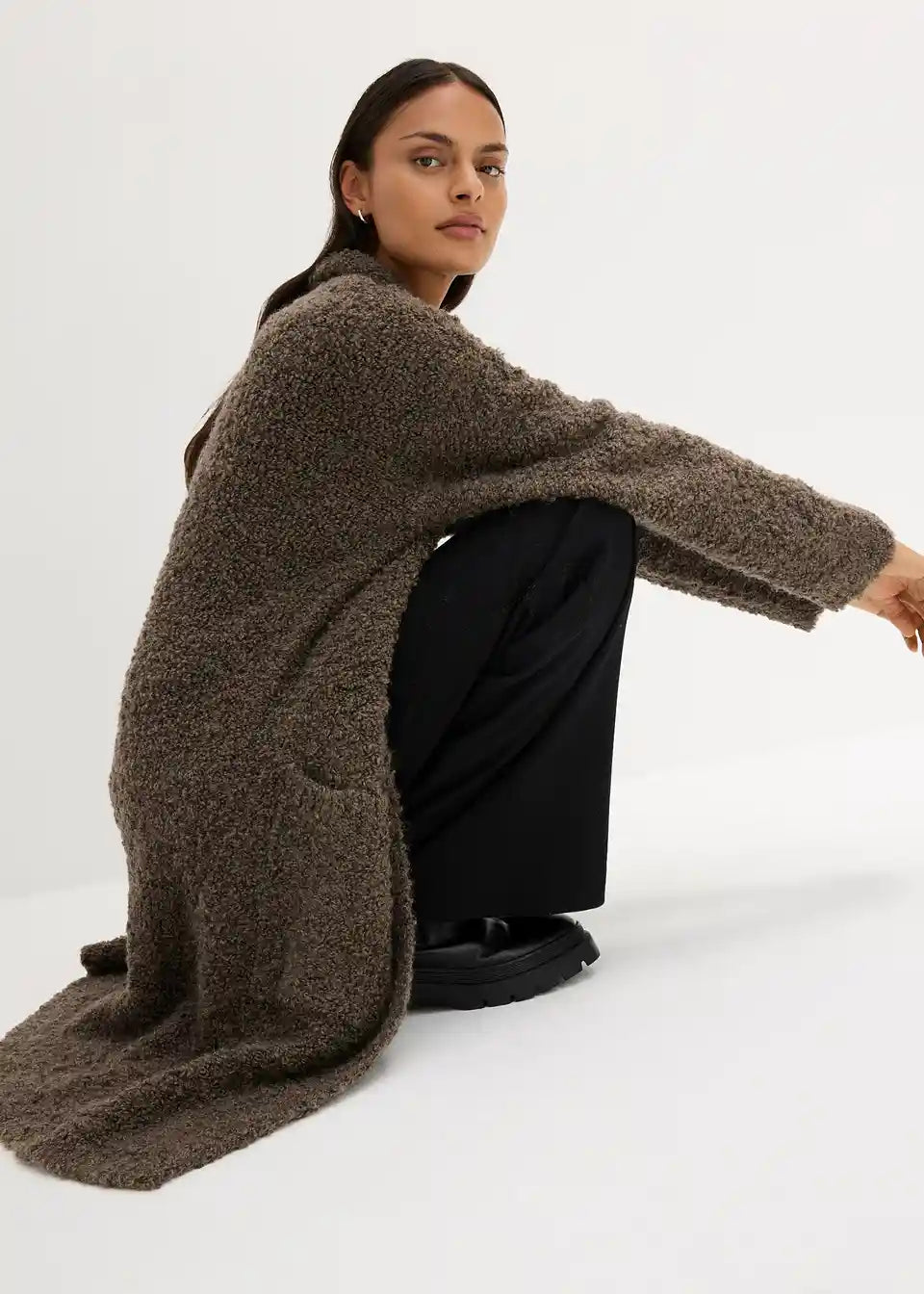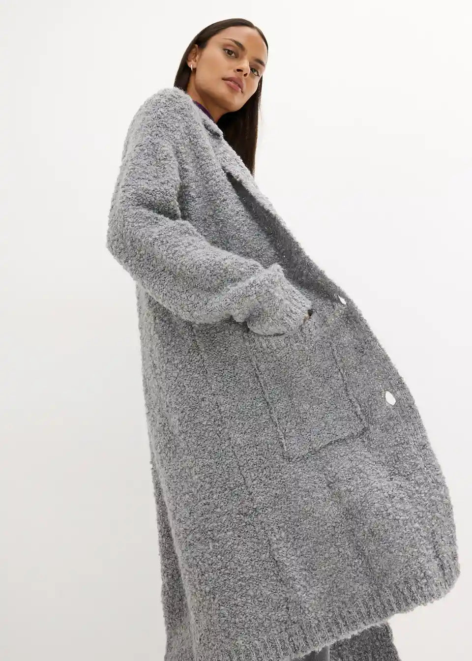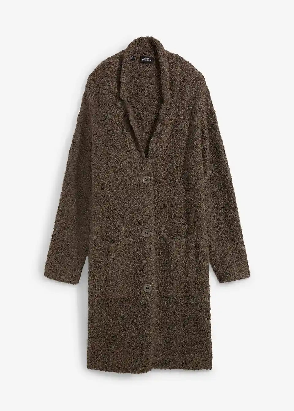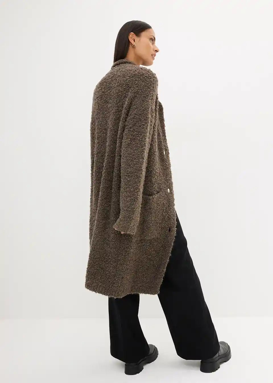 duga pletena jakna s reverima od pjenastog mješavine vune, s ušivenim džepovima