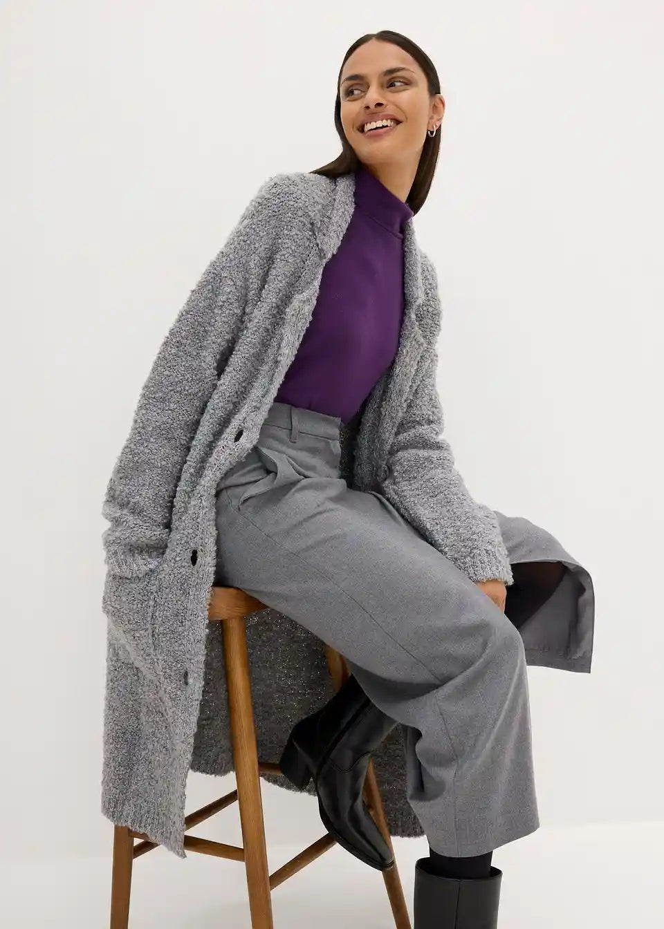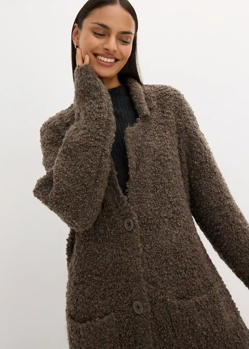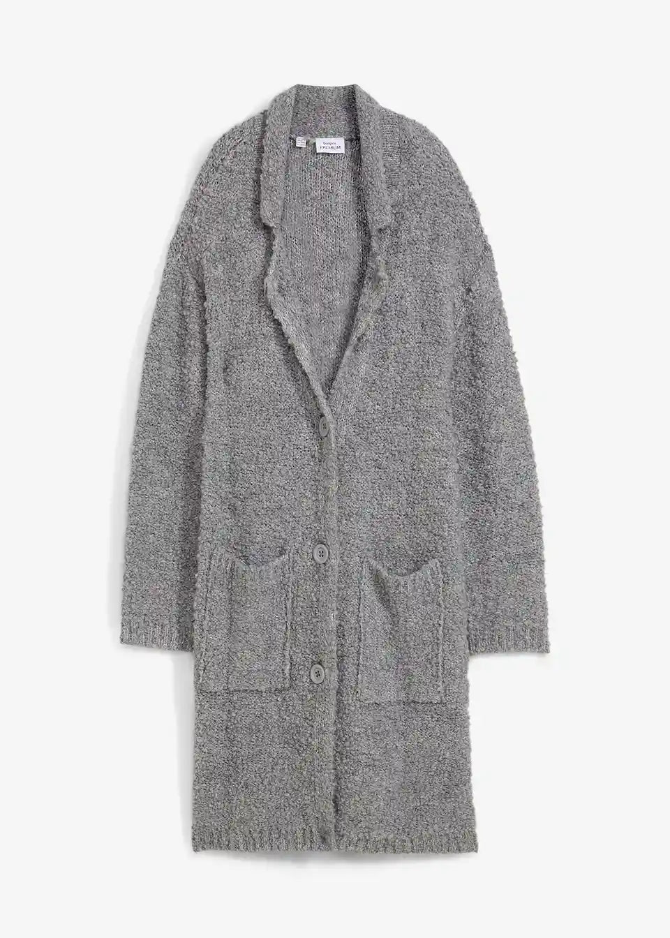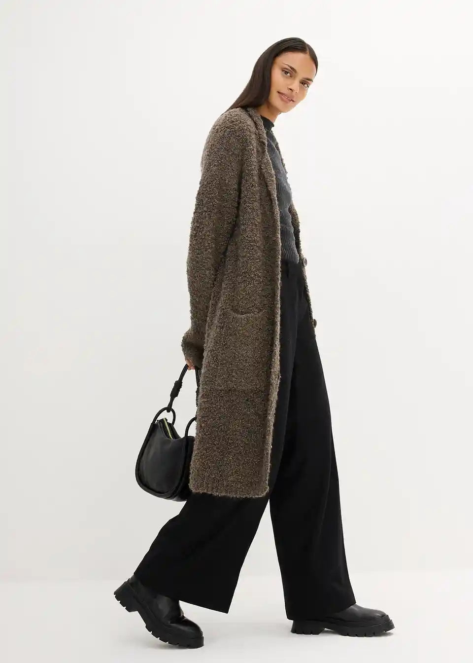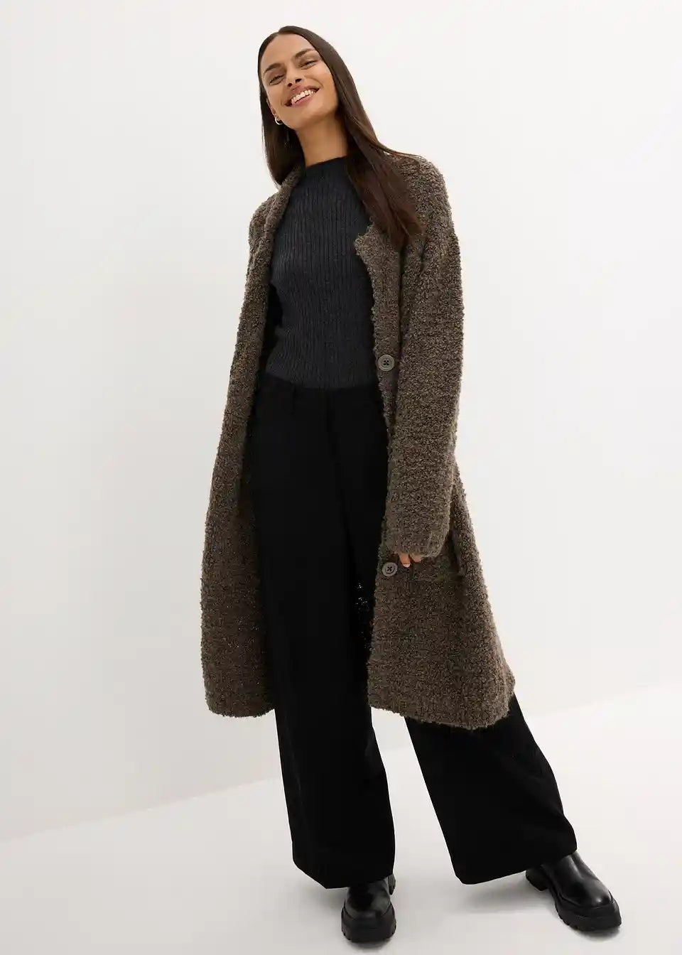 duga pletena jakna s reverima od pjenastog mješavine vune, s ušivenim džepovima