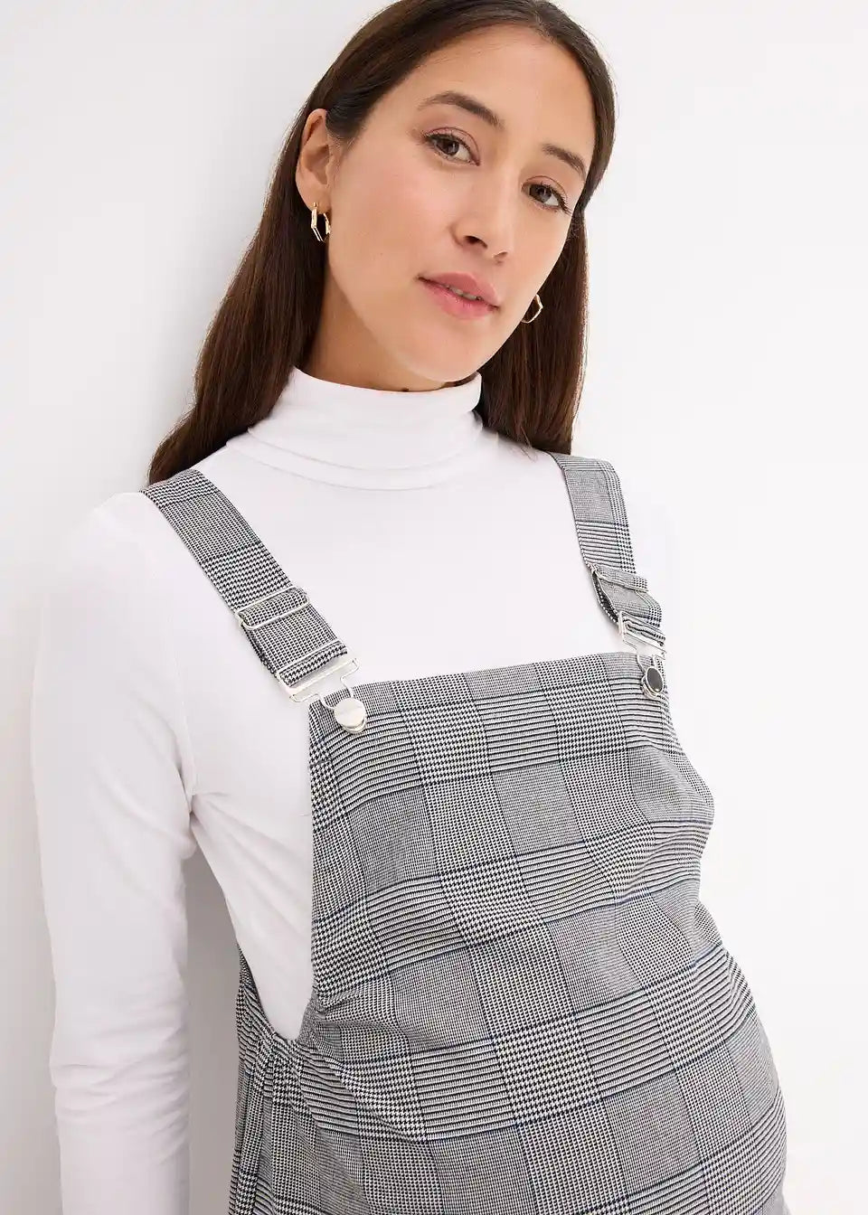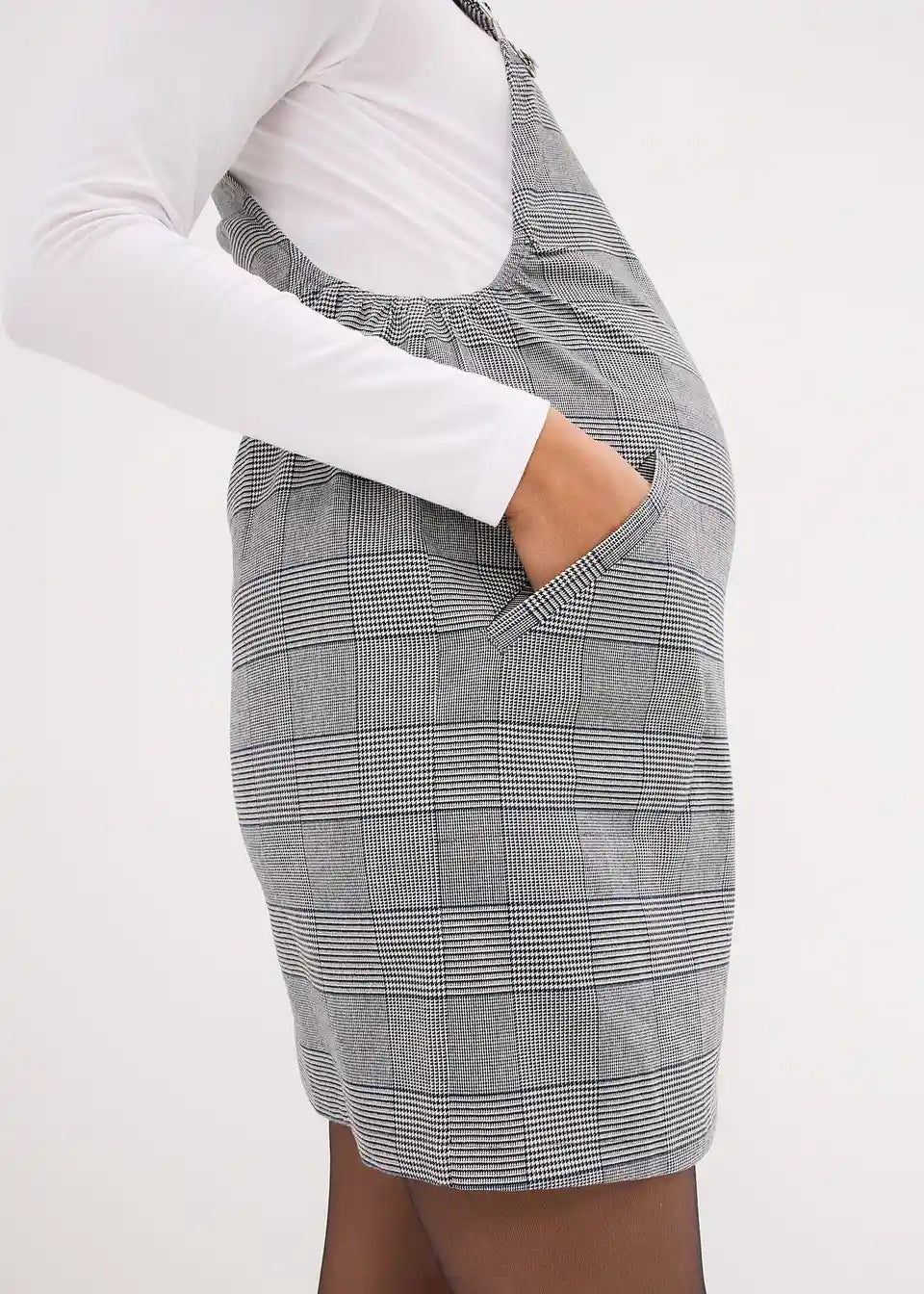 Haljina za trudnice s podesivim naramenicama izrađena od lagane tkanine. S džepovima sprijeda.