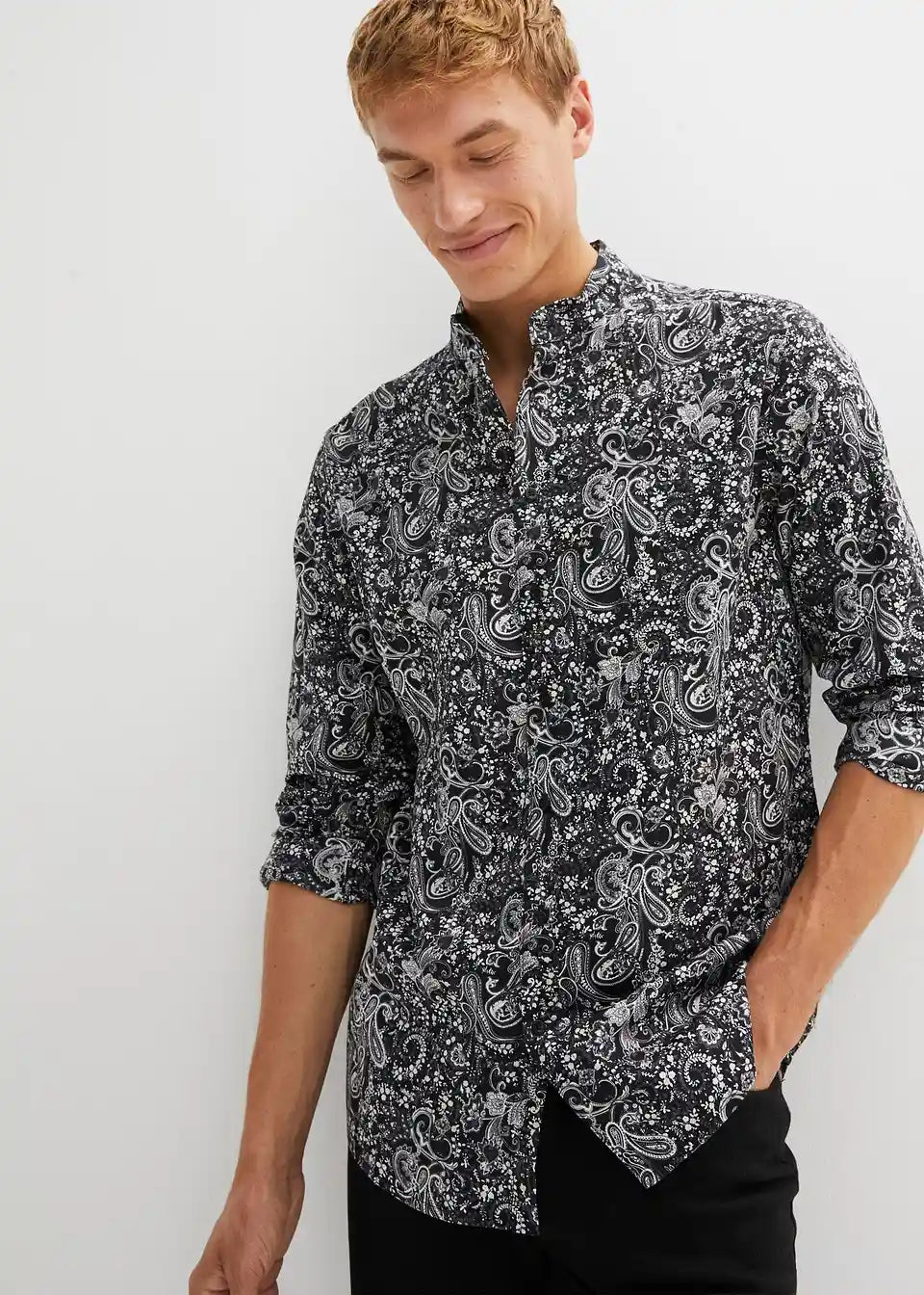 Lijepo štampana košulja s dugim rukavima i stojećim ovratnikom