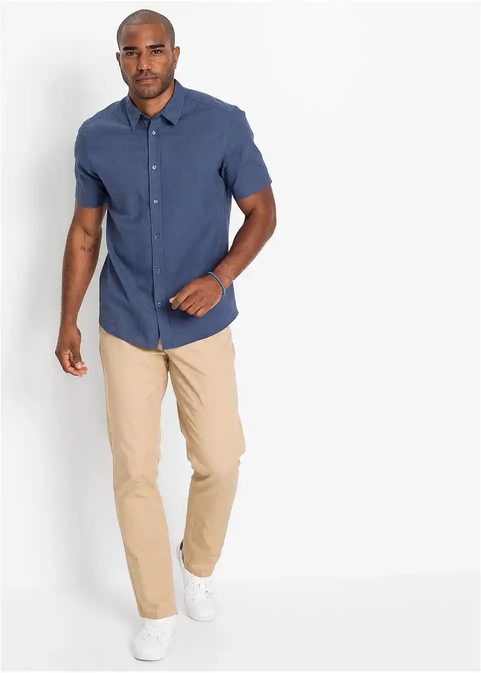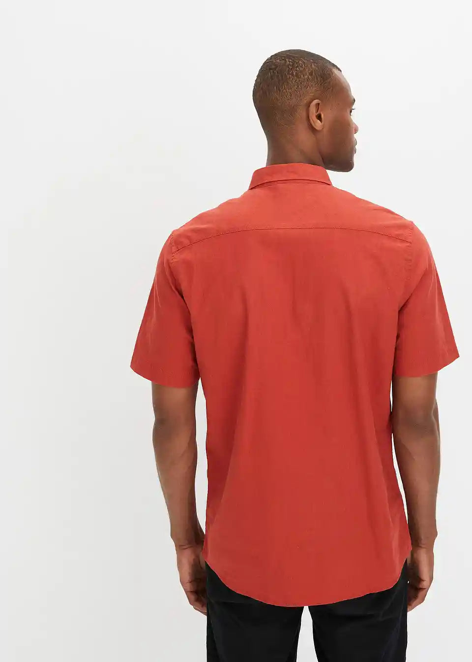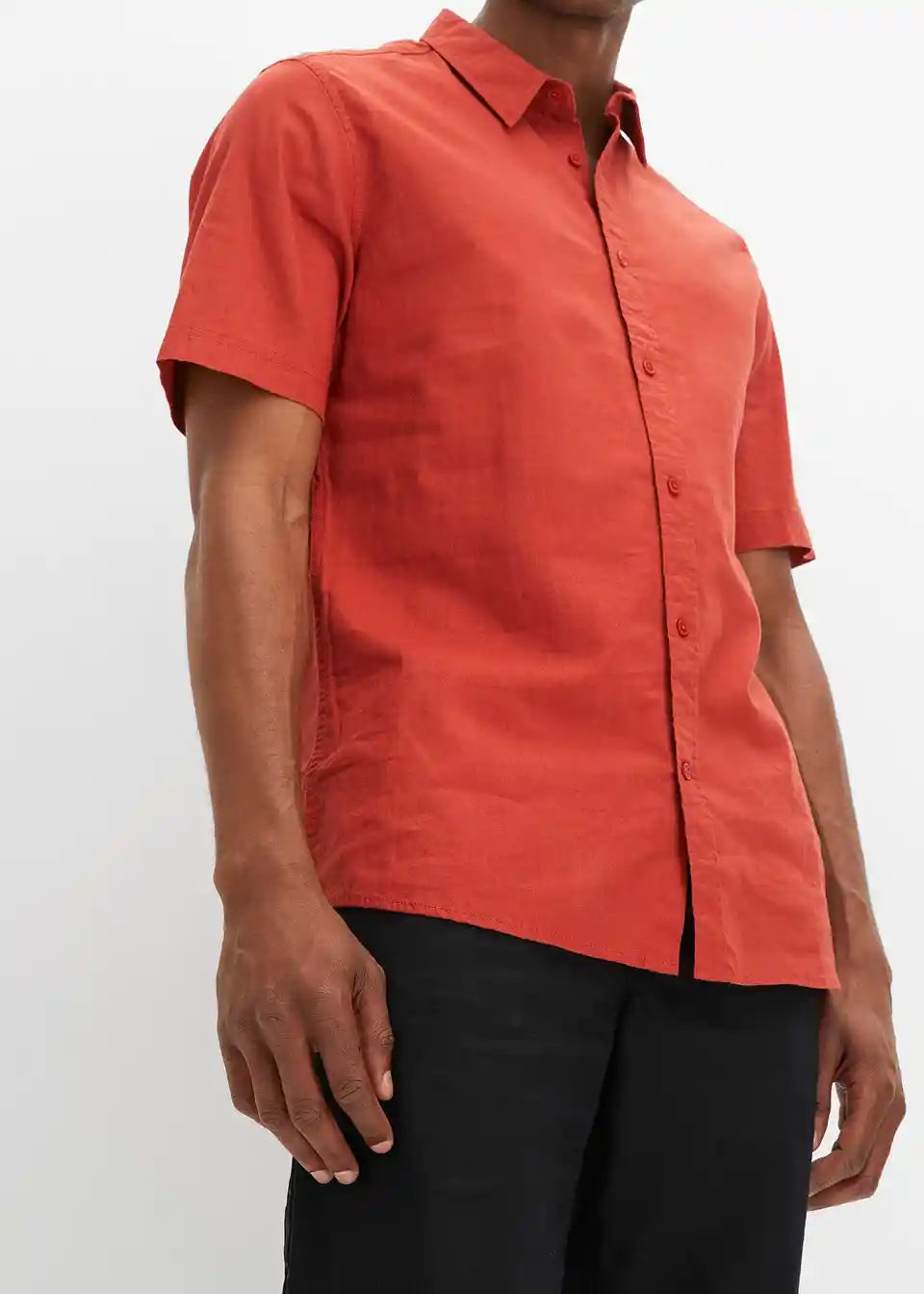 Muška košulja s kratkim rukavima u mješavini lana i pamuka.