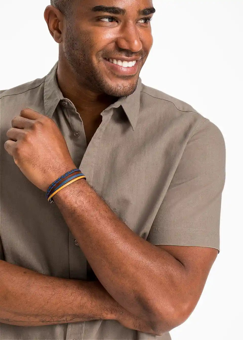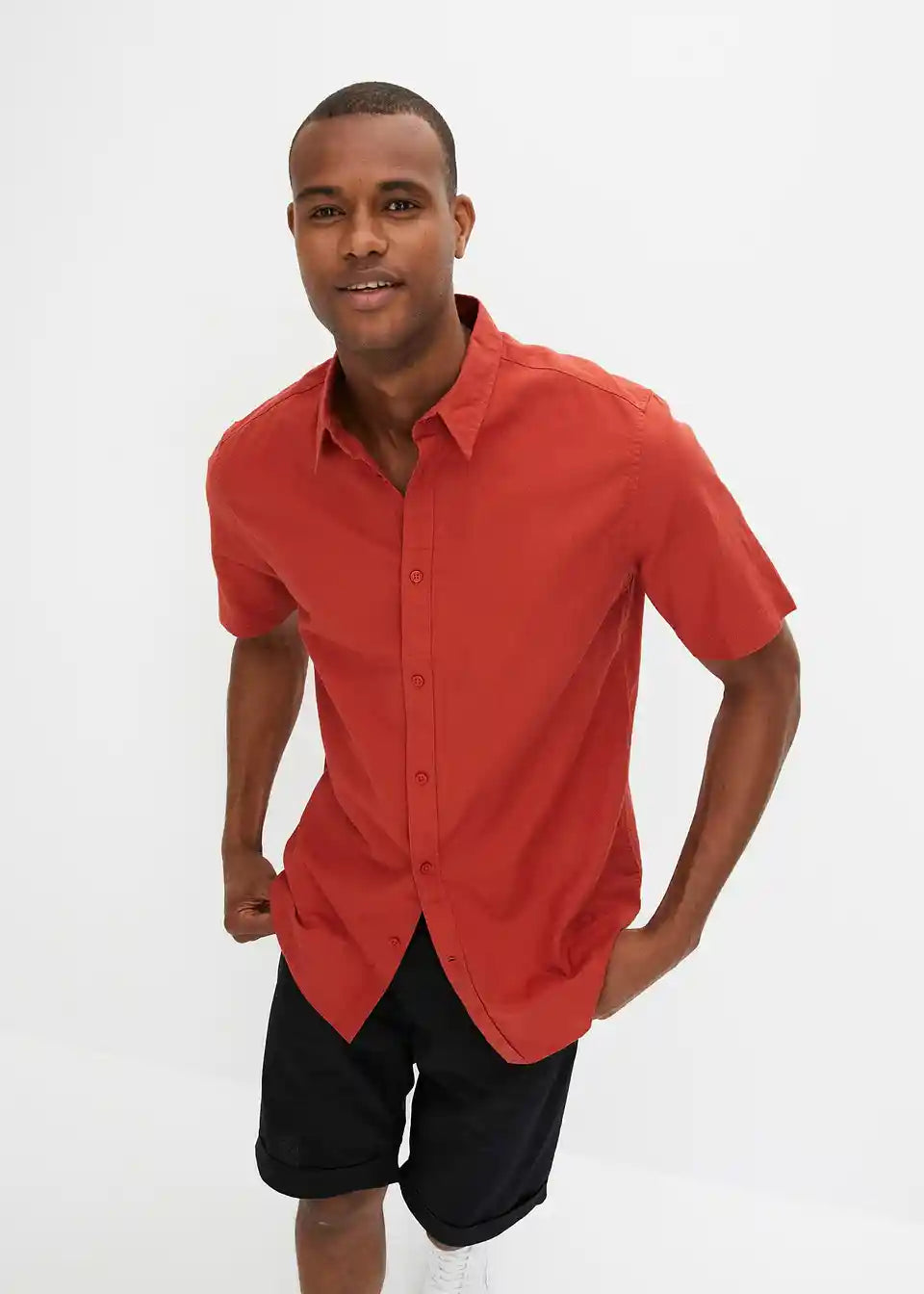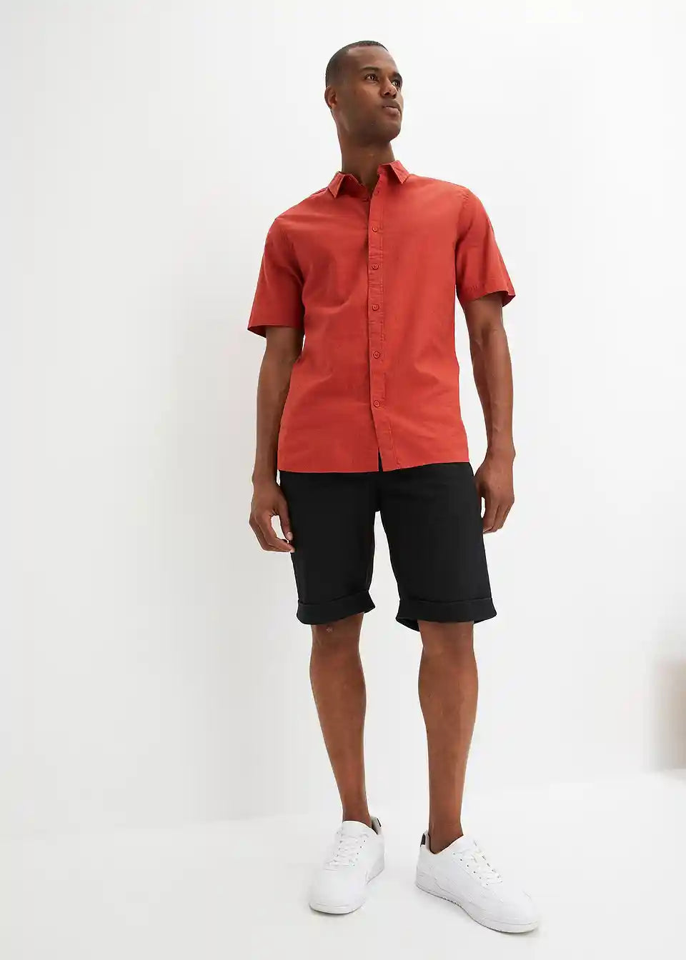 Muška košulja s kratkim rukavima u mješavini lana i pamuka.