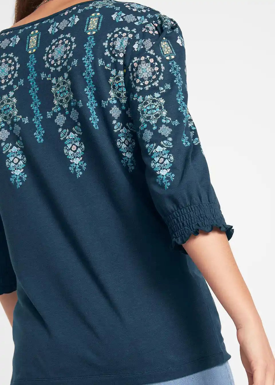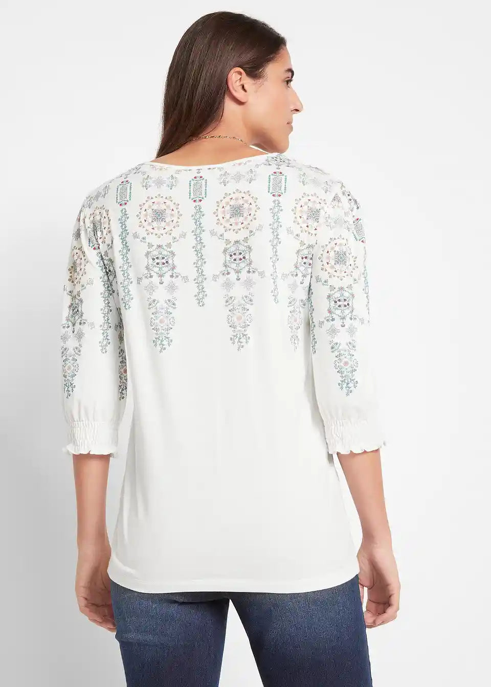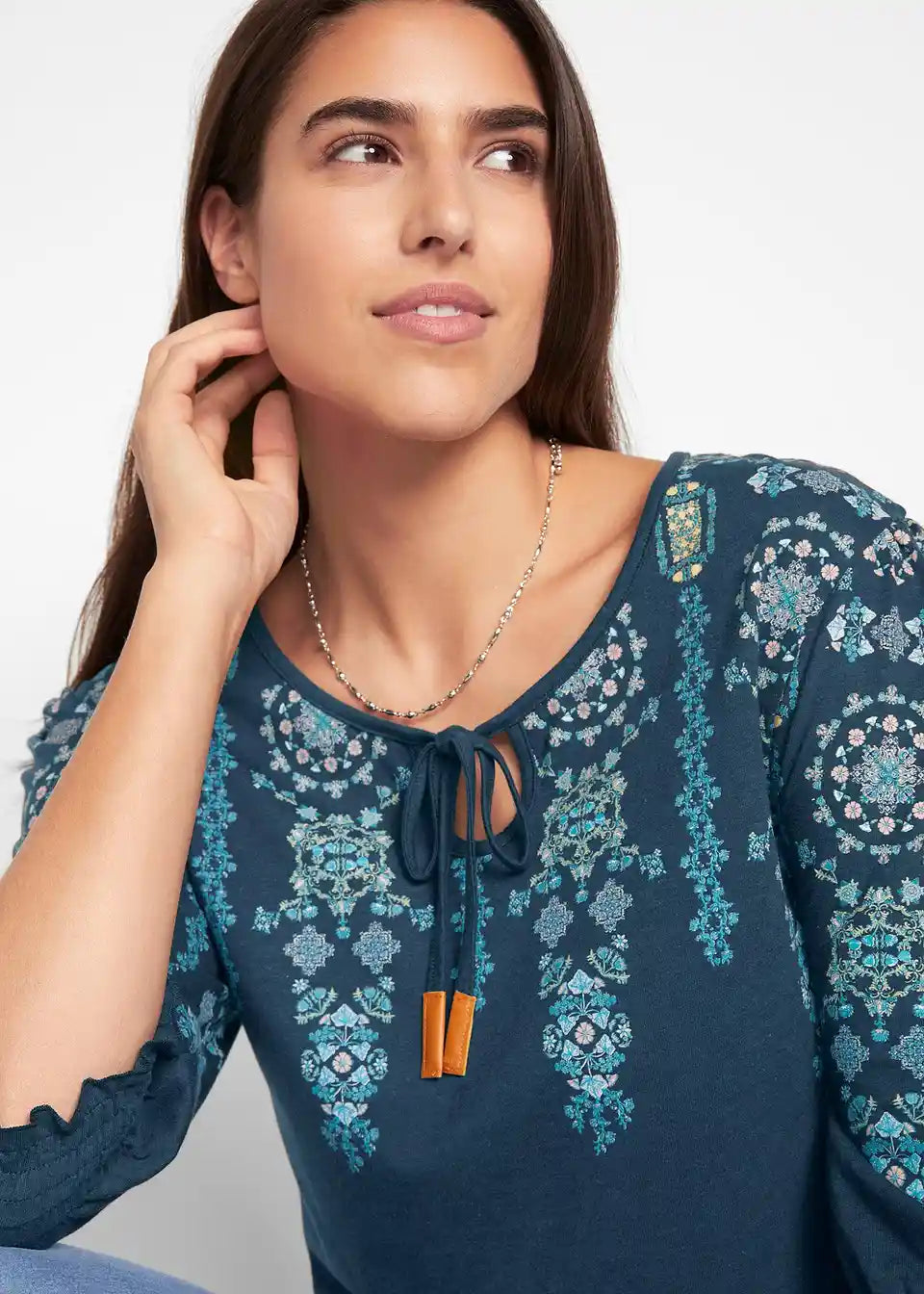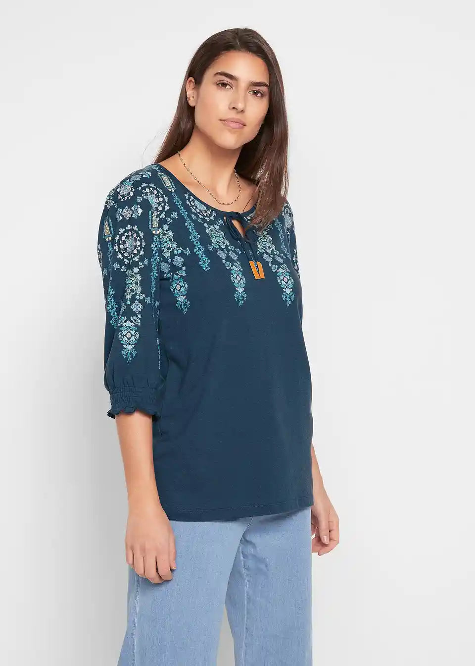 Tunika an sich schön von Farbgebung und Druck... jedoch liegt sie enger an vor allem im Brustbereich... daher leider zurück. Vielleicht das nächste Mal eine Größe hoch