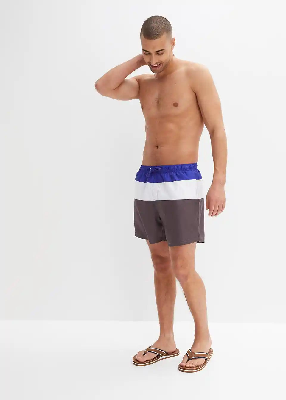 Atraktivne kupaće hlače za muškarce osvajaju ne samo modernim izgledom već i udobnošću. Elastični pojas nudi dodatnu udobnost, posebno tijekom sportskih aktivnosti. Kontrastna vezica omogućuje dodatno podešavanje širine. Osim bočnih džepova, model ima i mali džep za novčiće, a unutrašnji slip od mrežaste tkanine zaokružuje ovaj opušteni model iz bpc kolekcije.