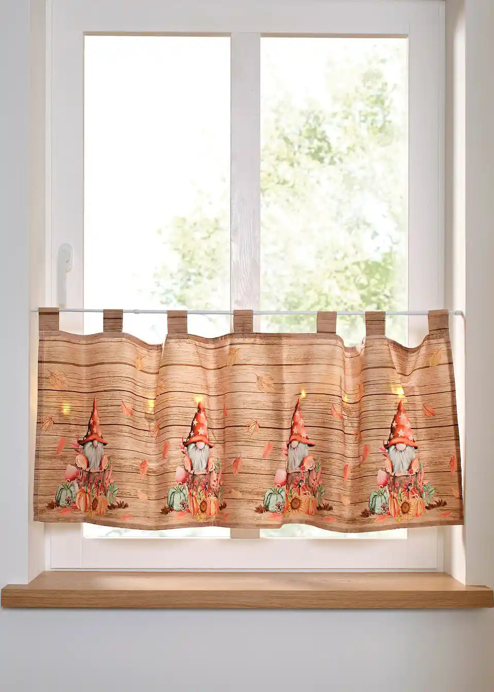 Prekrasna LED-zavjesa za prozor s jesenskim motivom patuljka za osjećaj ugodne jeseni.
