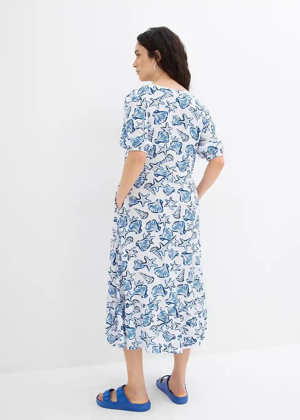 Lepršava haljina od strukturiranog materijala s bočnim džepovima i elastičnim manžetama na rukavima