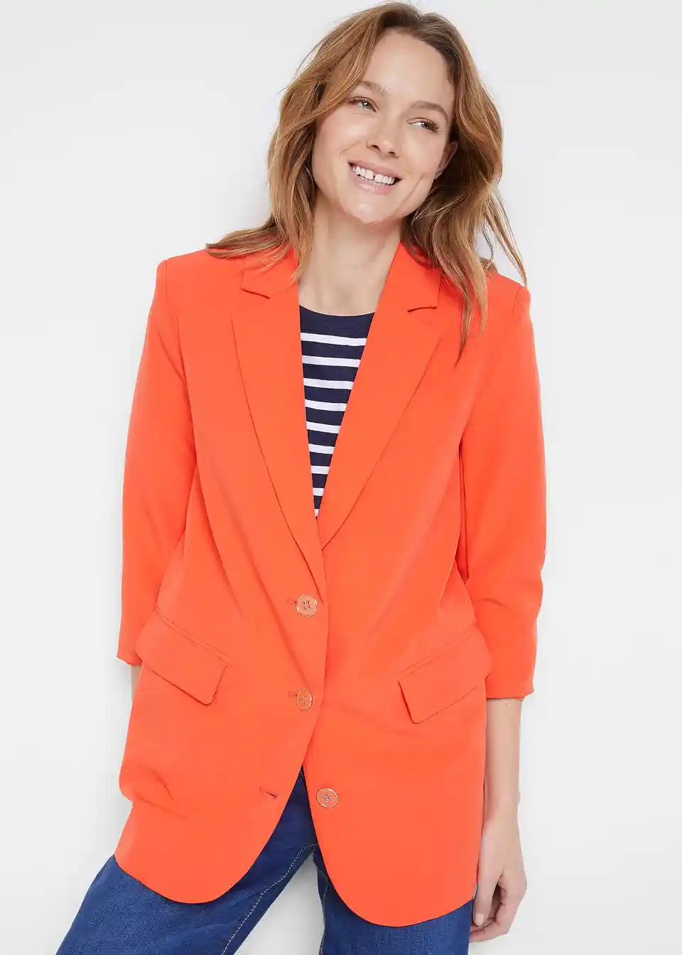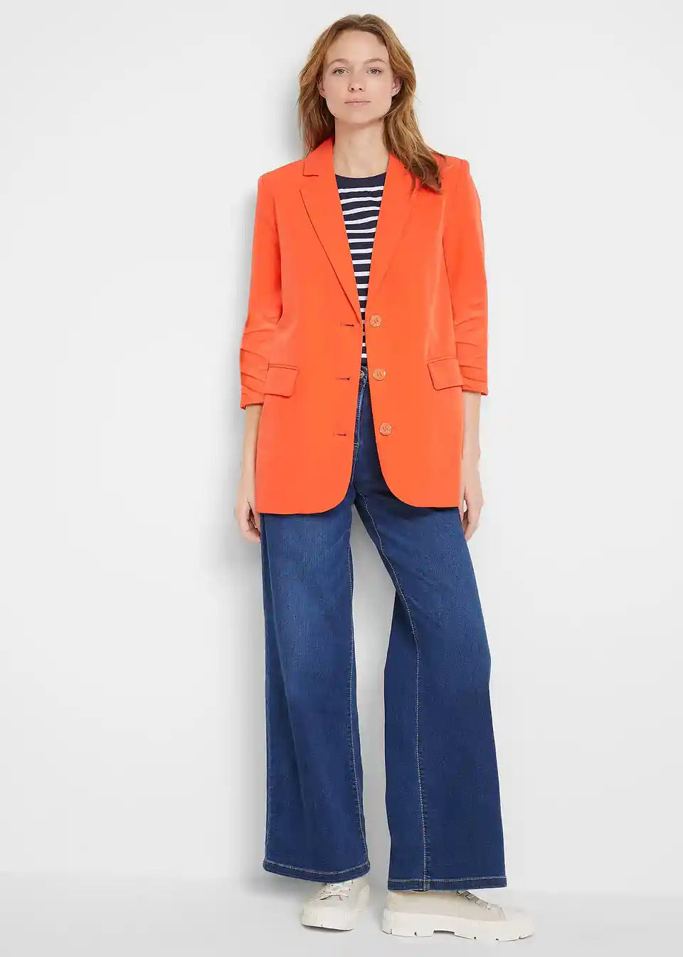 Ravno krojen Long-Blazer s modernim nabiranjem na rukavu