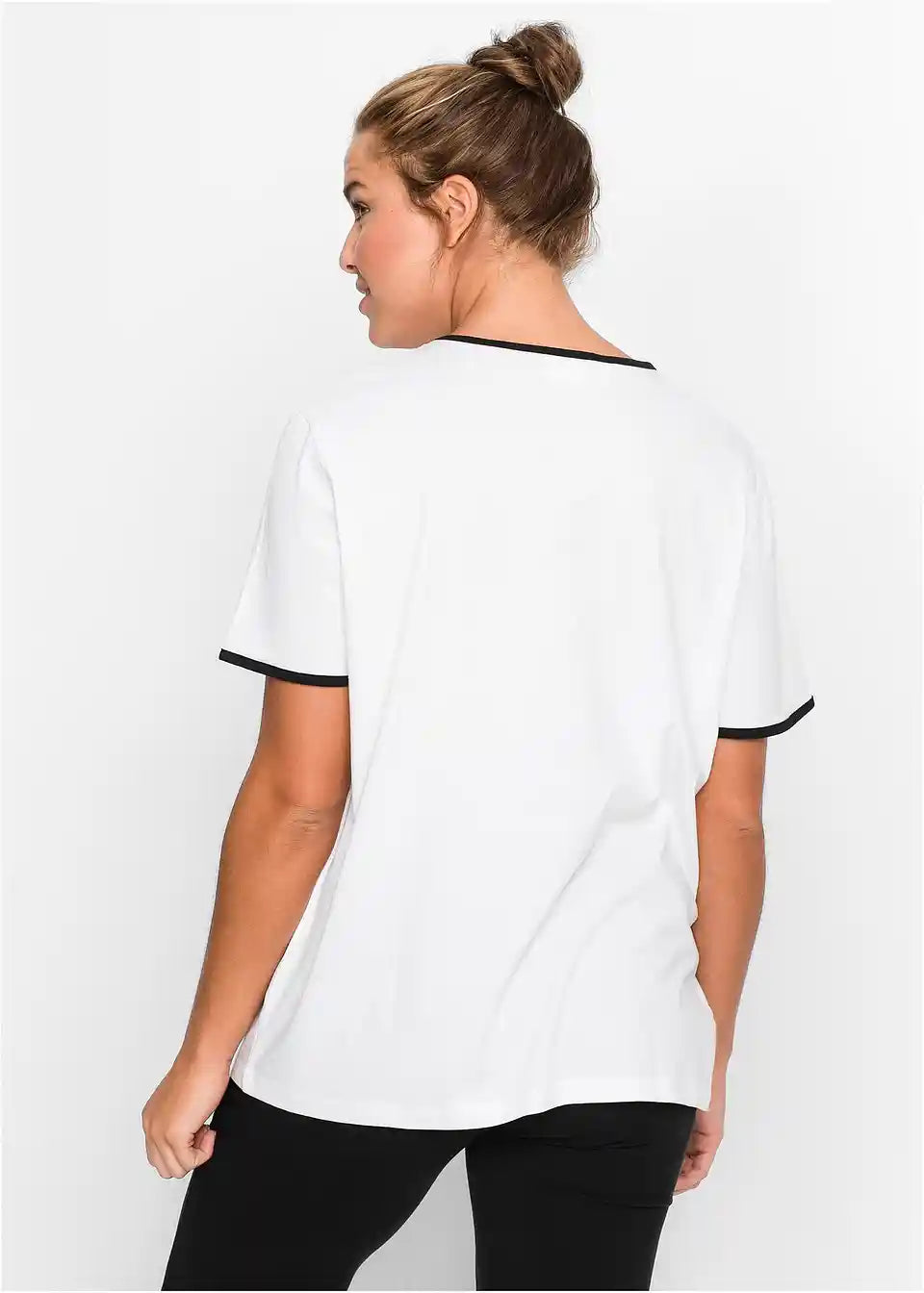 Ovaj Long-Shirt marke bpc dolazi u povoljnom pakiranju od dva komada - jedna majica je s uzorkom, a druga je jednobojna. Udobna majica idealna je za opuštanje u slobodno vrijeme. Krojem koji laska figuri i ugodnim materijalom osigurava ugodan osjećaj nošenja. Vizualno oduševljava poludugim rukavima, s kontrastnim obrubom na okruglom izrezu i završetcima rukava.