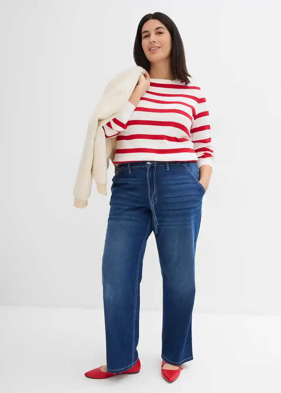 Komotne traperice ravnog kroja s visokim komotnim strukom