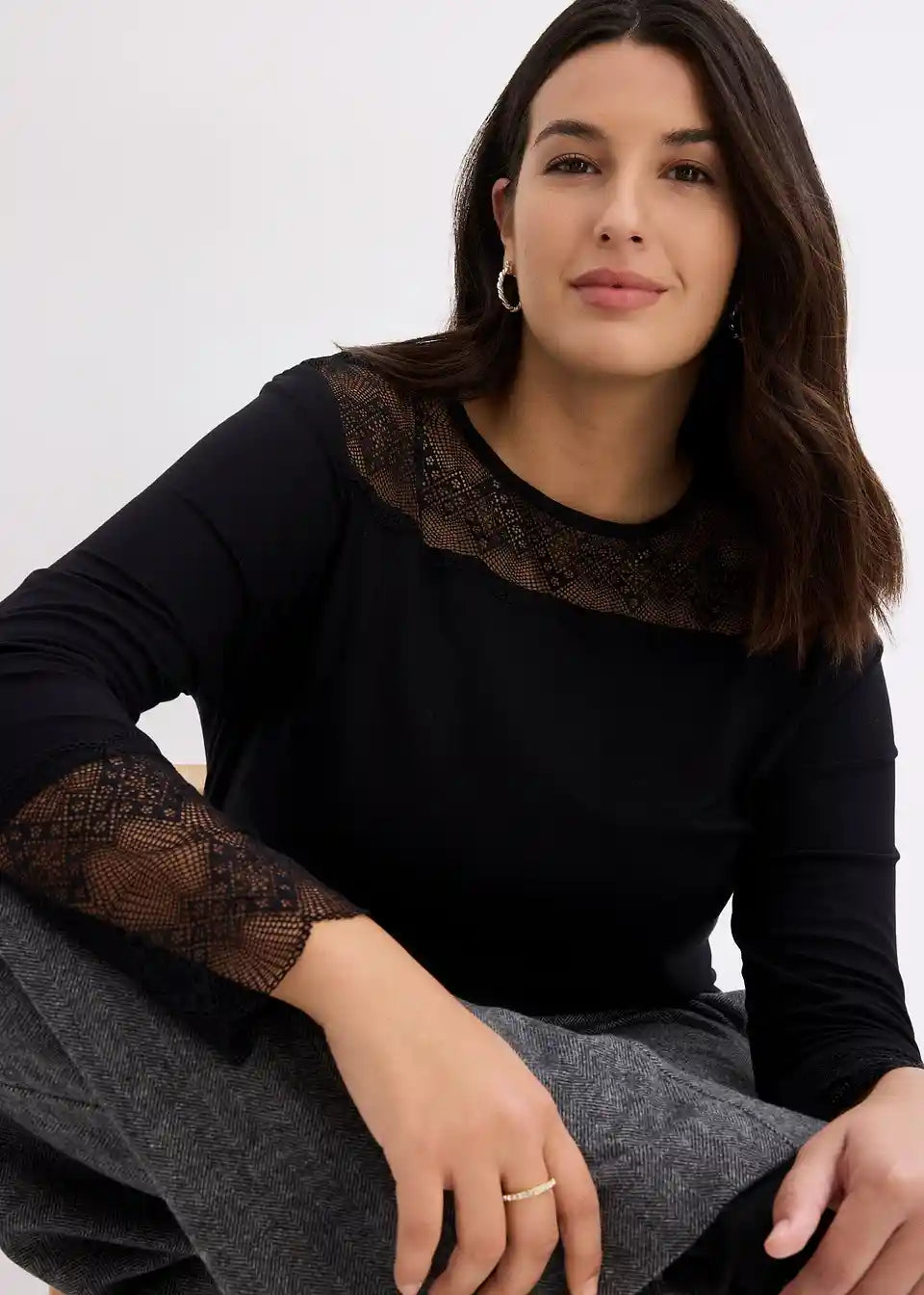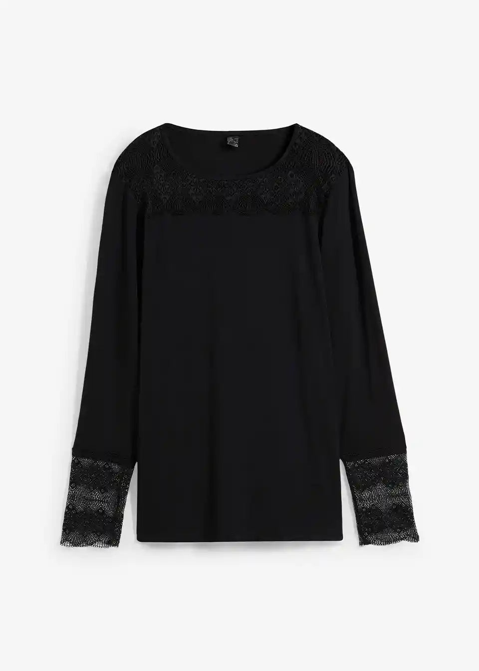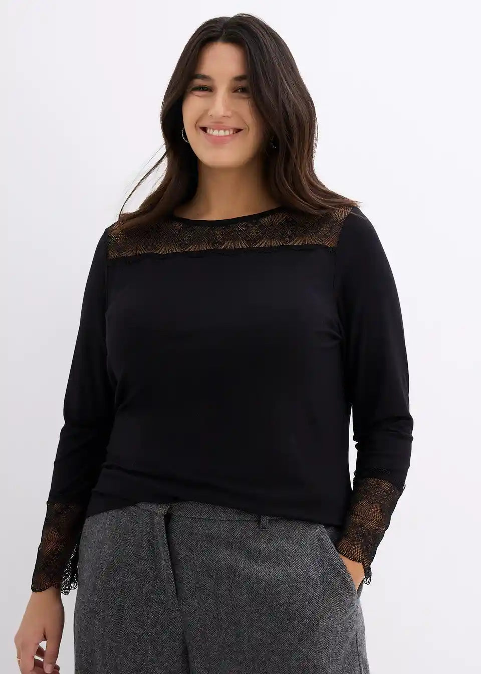 Majica dugih rukava s ukrasnim umetcima od čipke