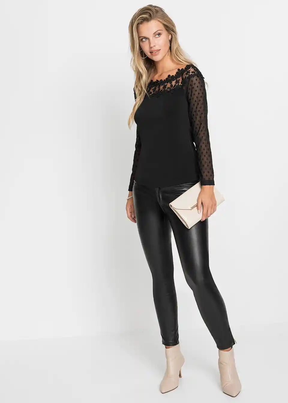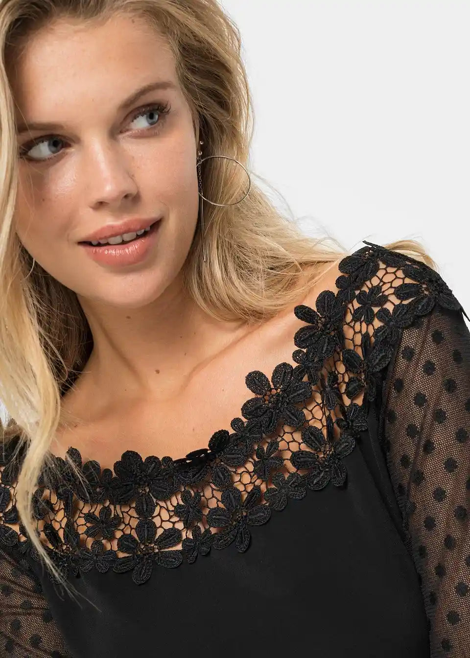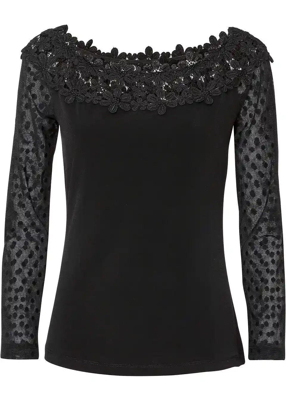 Svestrano majica dugih rukava s atraktivnom čipkom na izrezu i rukavima.