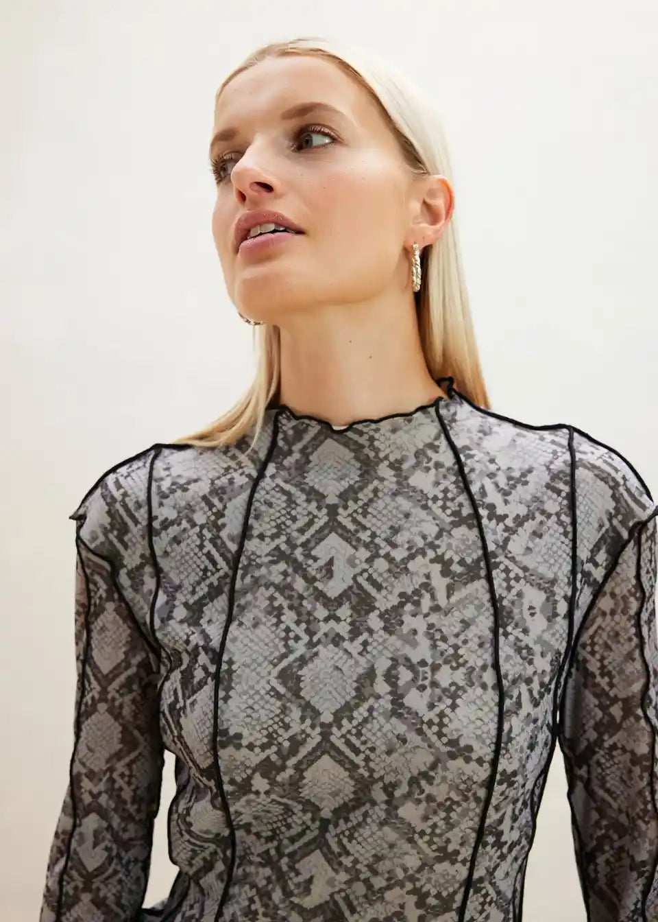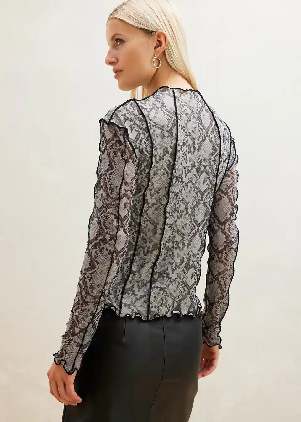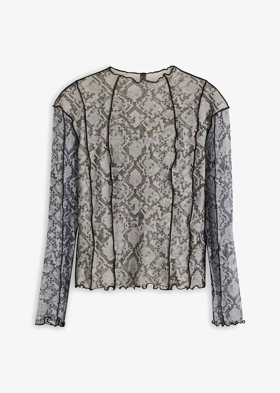 Majica s dugim rukavima od mesh materijala s uzorkom zmije koja naglašava figuru