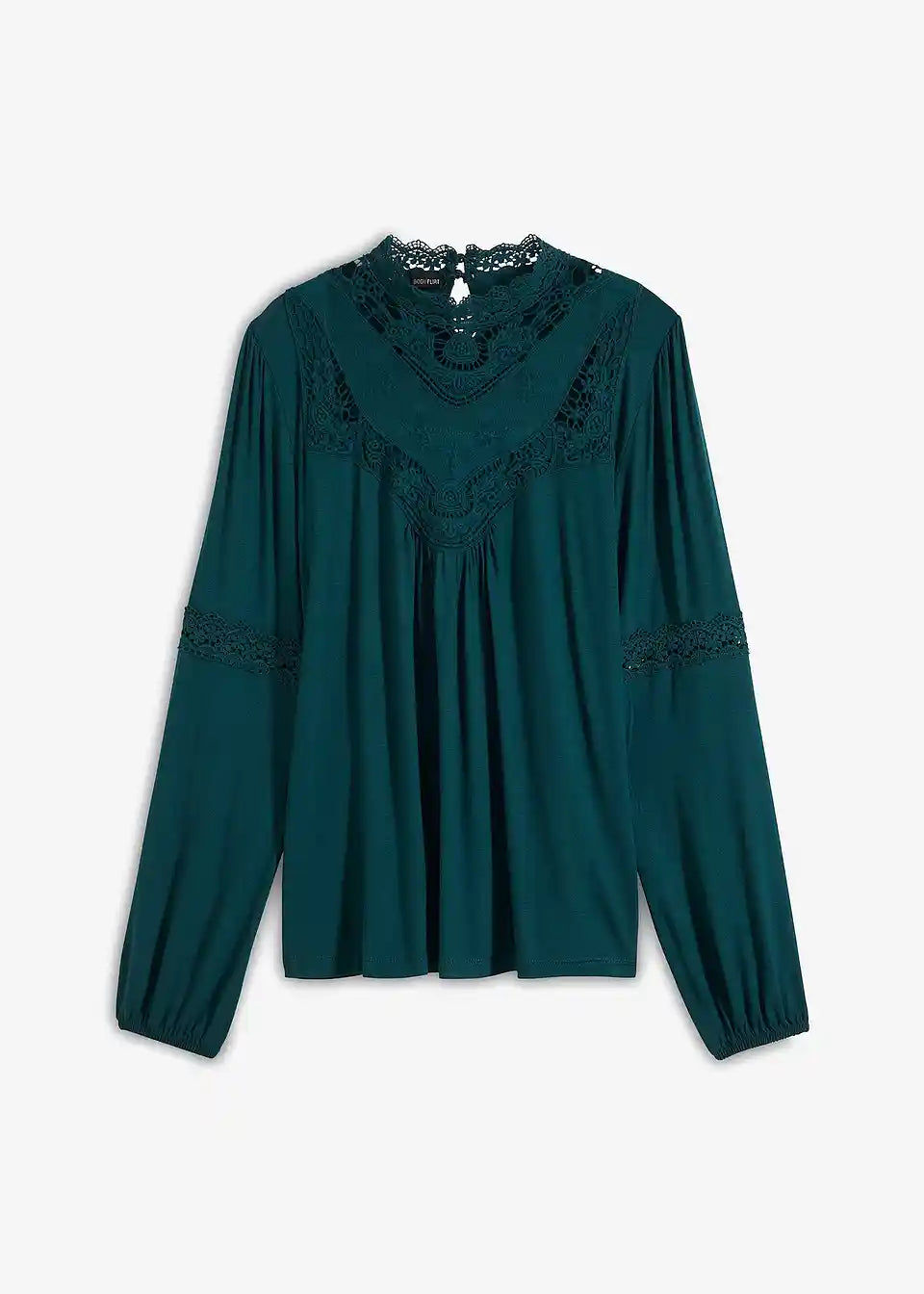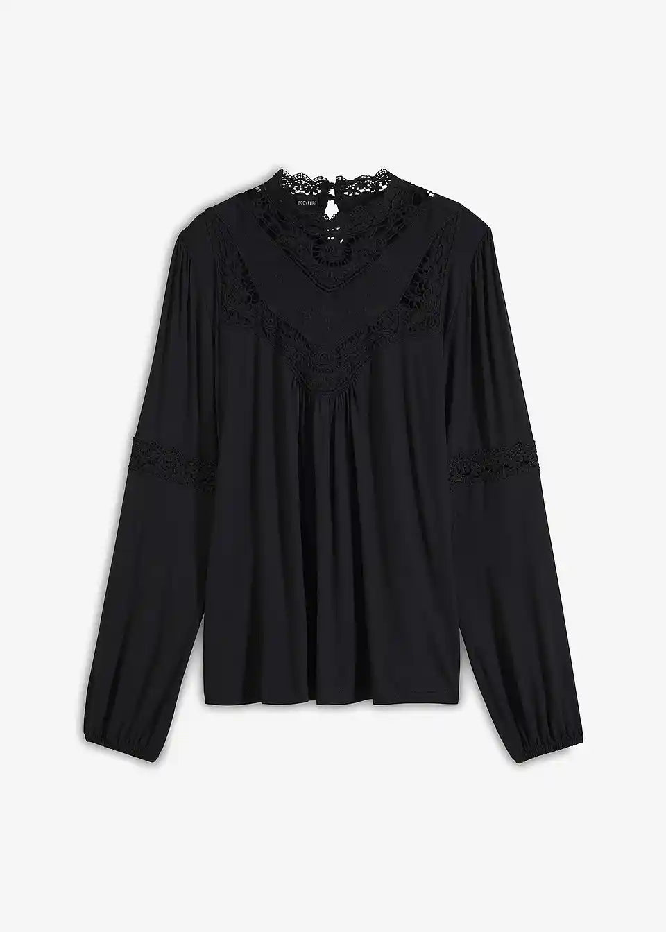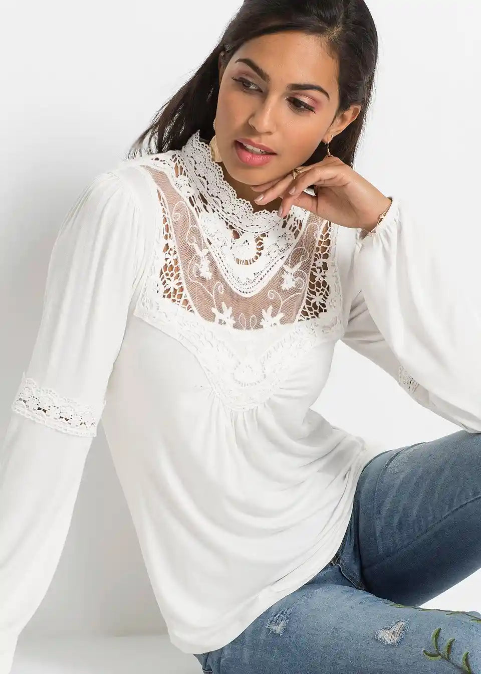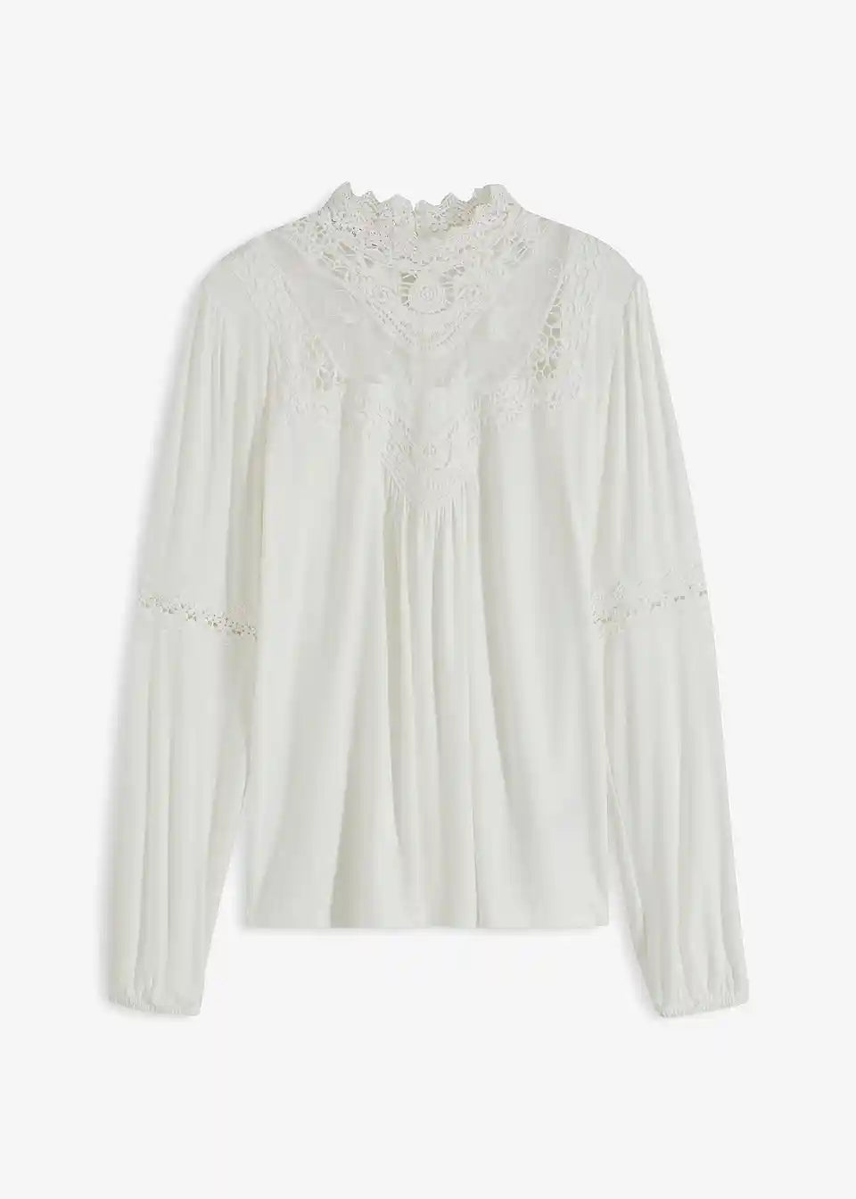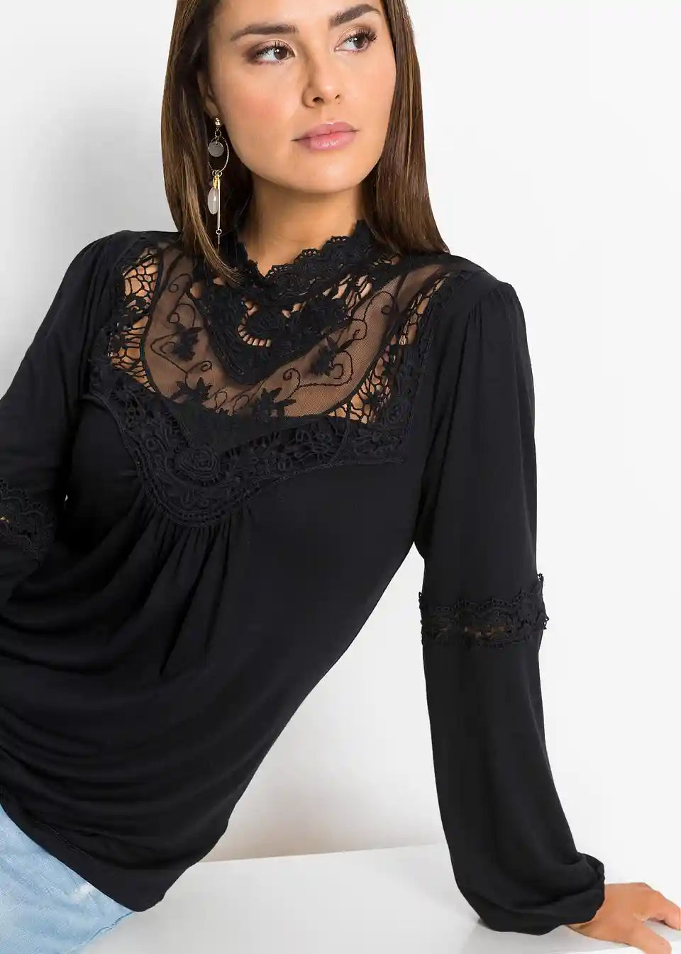 Čarobna bluza-majica s čipkastim detaljima i visokim ovratnikom