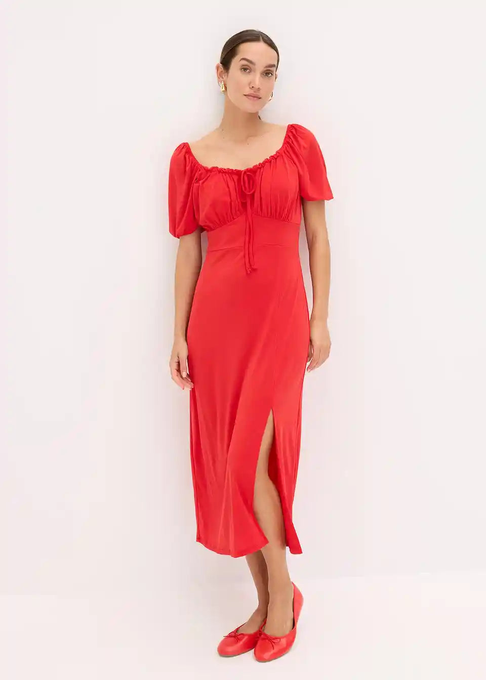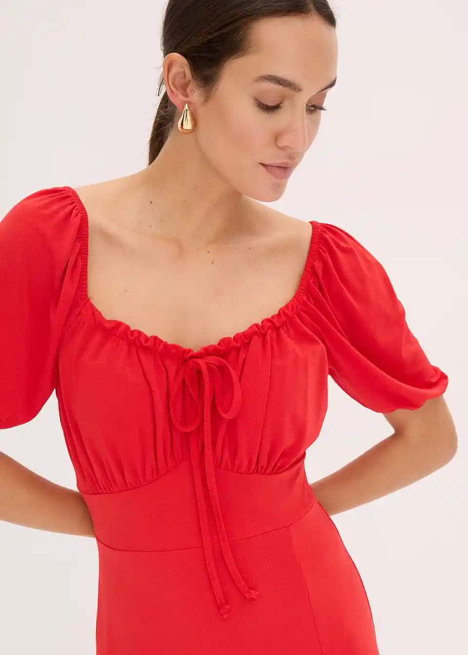 Moderna haljina s naborima na izrezu