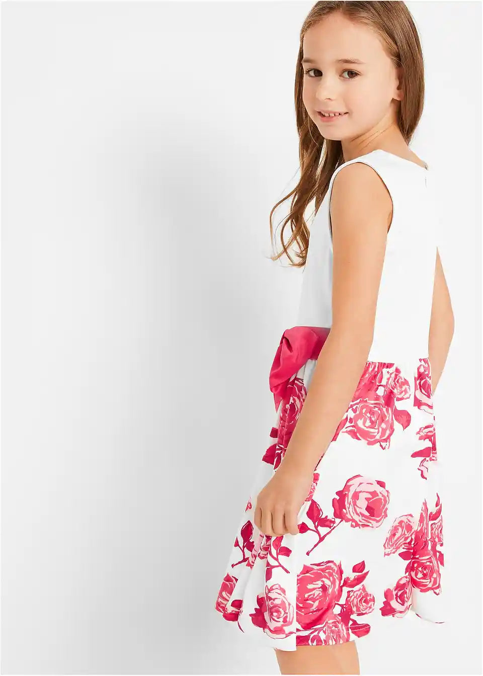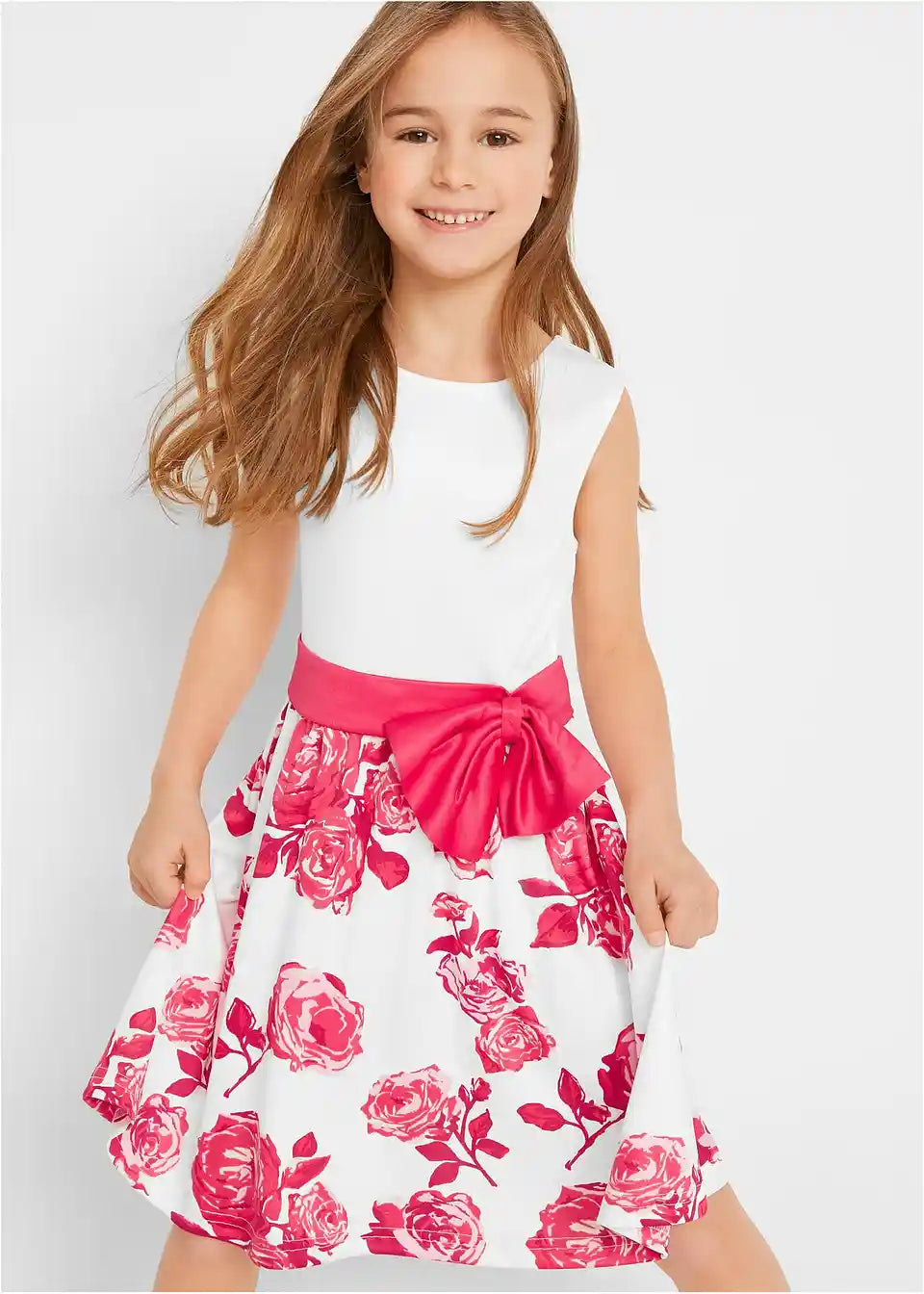 Čarobna svečana haljina za djevojčice s cvjetnim uzorkom na suknji. Velika mašna u struku pravi je privlačnik pogleda!
