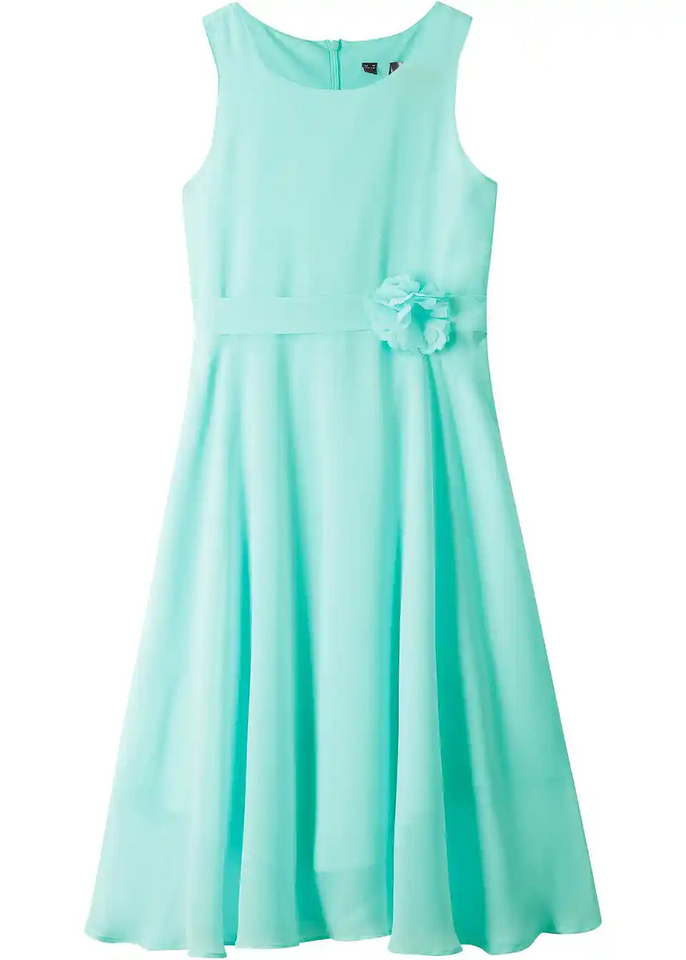 Šarmantna haljina sa satenskom trakom i velikom aplikacijom. Izuzetno lijepa ljeti i tijekom prijelaznog razdoblja za svečane dane!