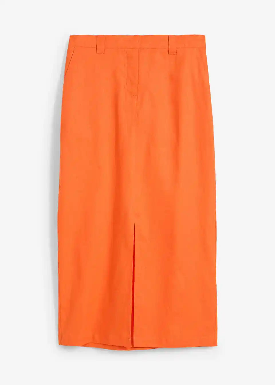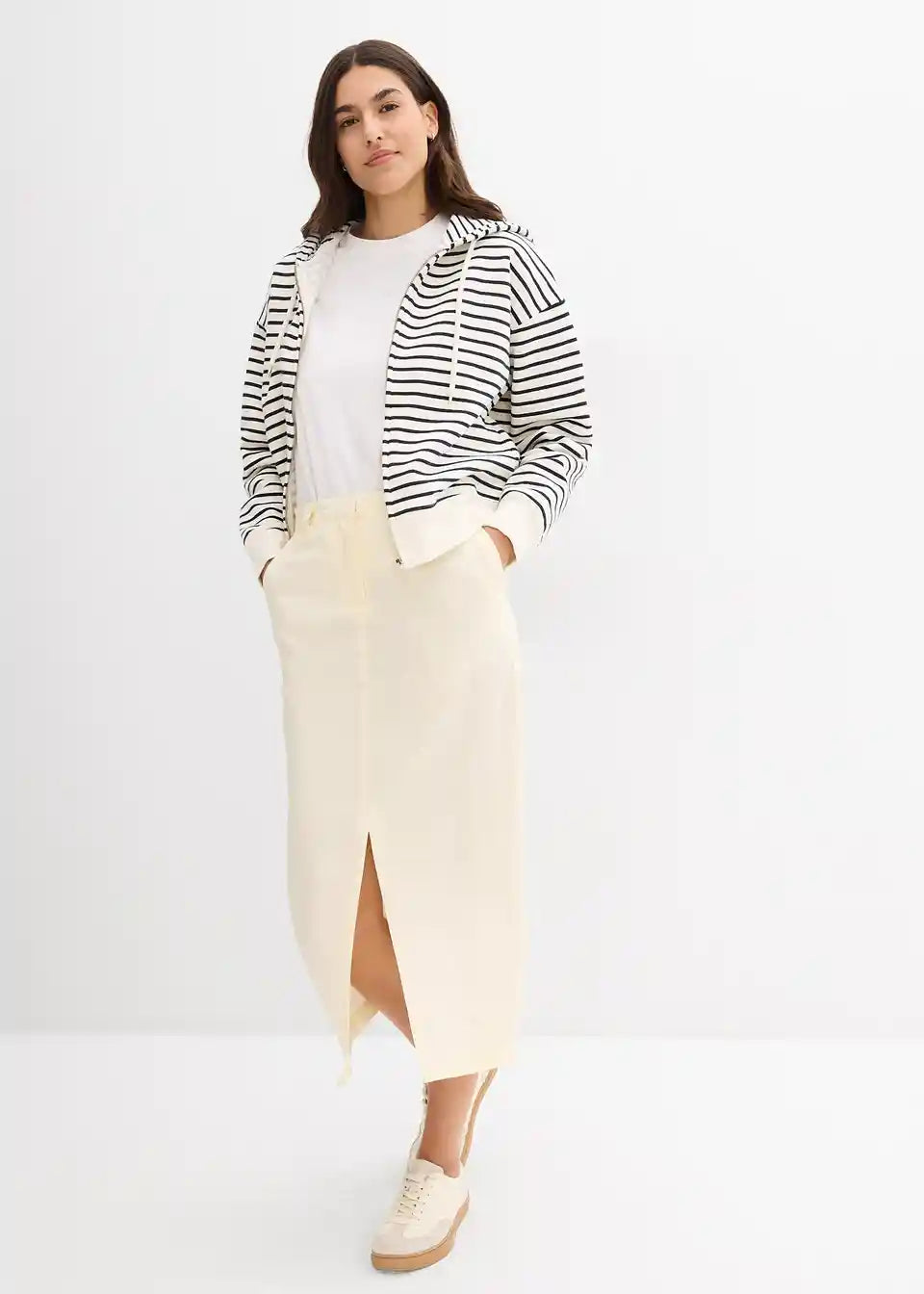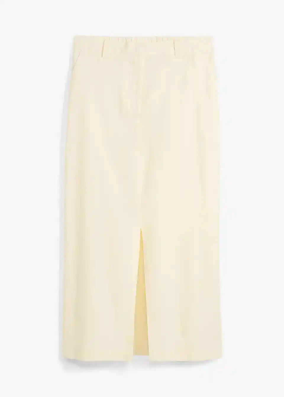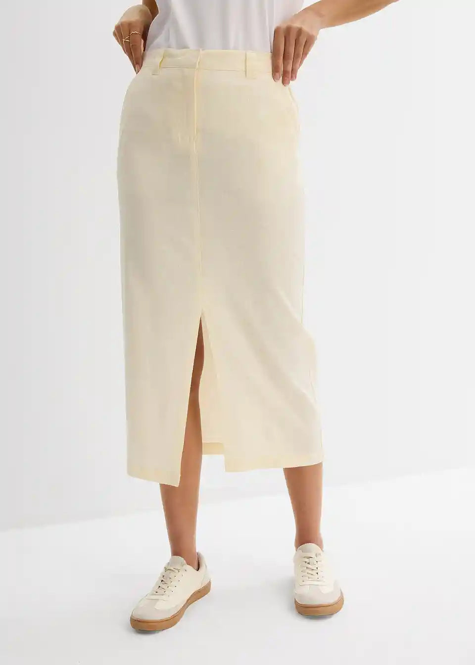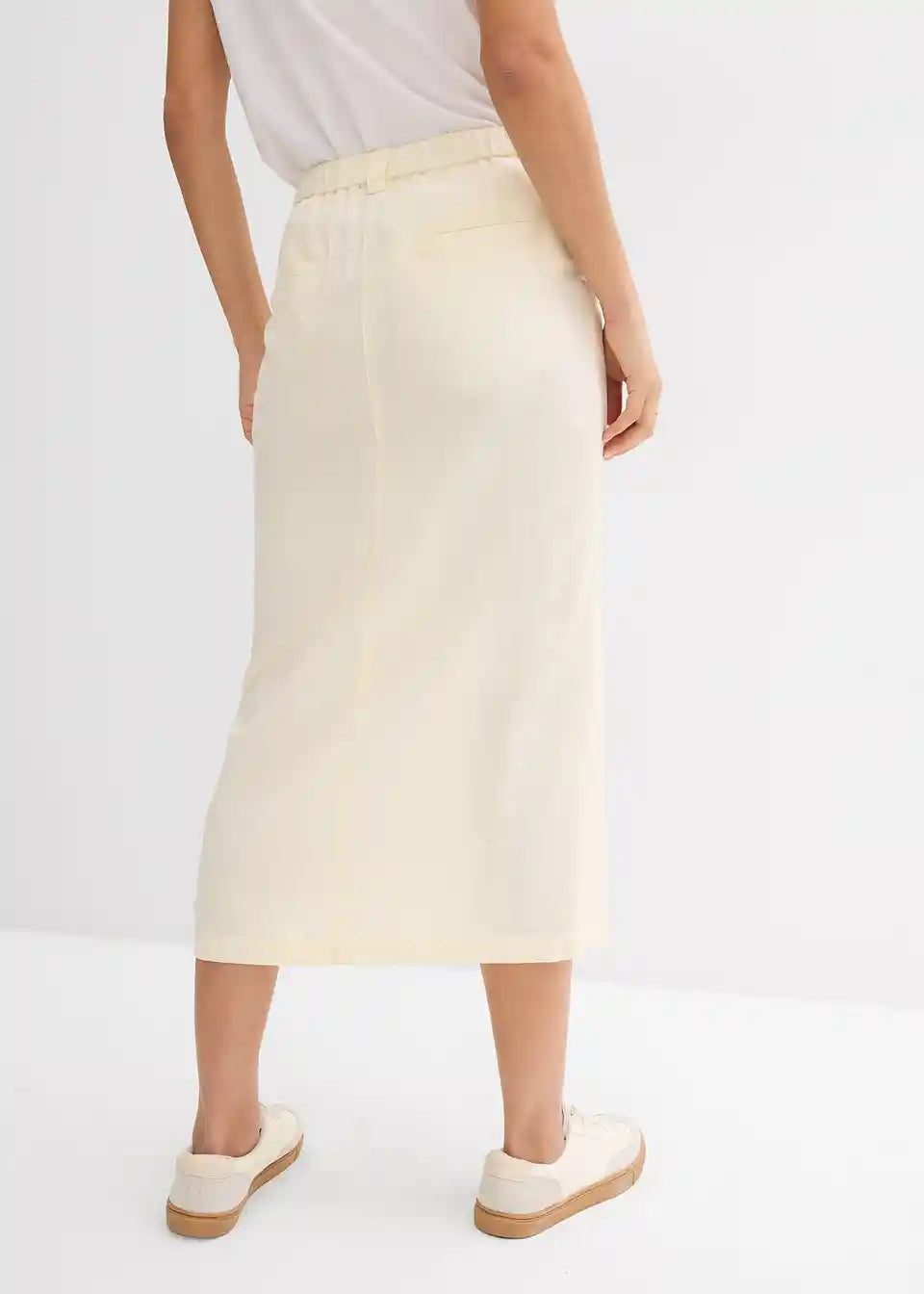 Midi suknja s prorezom sprijeda, džepovima i elastičnim pojasom straga