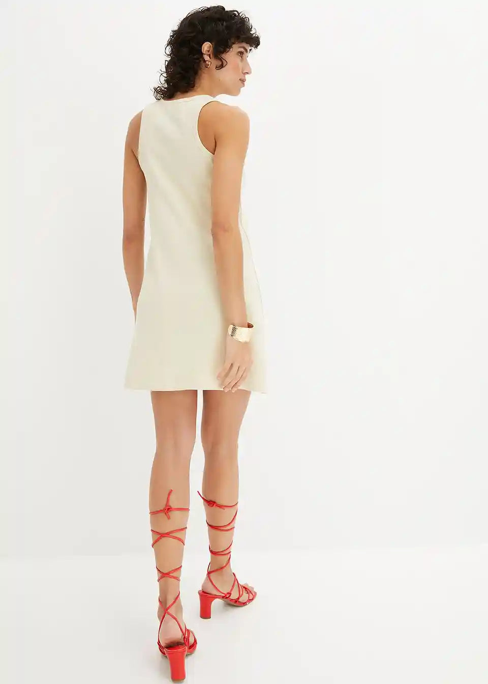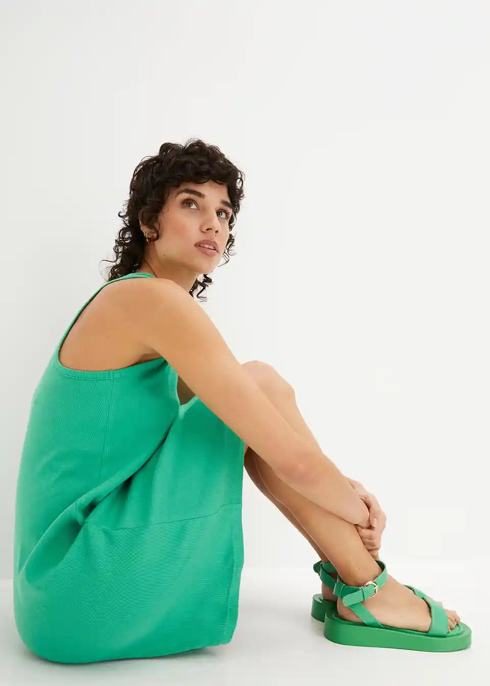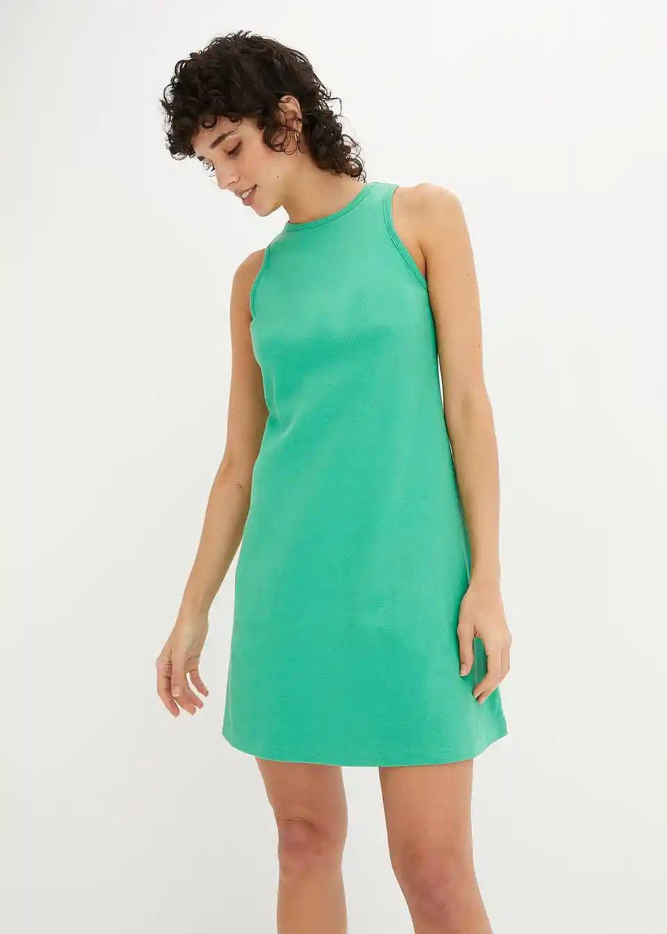 Eher ein verlängertes Top als ein Kleid. Gerippte Baumwolle. Gute Qualität. Zum reduzierten Preis okay.