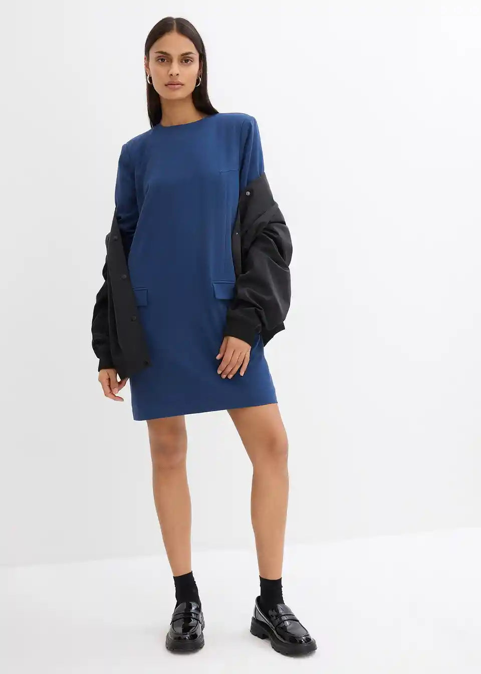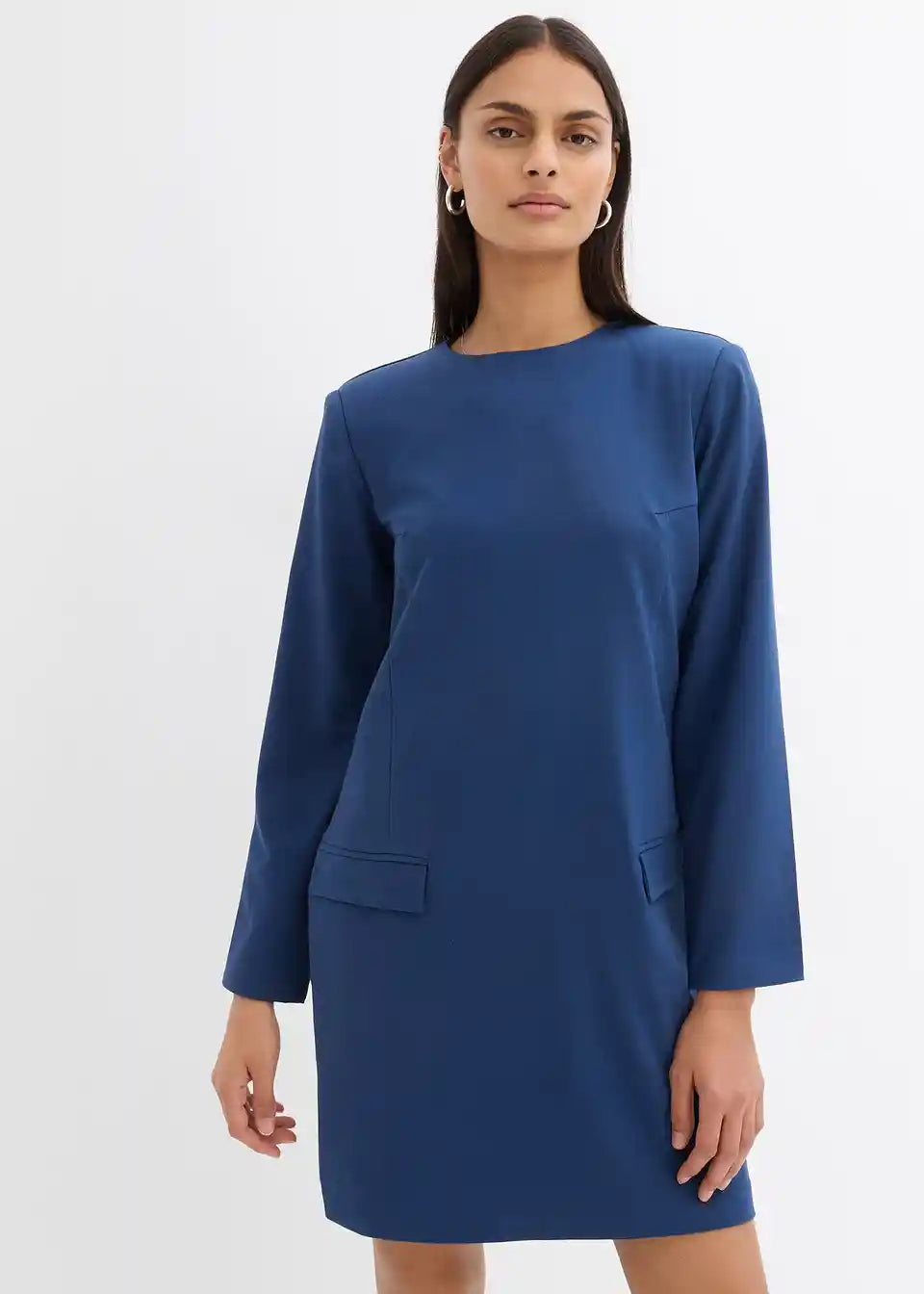 Elegantna minihaljina s podstavljenim ramenima, krojnim šavovima i lažnim džepovima sprijeda