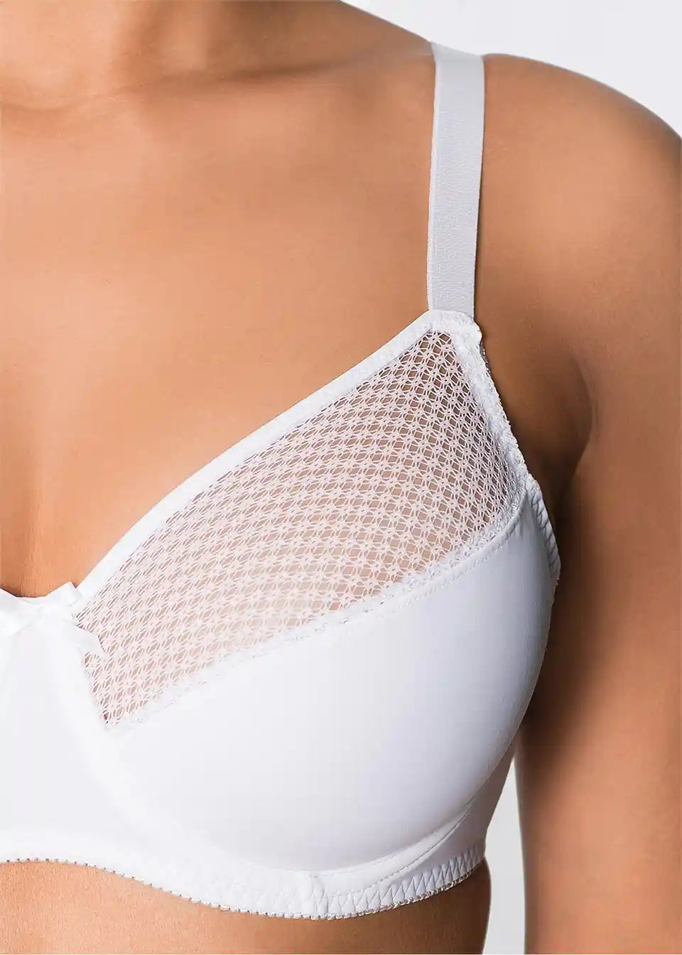 Suptilan Minimizer GRUDNJAK iz aktualne kolekcije brenda bpc selection vizualno smanjuje poprsje za jednu veličinu košarice. Poseban kroj pomiče volumen košarice malo u stranu i spljošti prema dolje kako bi se postigao željeni efekt. Neprozirni GRUDNJAK se zatvara klasičnim kopčanjem s kukicama i očicama na leđima, a opseg se može prilagoditi u tri stupnja. Kod većih košarica, naramenice su odgovarajuće šire, što pruža izvrsnu potporu.
