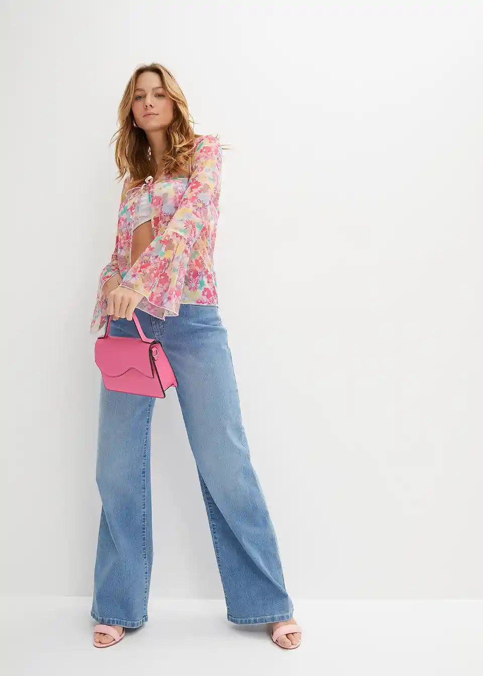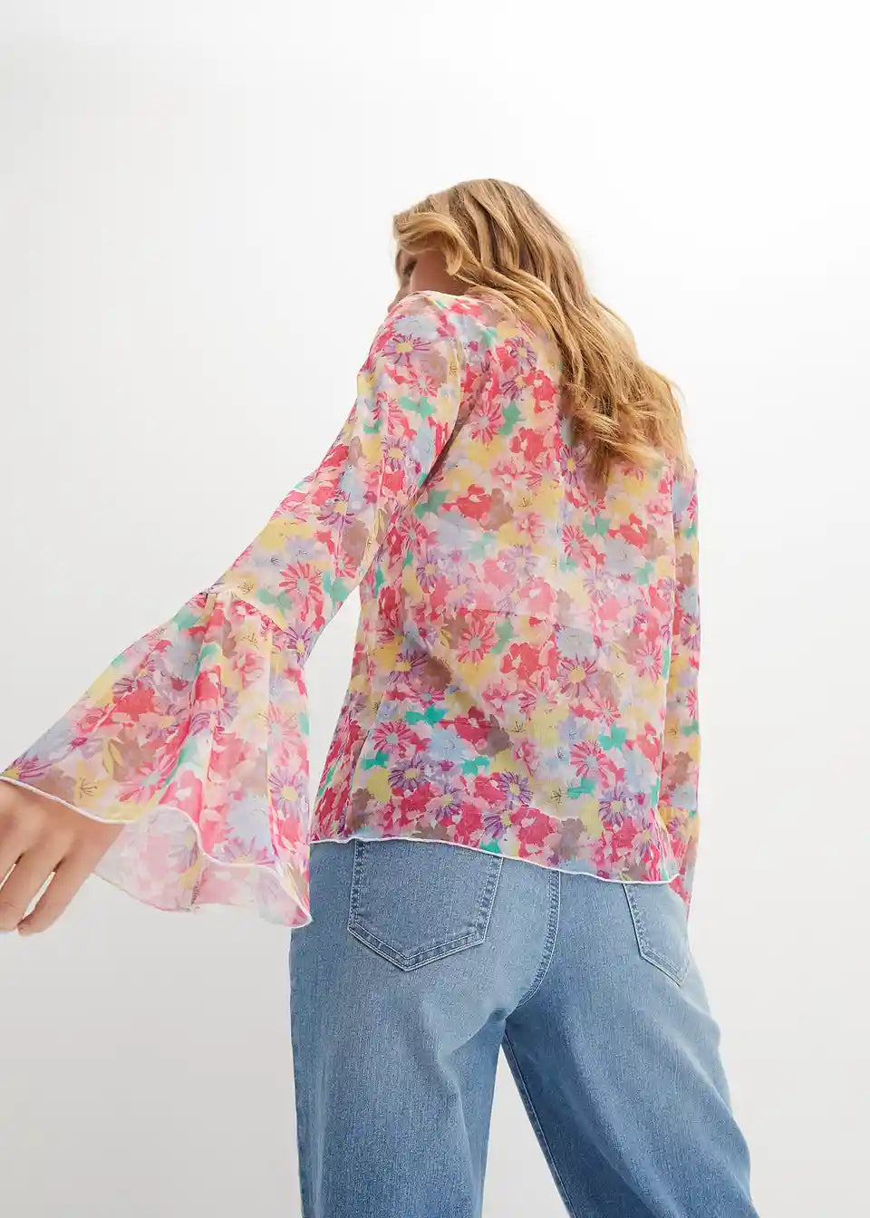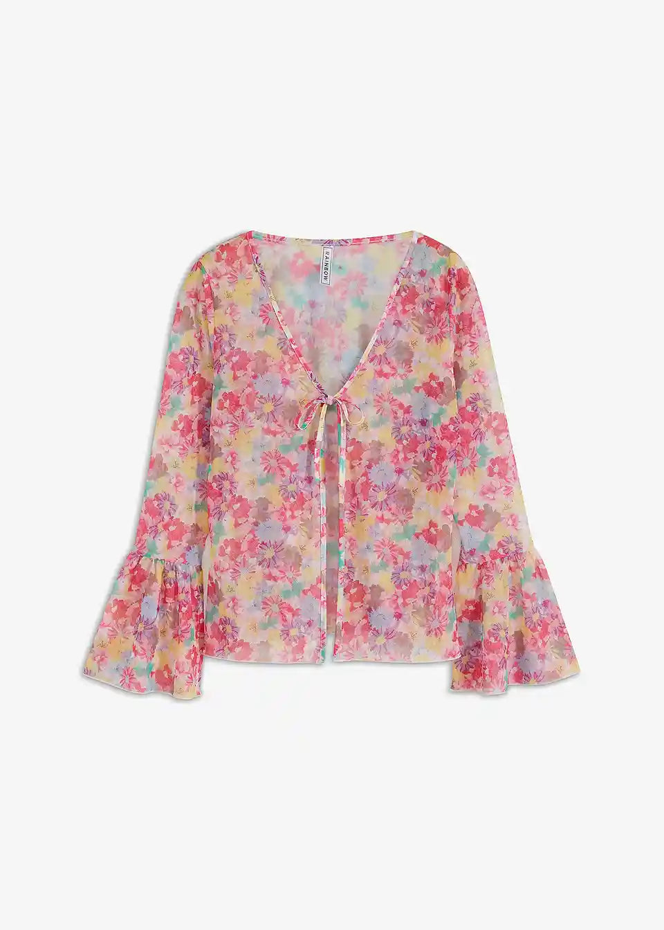 Trendi mrežasta majica-jakna s vezicom i širokim rukavima