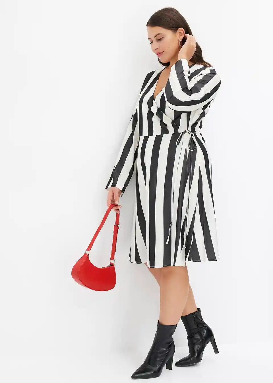 Prekrasna haljina s prugama s V-izrezom i na preklop