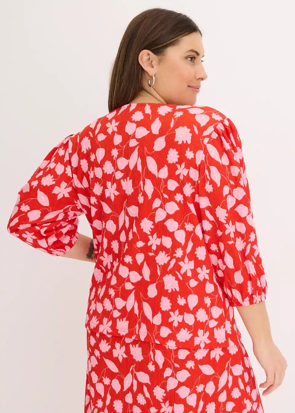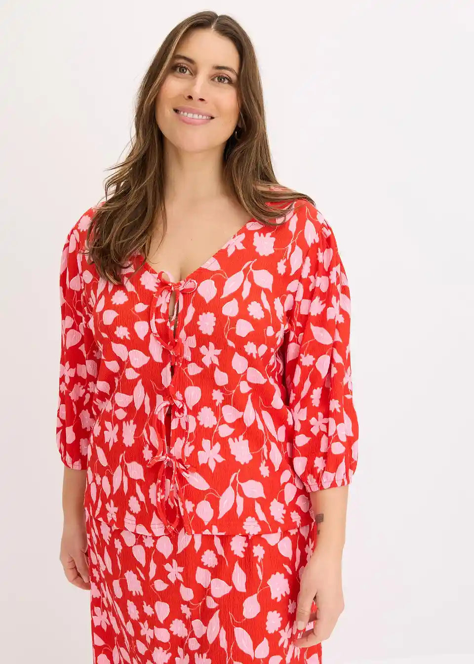 cvjetno otiskana majica od strukturiranog jerseya s vezicama sprijeda