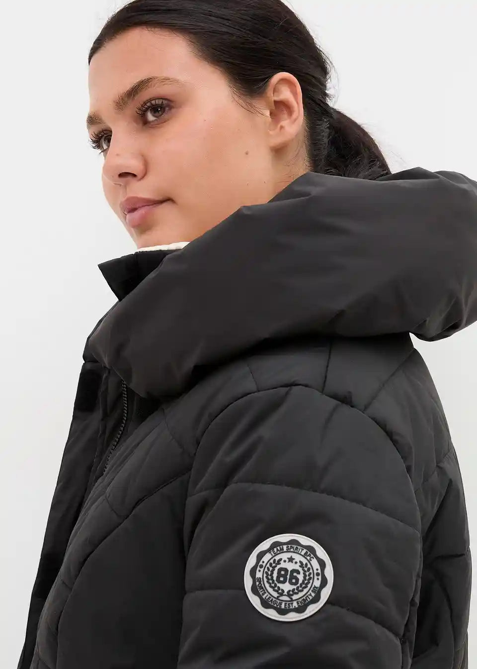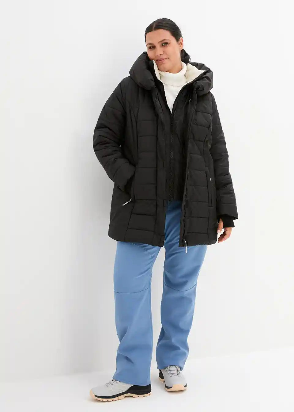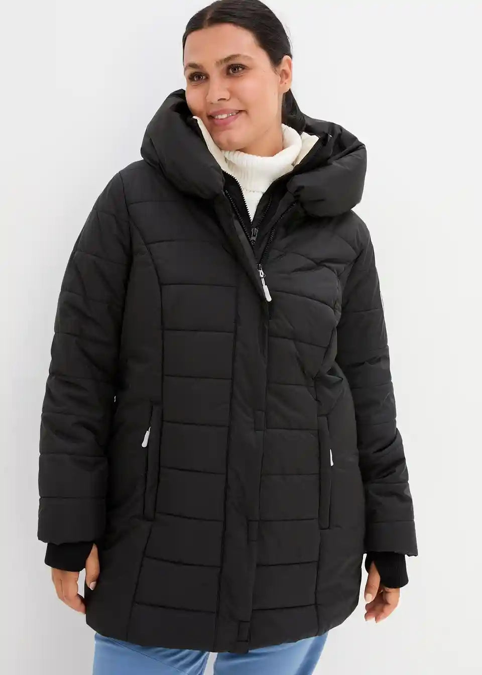 Ova sportska vanjska prošivena jakna u 2-u-1 izgledu oduševljava dobrim komforom. Model s prikrivenim dvosmjernim patentnim zatvaračem i izrazito visokim ovratnikom je otporan na vjetar i odbija vodu. Prozračna funkcionalna vlakna osiguravaju ugodan osjećaj na koži. Praktični detalji uključuju dva bočna džepa s patentnim zatvaračem i unutarnji džep s vođenjem kabela. Atraktivan dvostruki izgled proširene jakne marke bpc dolazi zahvaljujući dodatnoj zaštitnoj traci s patentnim zatvaračem. Prošiveni uzorak, rebraste manžete s rupicama za palac i bočni kontrastni umetci ističu ležerni izgled.