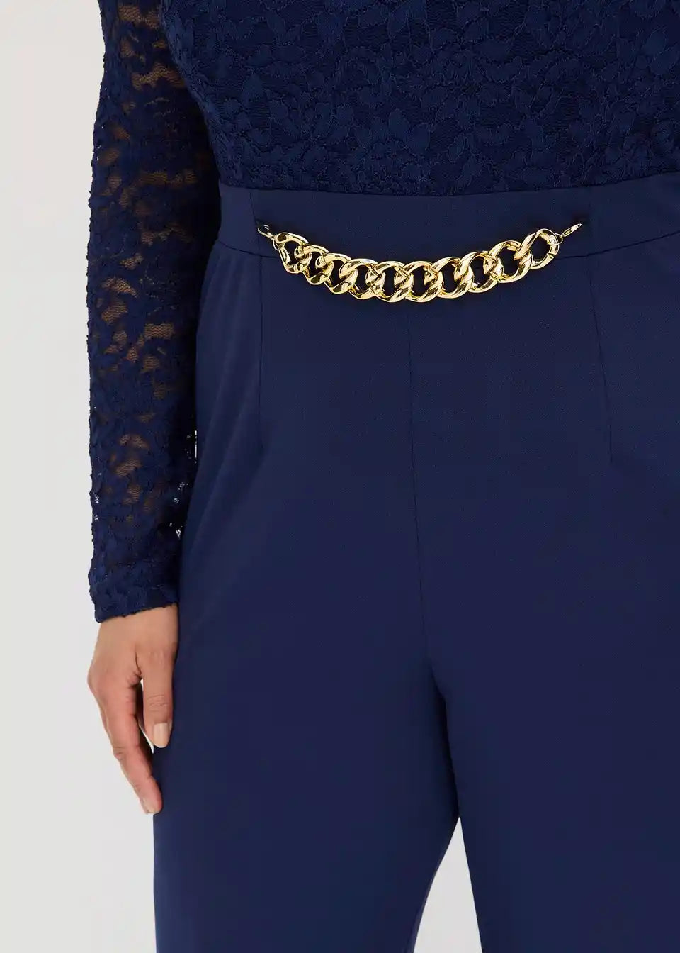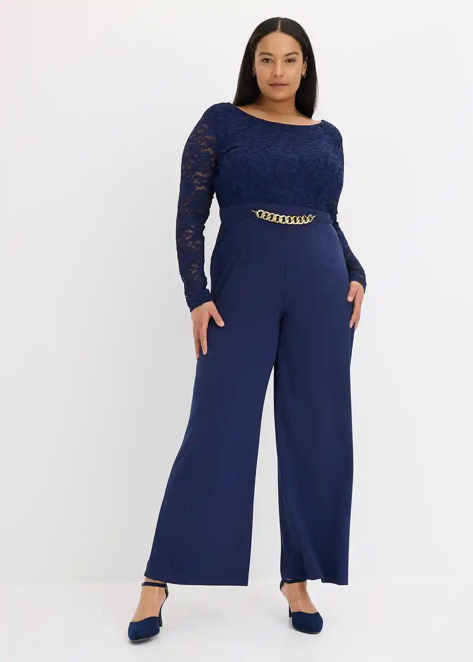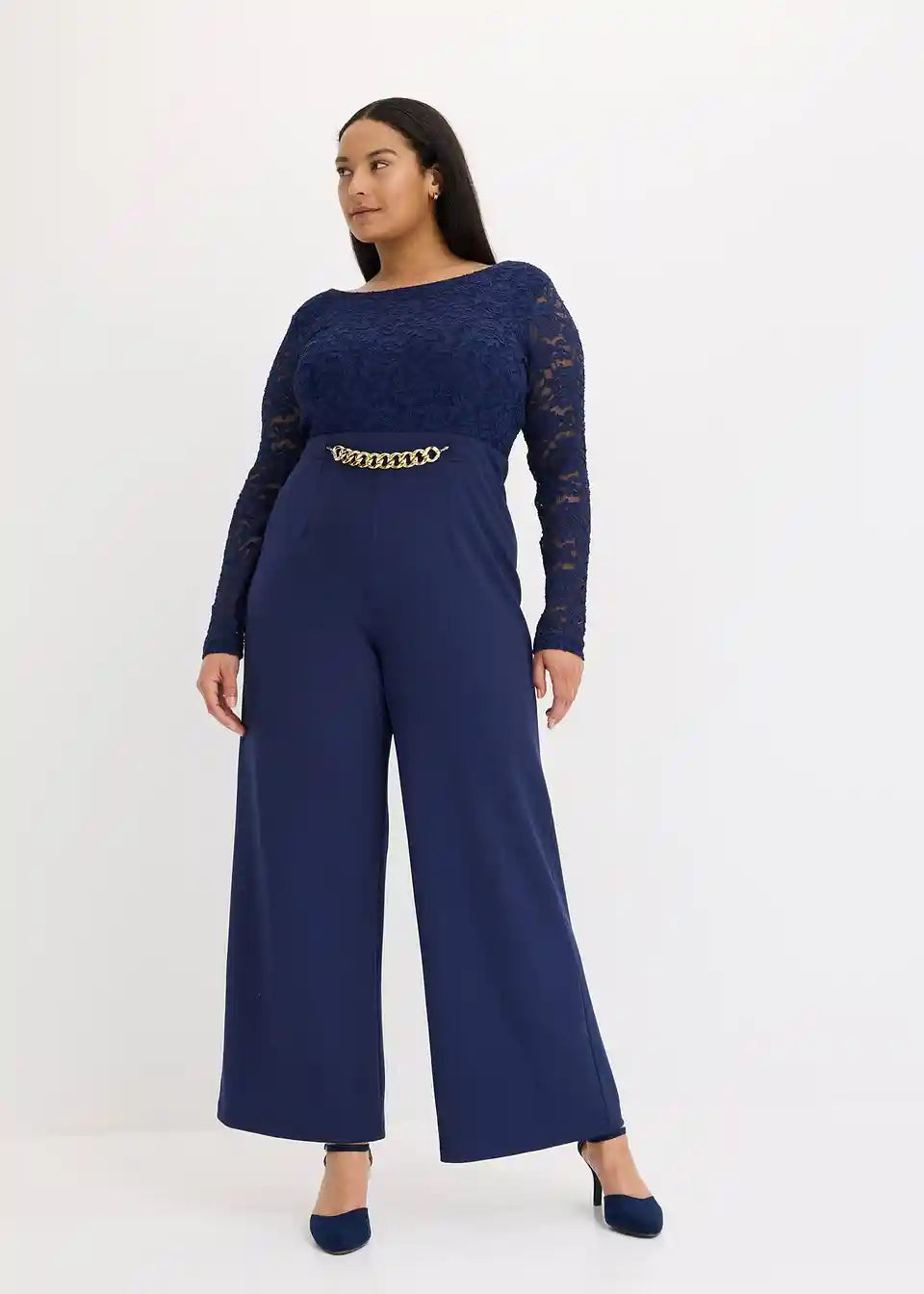 Moderan i ženstven: overall od strukturiranog krepa s čipkom na gornjem dijelu i lančić detaljem u struku